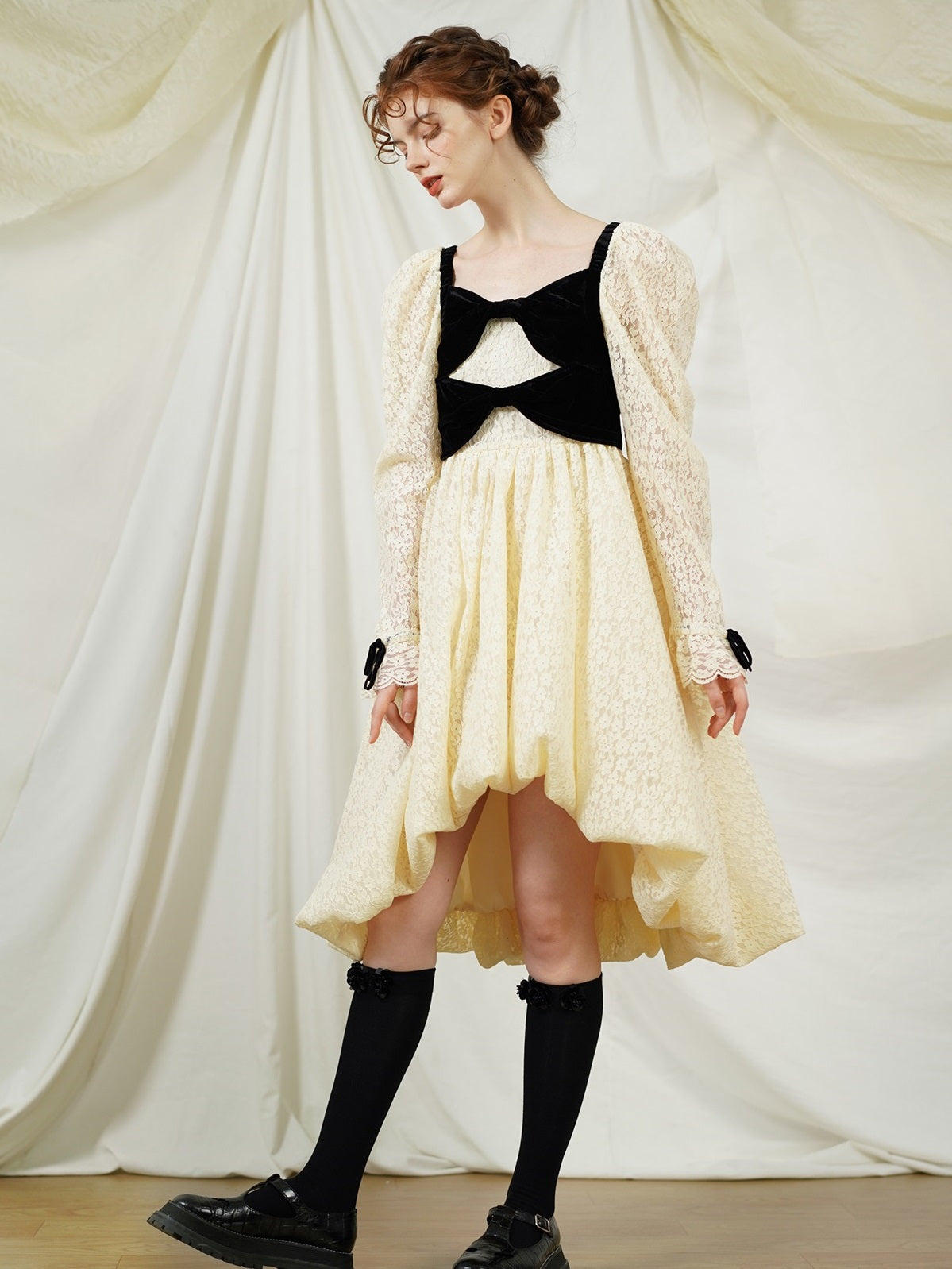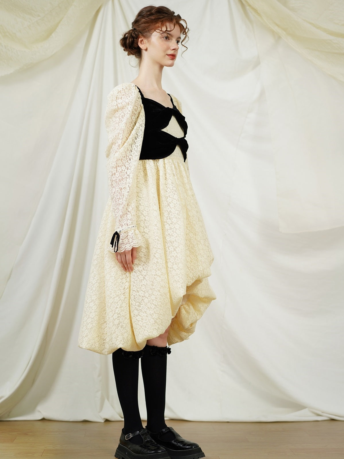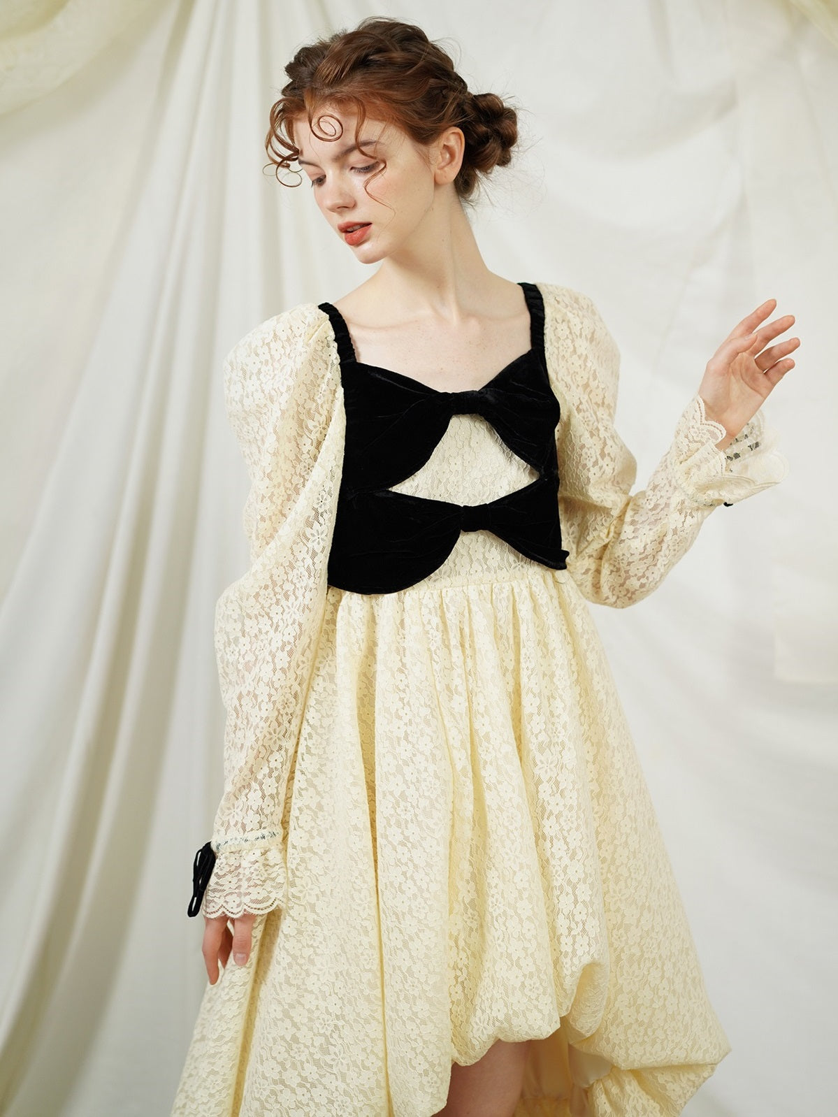 레이스 퍼프슬리브 벌룬플라워 원피스