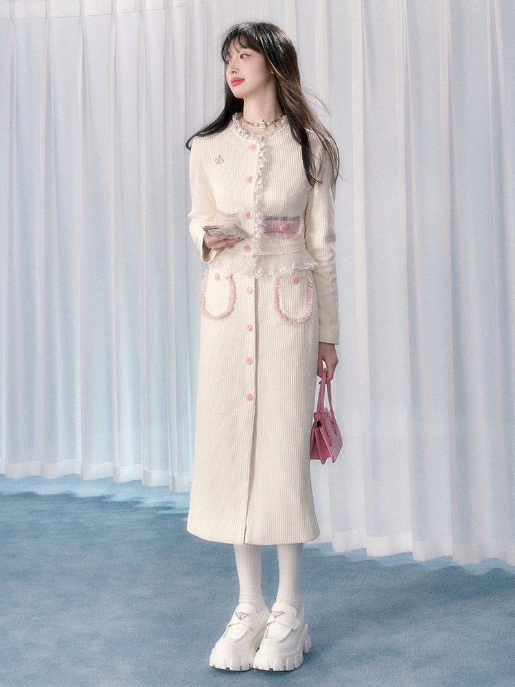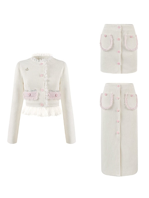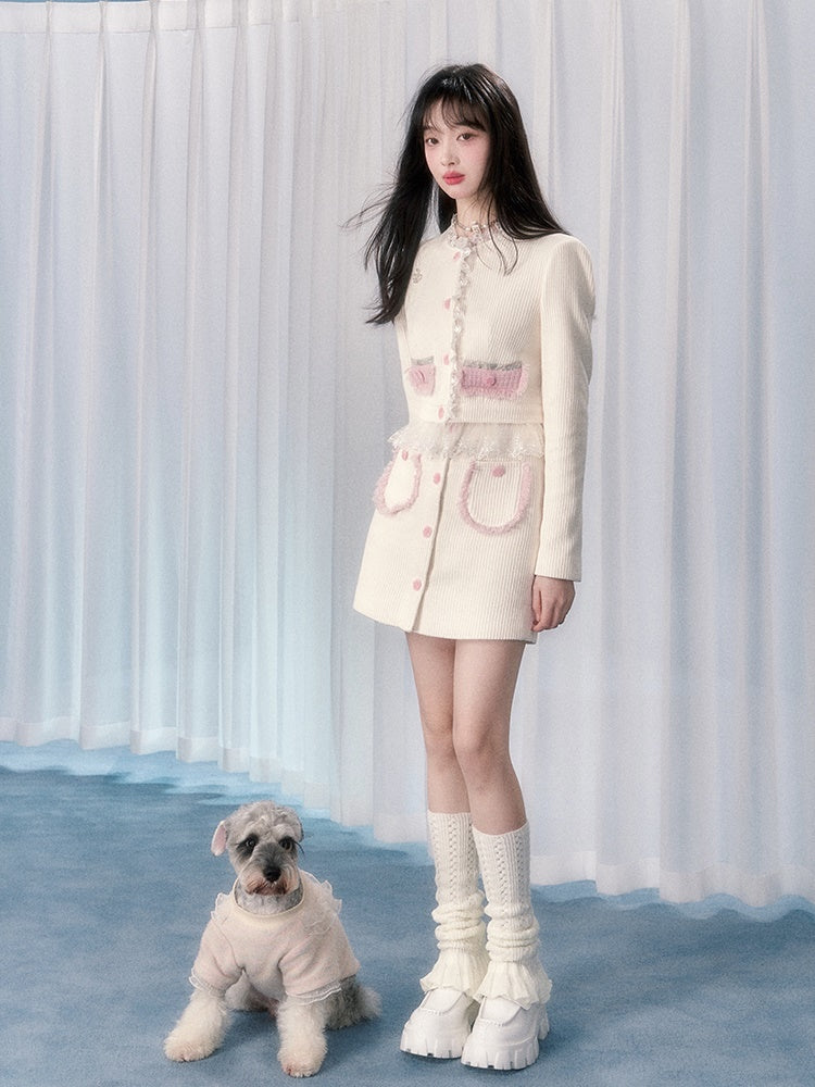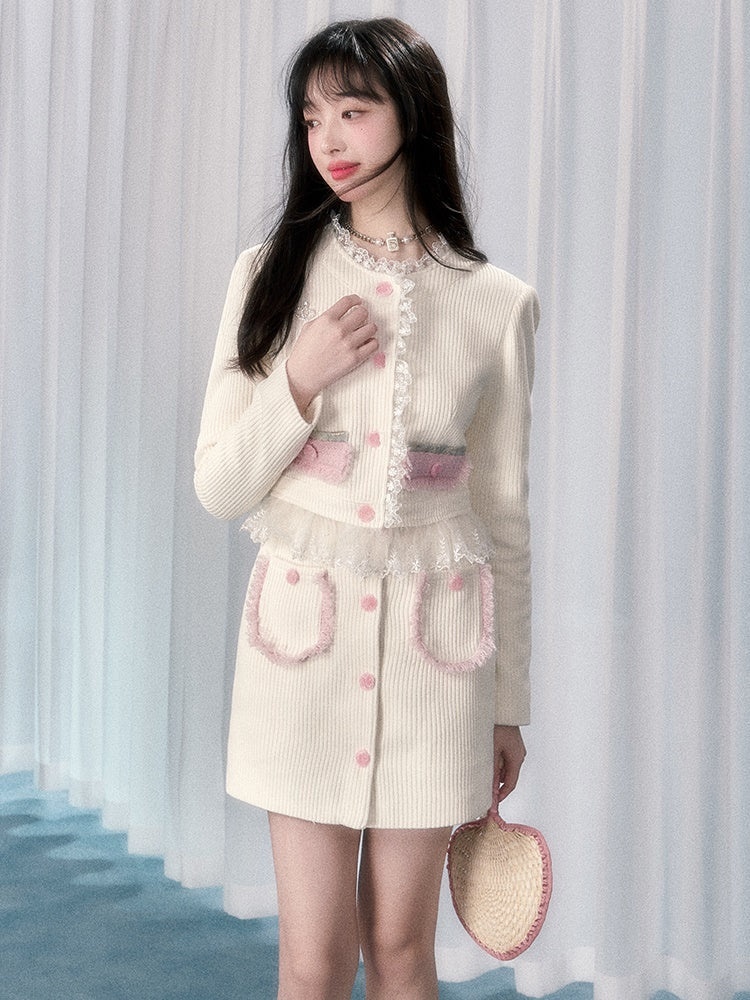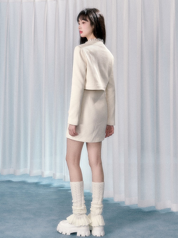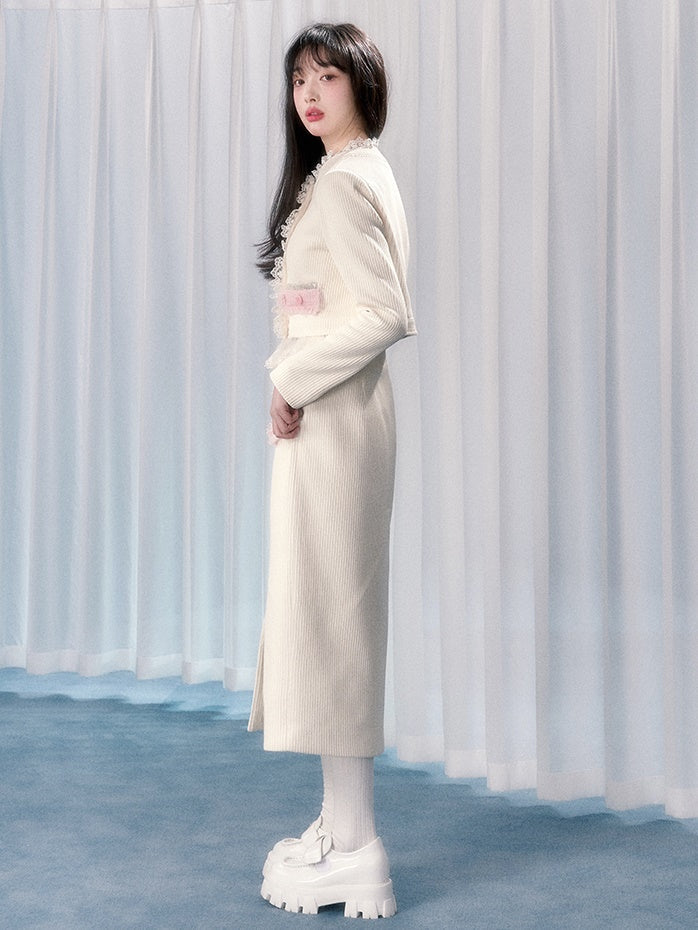레이스 스티치 숏 자켓 & 2기장 스커트