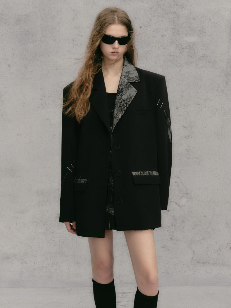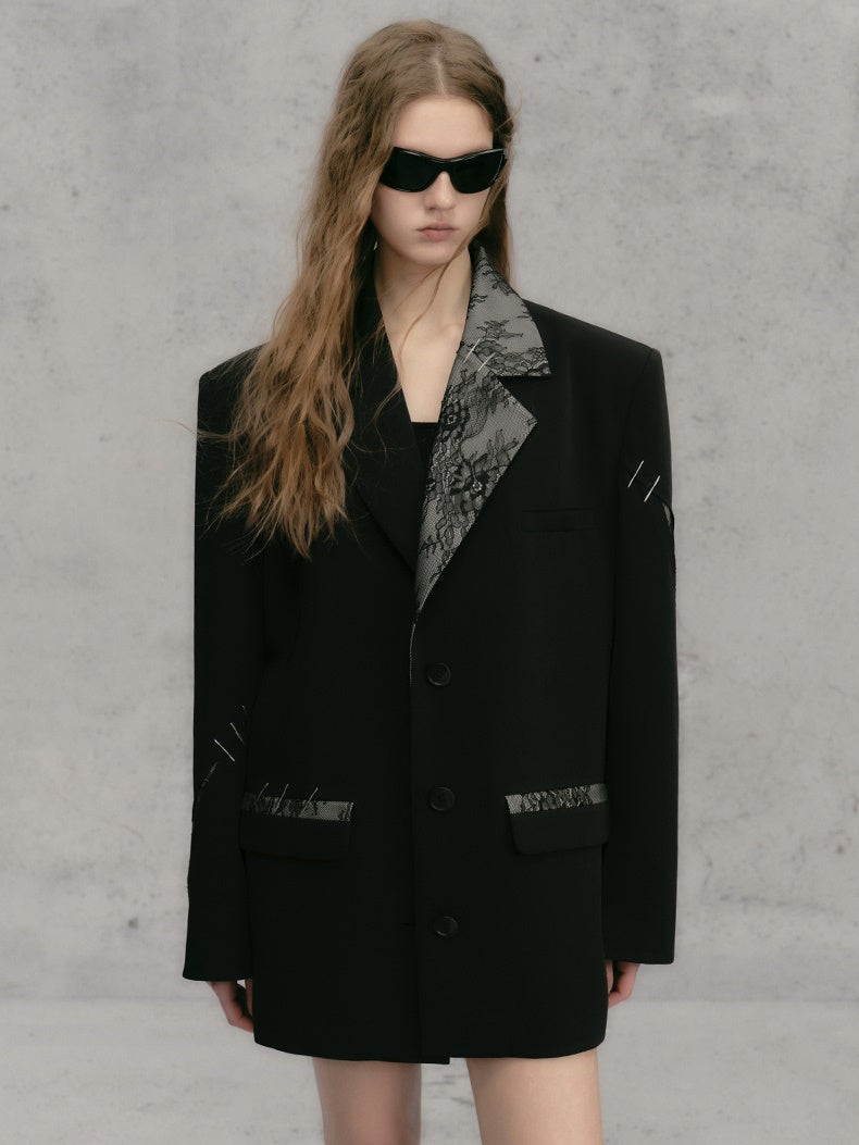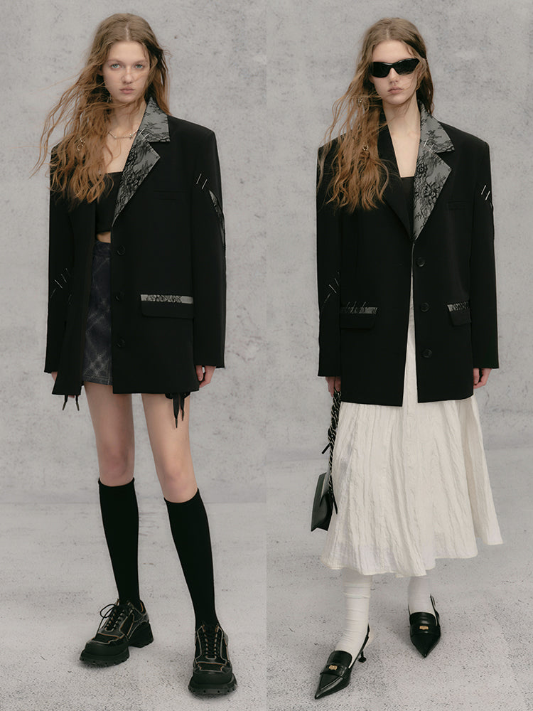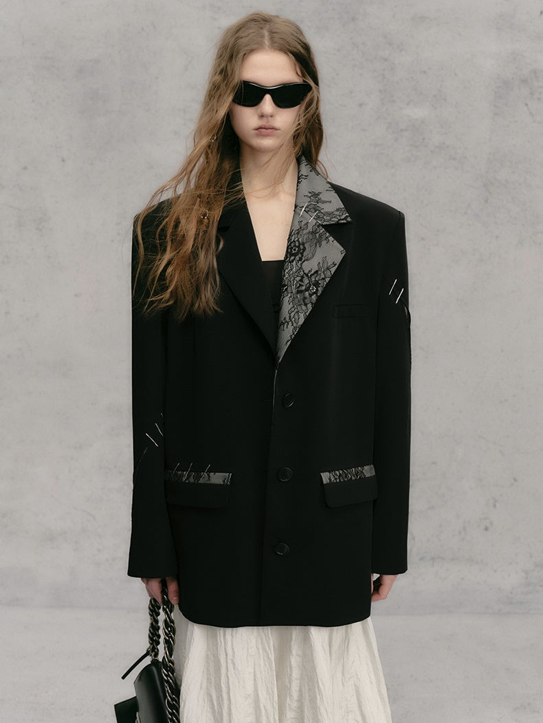 레이스 스티치 배색 루즈 재킷