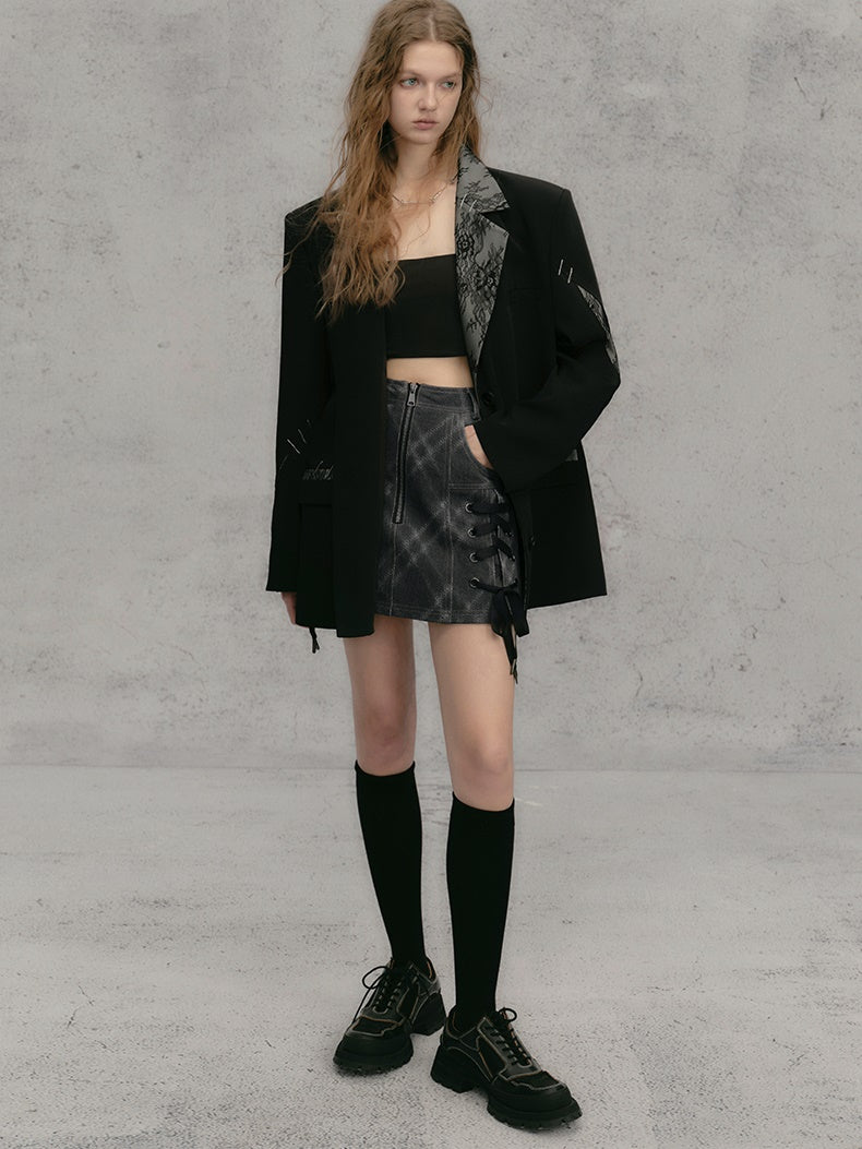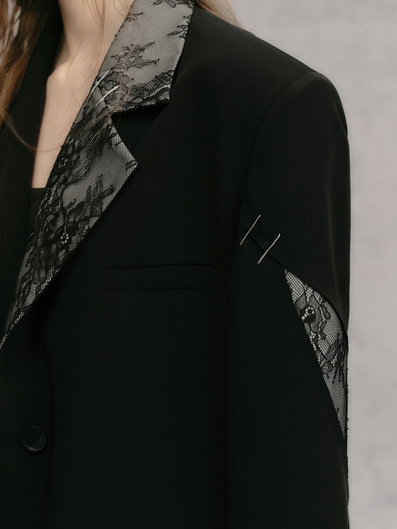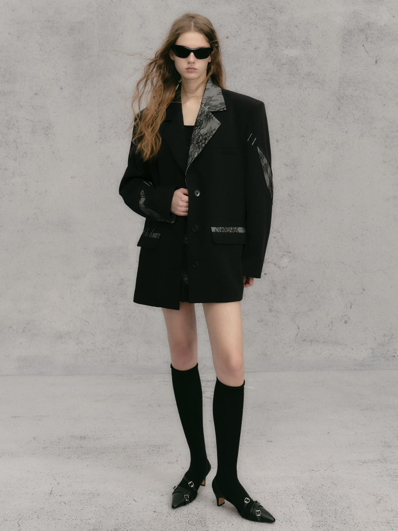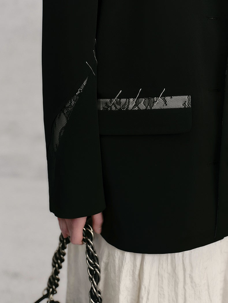 레이스 스티치 배색 루즈 재킷
