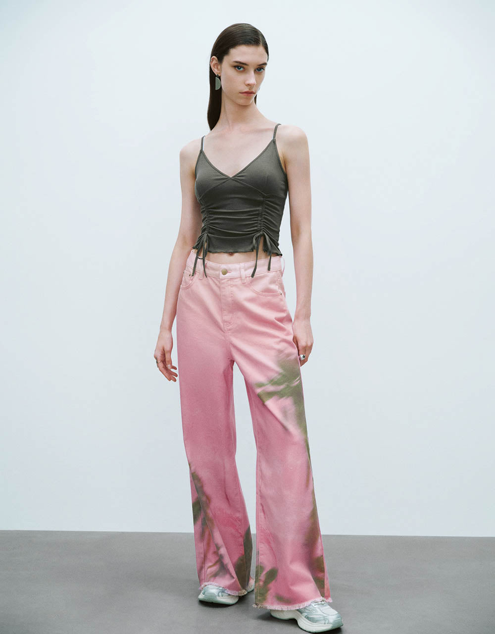 Lace Up V-Neck Cropped Cami Top