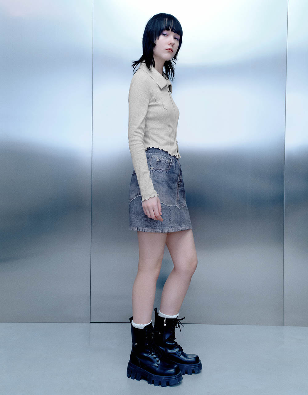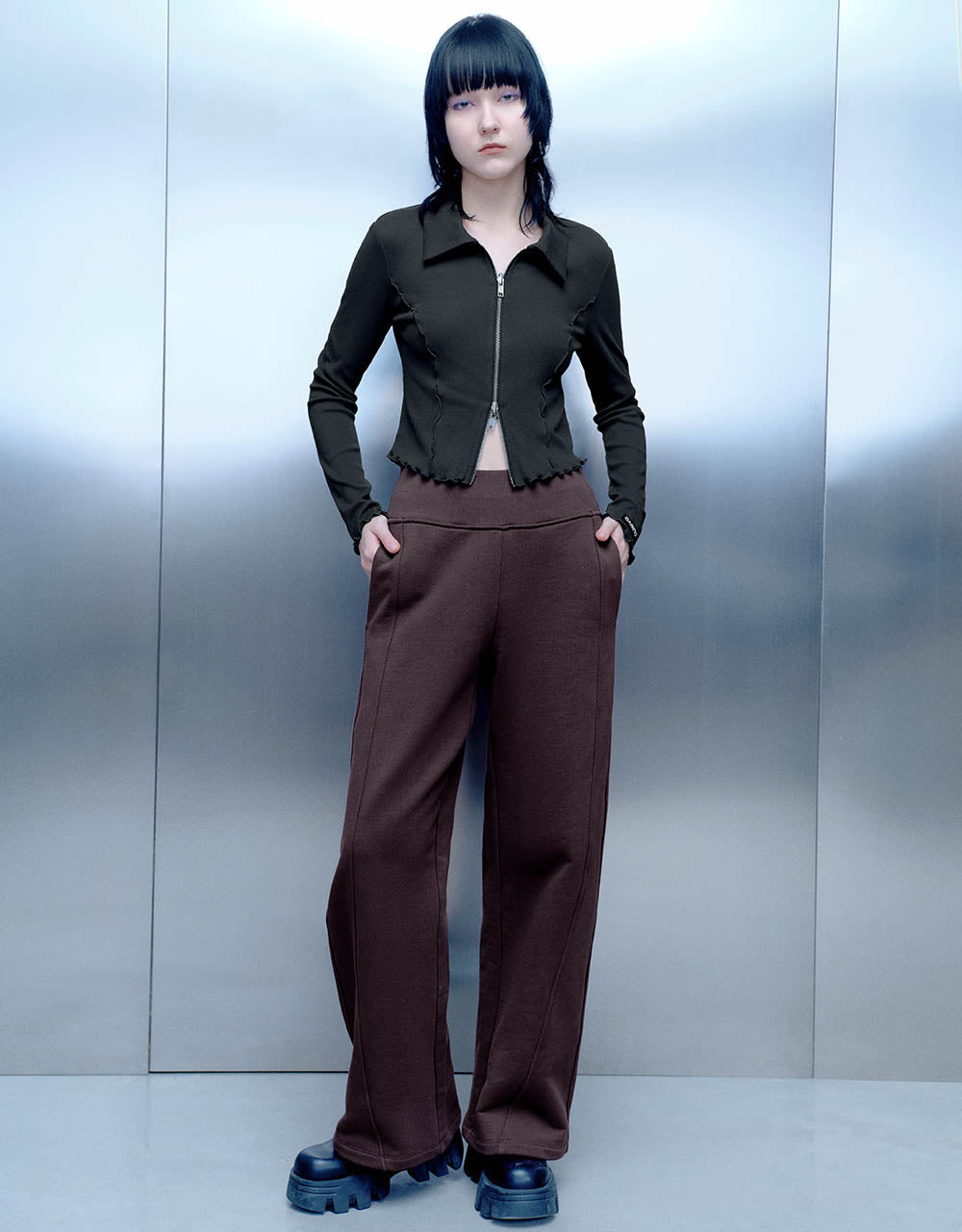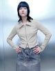 Lettuce Trim Zipper Front Skinny Shirt