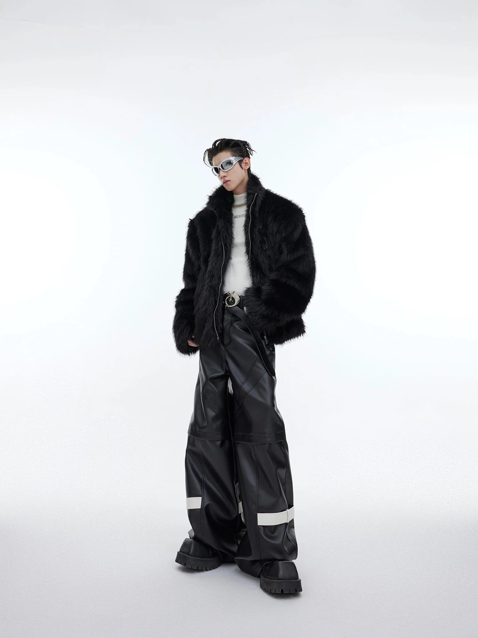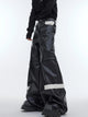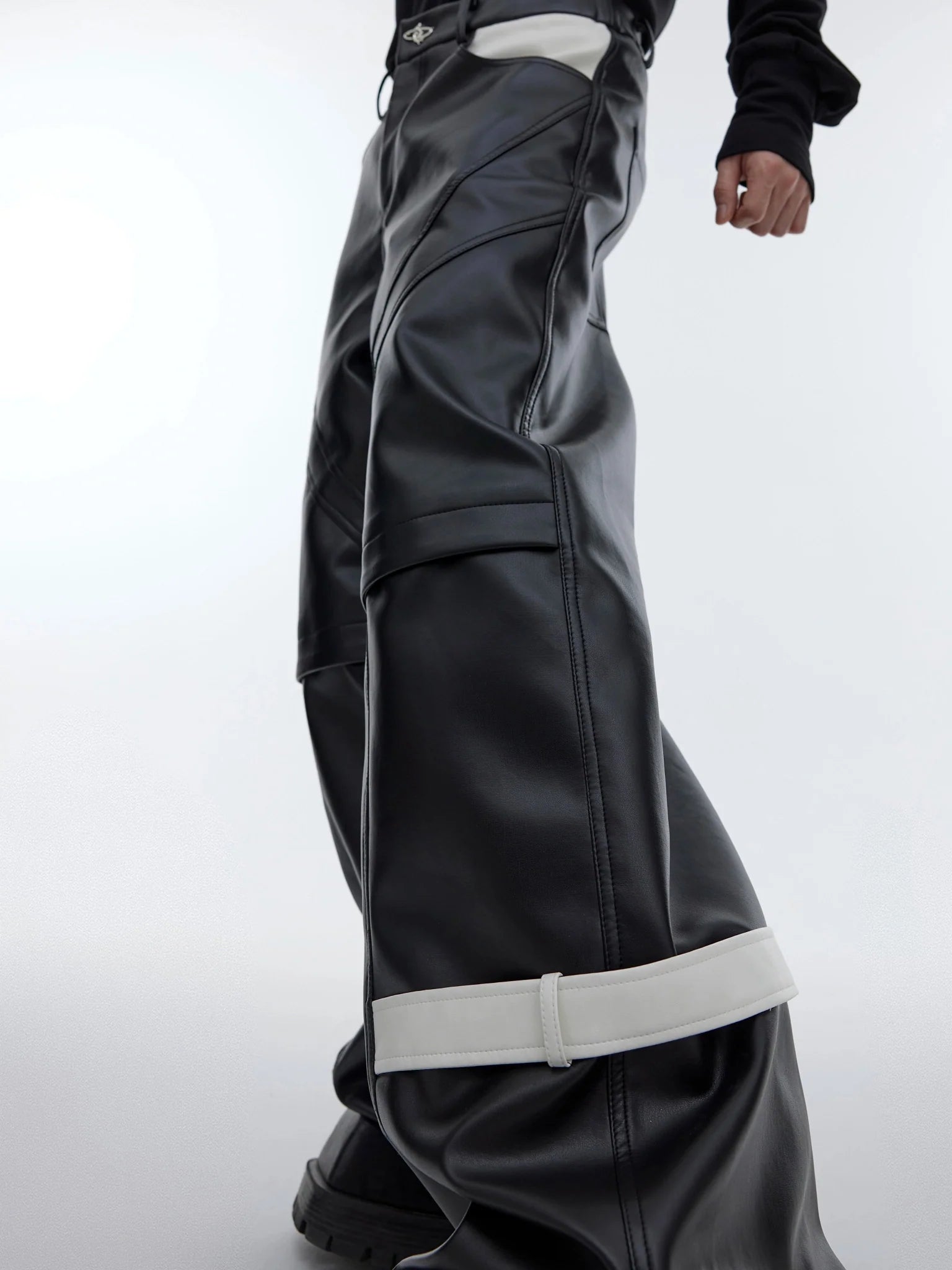 Lines Matte Faux Leather Pants | Belted Patchwork Wide-Leg Trousers