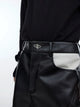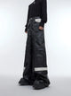 Embracing a gender-neutral avant-garde concept, these trousers feature a double-layered cut and white patchwork accents. The belt detail at the hem introduces an additional layer of trendiness and distinct personality, making these pants a standout piece in any fashion-forward wardrobe. -