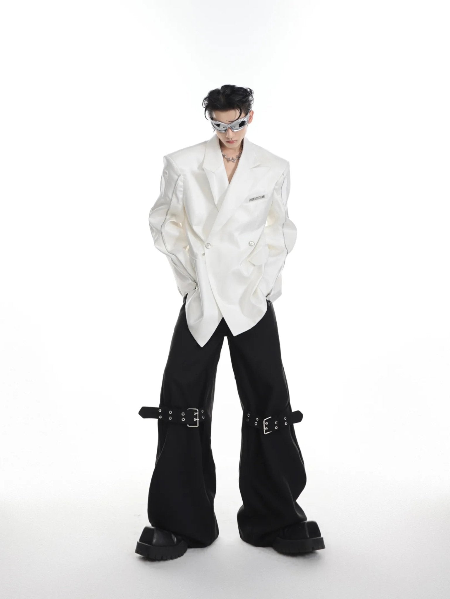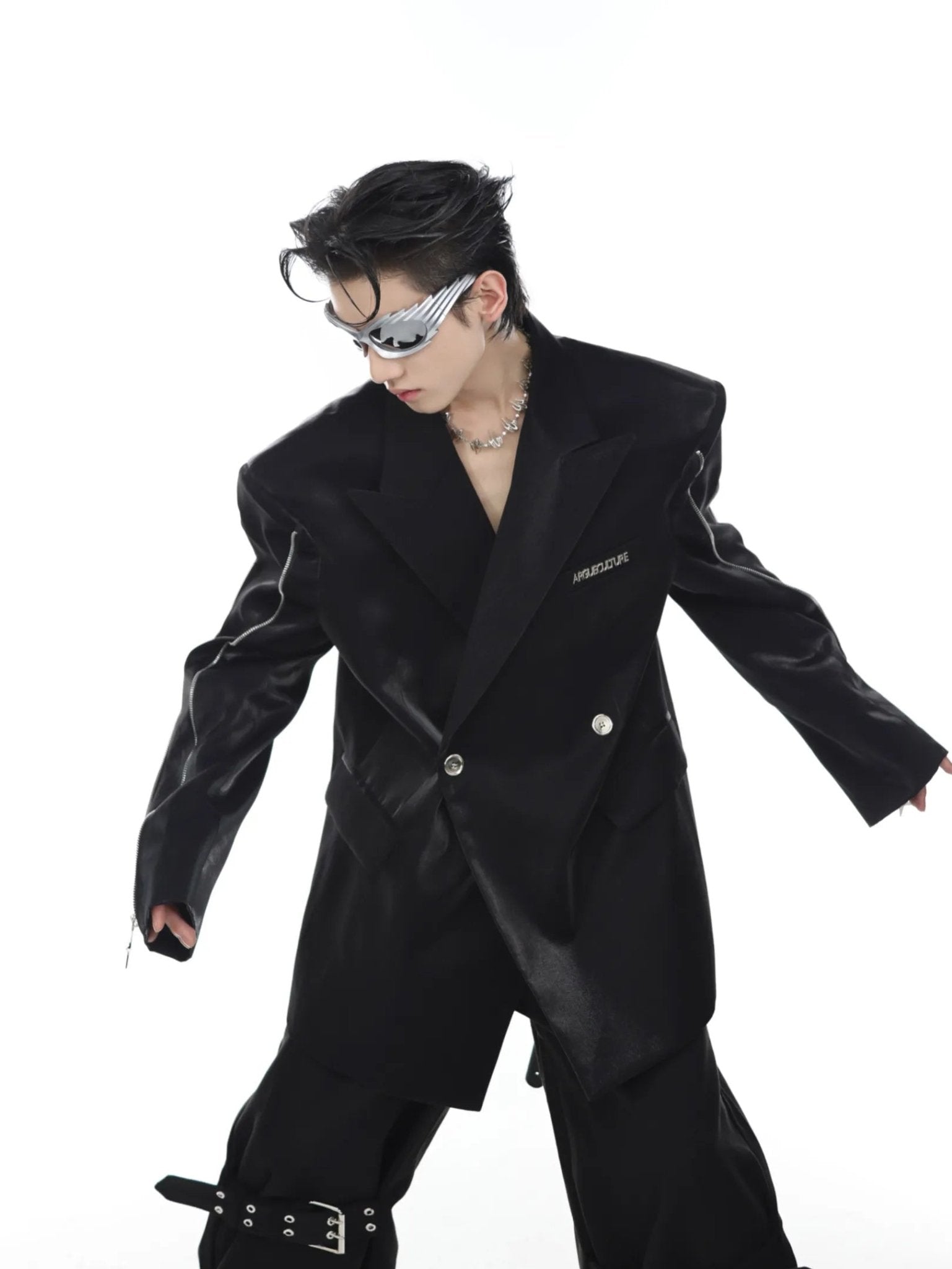 - This blazer is designed for those who dare to stand out. The shoulder pads create a striking silhouette, and the functional zipper details not only add style but also allow customization of the look. Its versatile design makes it suitable for various occasions, from casual to formal.