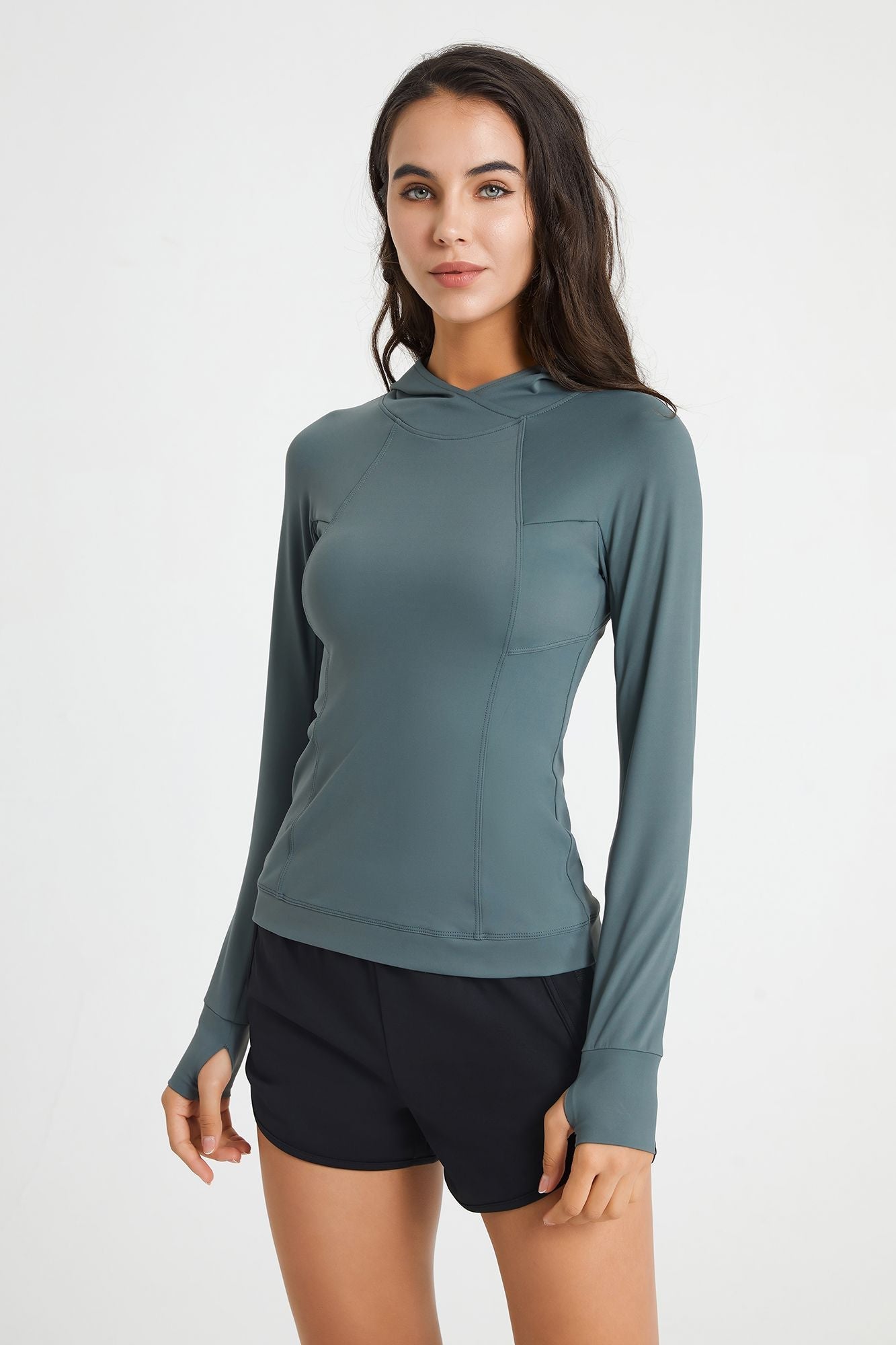 엄지 구멍이 있는 긴 소매 튜닉 스웨트셔츠