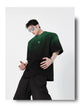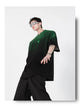 Loose Fit Black-Green Gradient Cotton T-Shirt with Geometric Print