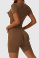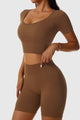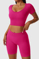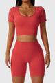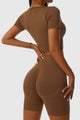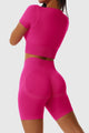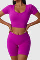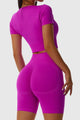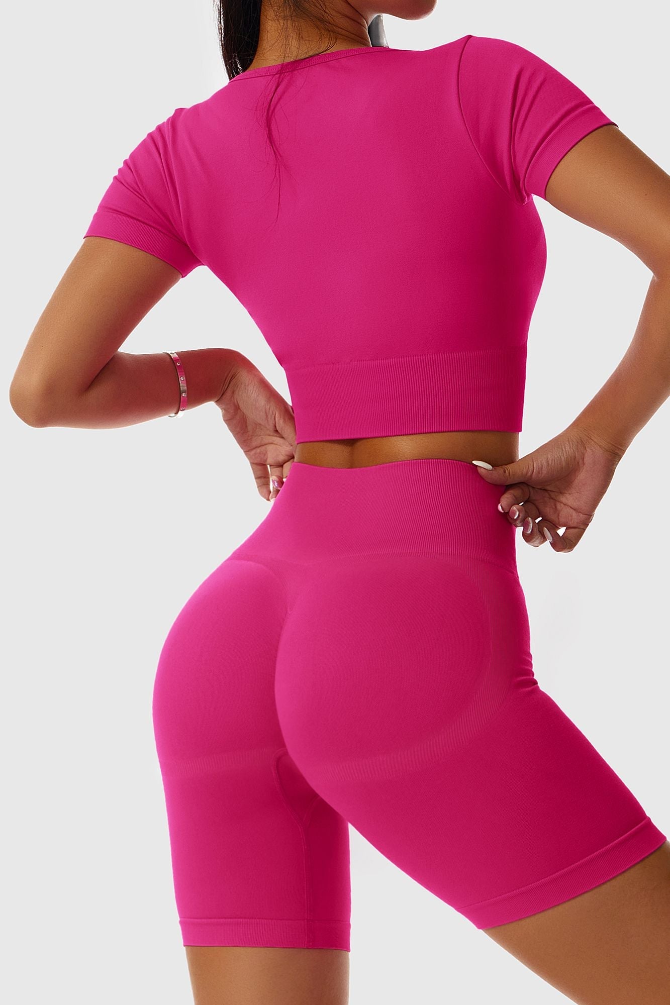 이 반소매 체육관 크롭 탑은 무봉제 니트 소재로 디자인되었으며, 낮은 스쿠프 네크라인과 지지력이 뛰어난 골지 언더밴드가 있어 움직임이 편리합니다. 스쿠프 넥 크롭 탑은 어울리는 체육관 반바지 또는 레깅스와 완벽하게 어울리므로 운동 여정을 포용하고 다음 성과에 힘을 실어줄 수 있습니다.