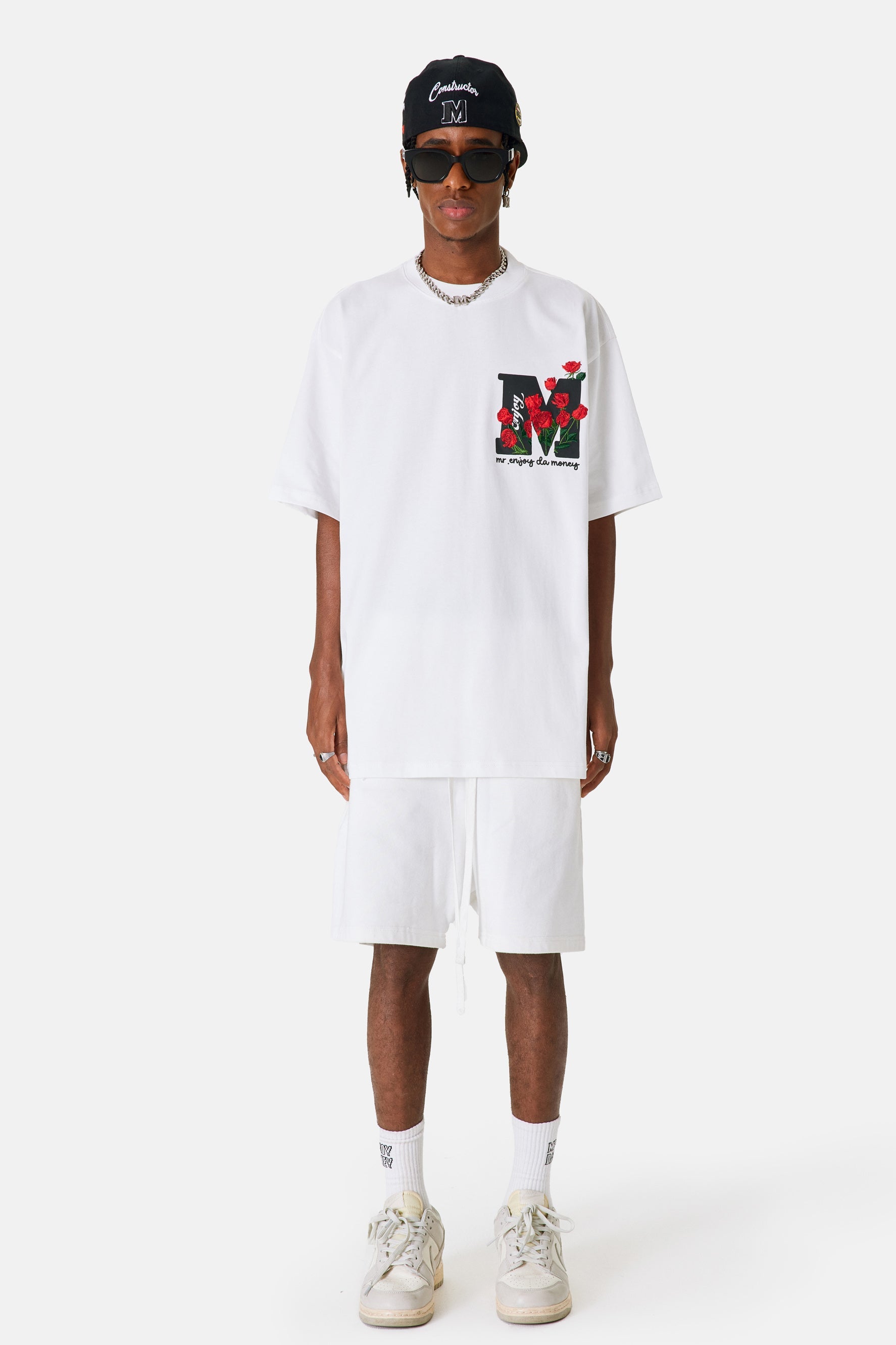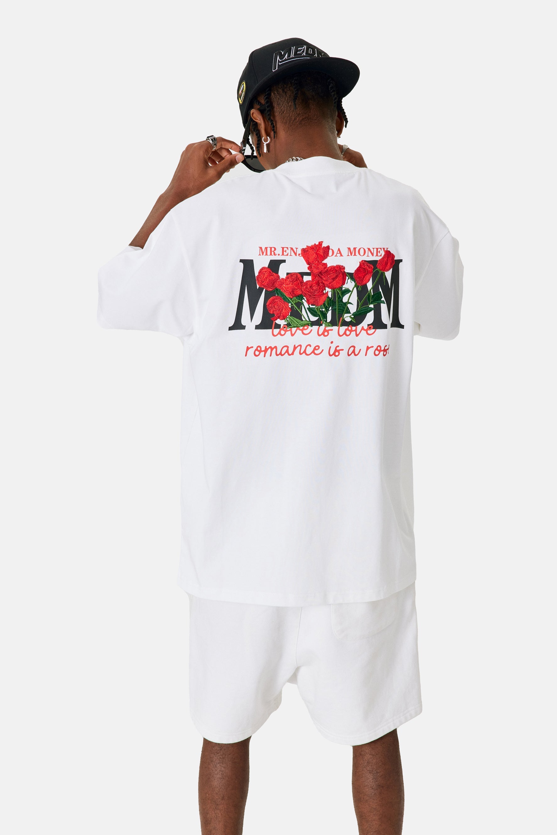 약간 루즈한 핏으로 제작된 이 의류는 뒷면에 메디엠, 앞면에 장미 자수가 특징입니다. 컴팩트한 코튼 저지 베이스에 살짝 드롭된 어깨가 돋보이는 루즈한 핏으로 제작 되었습니다 .