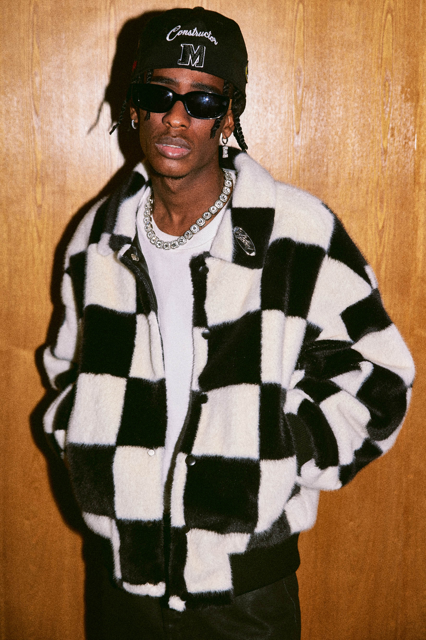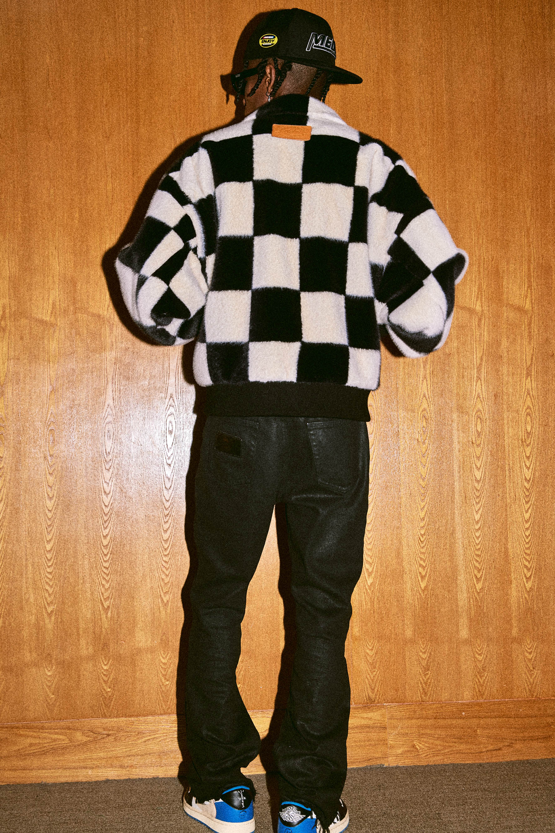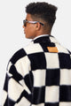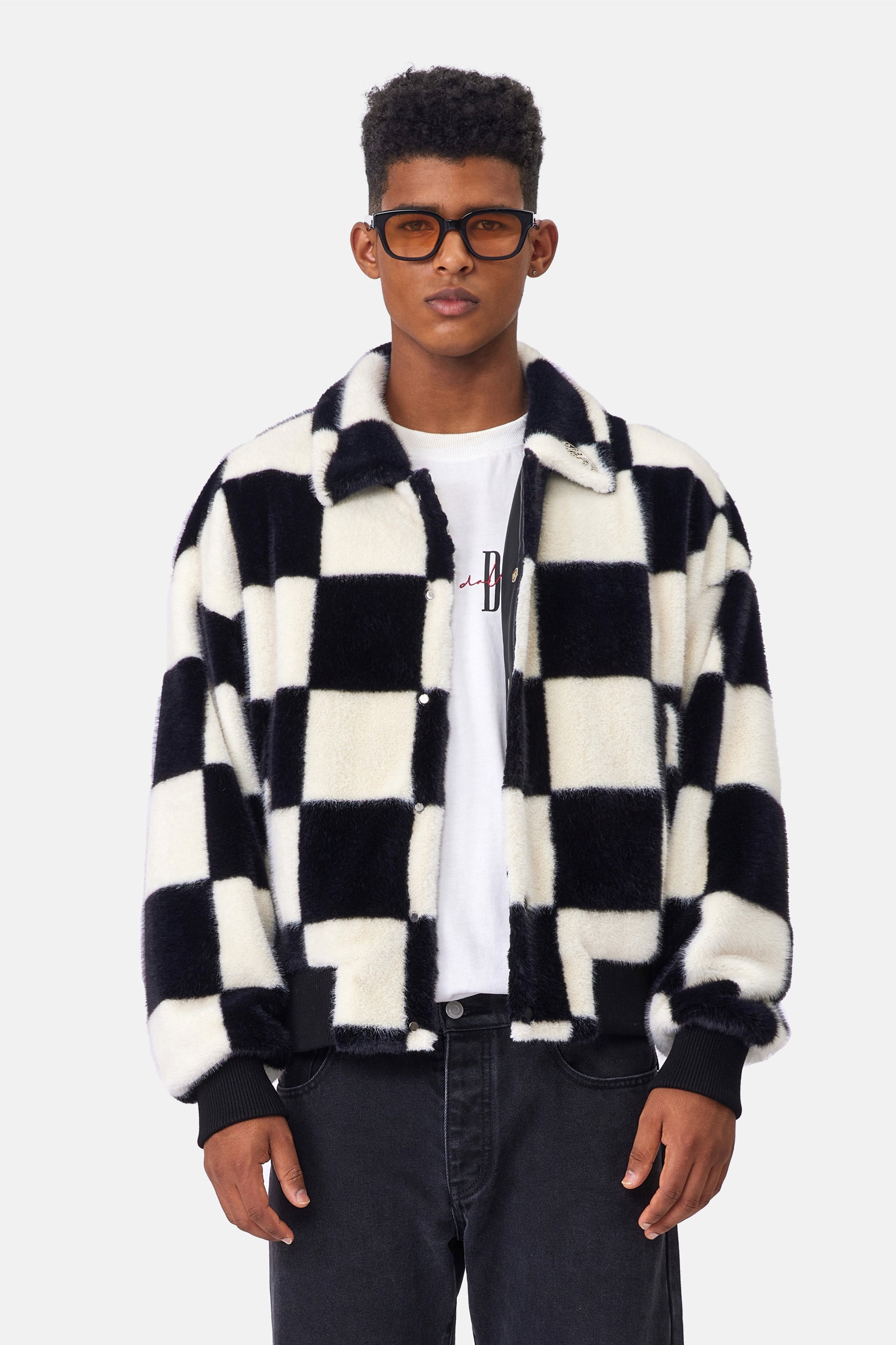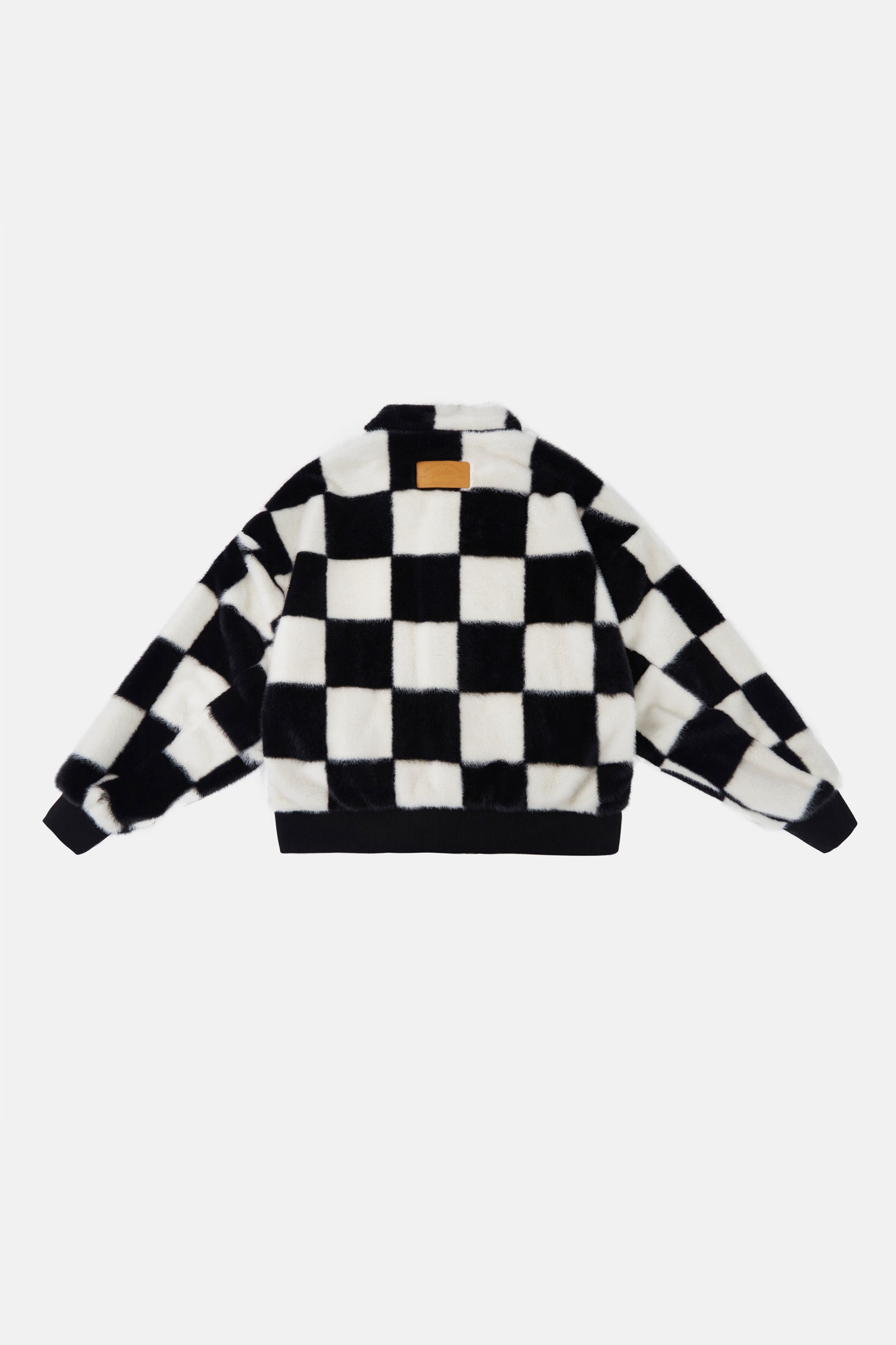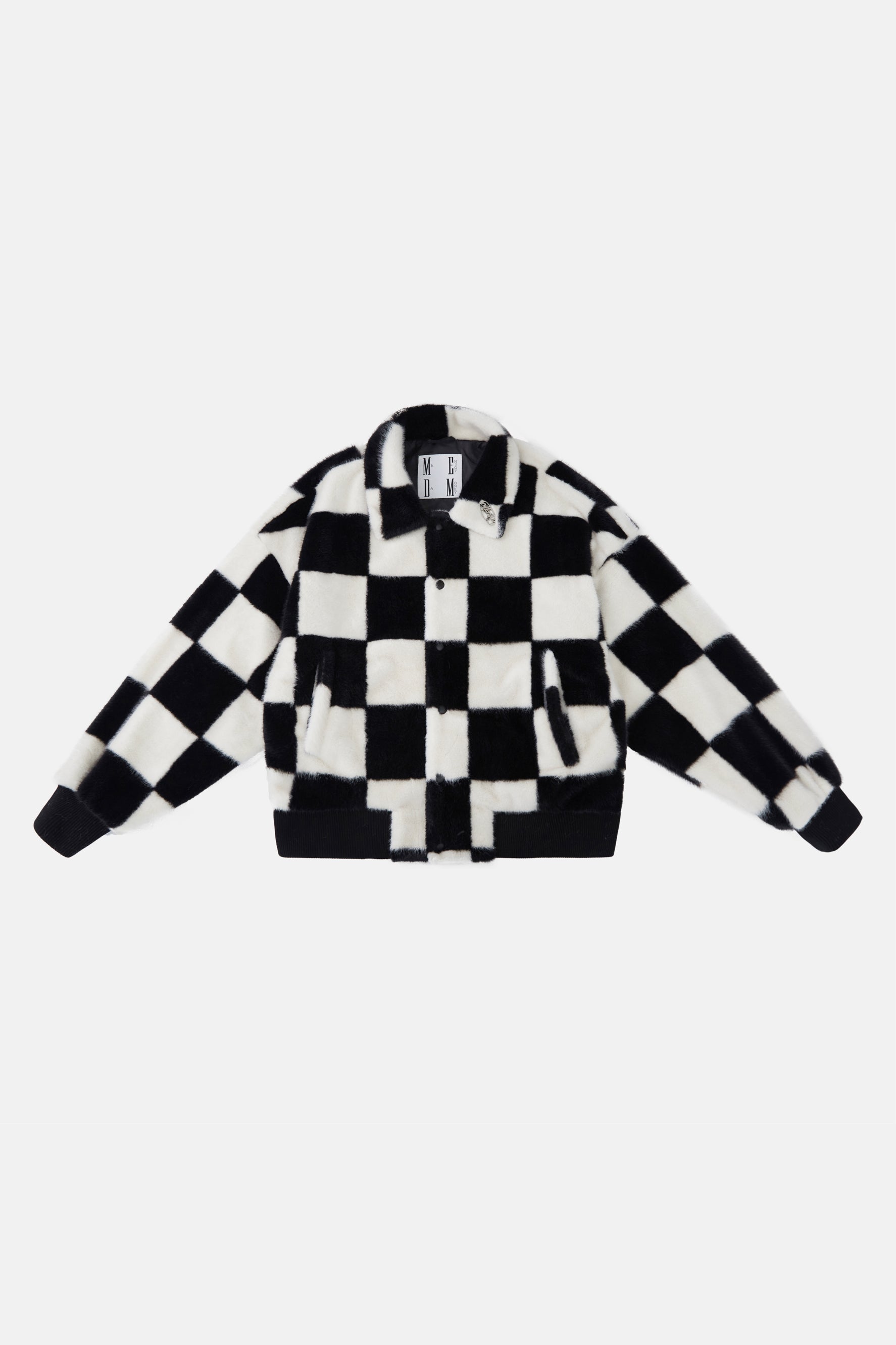 여유로운 핏과 체커보드 패턴으로 디자인된 자켓입니다. 지퍼 잠금.