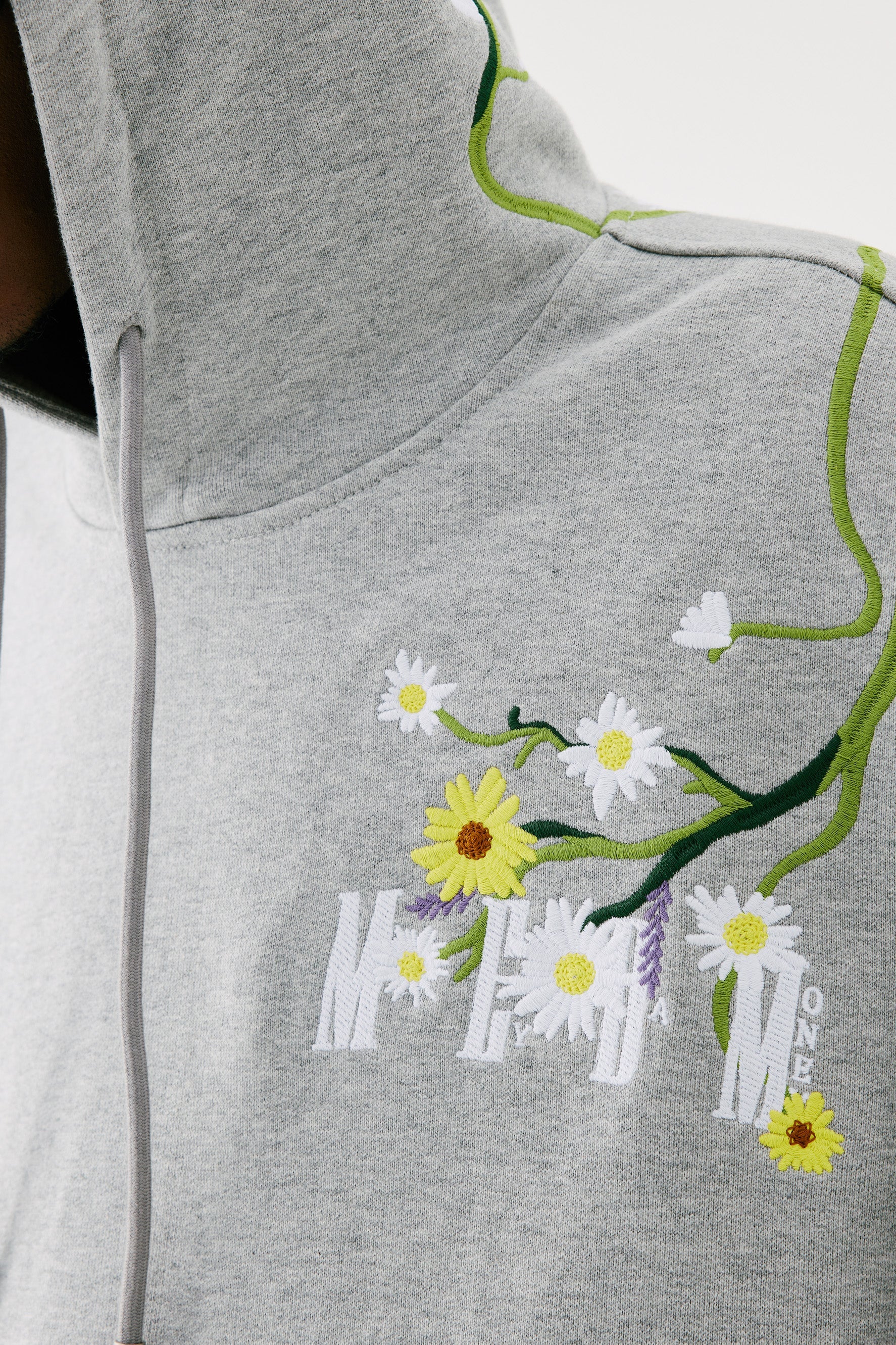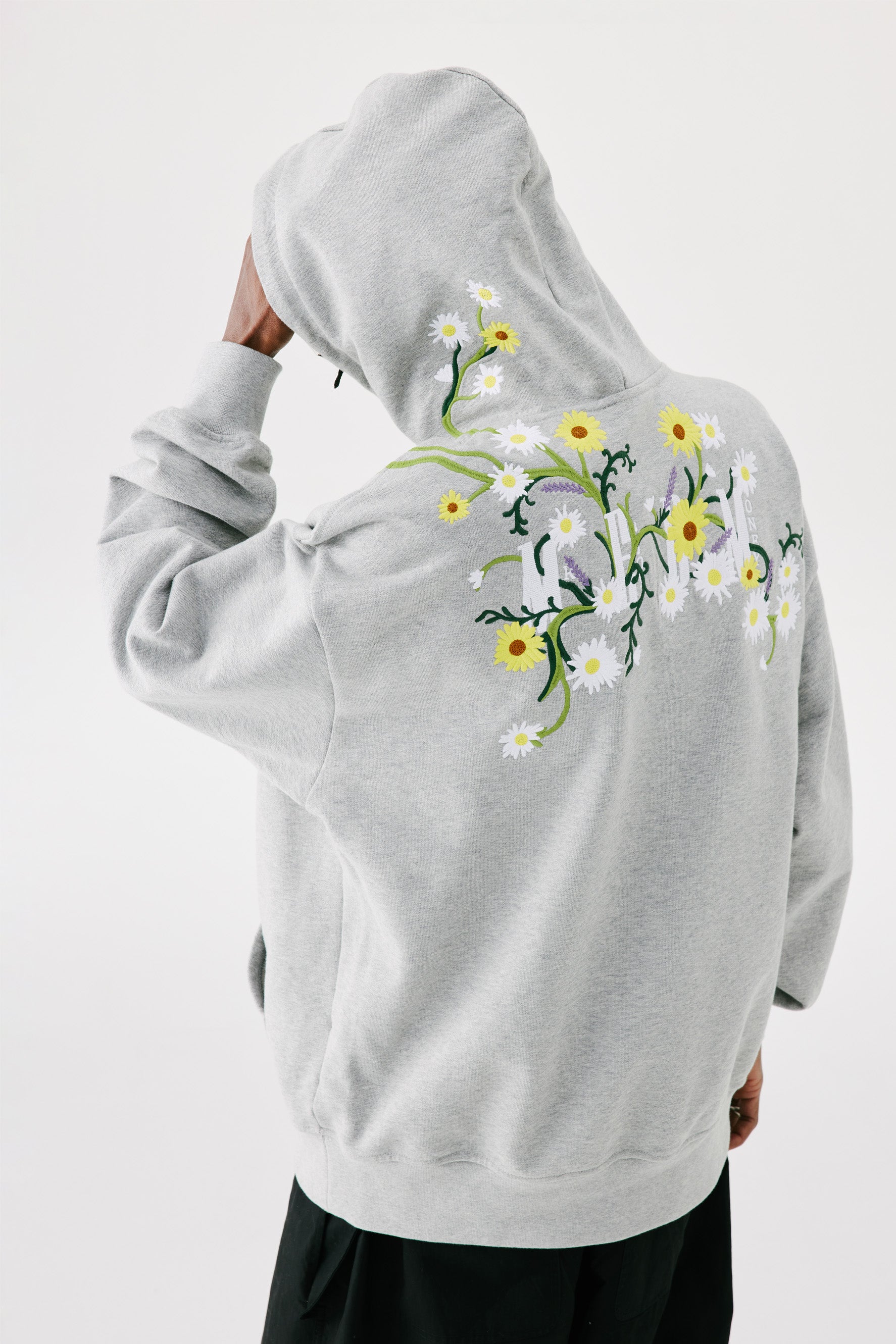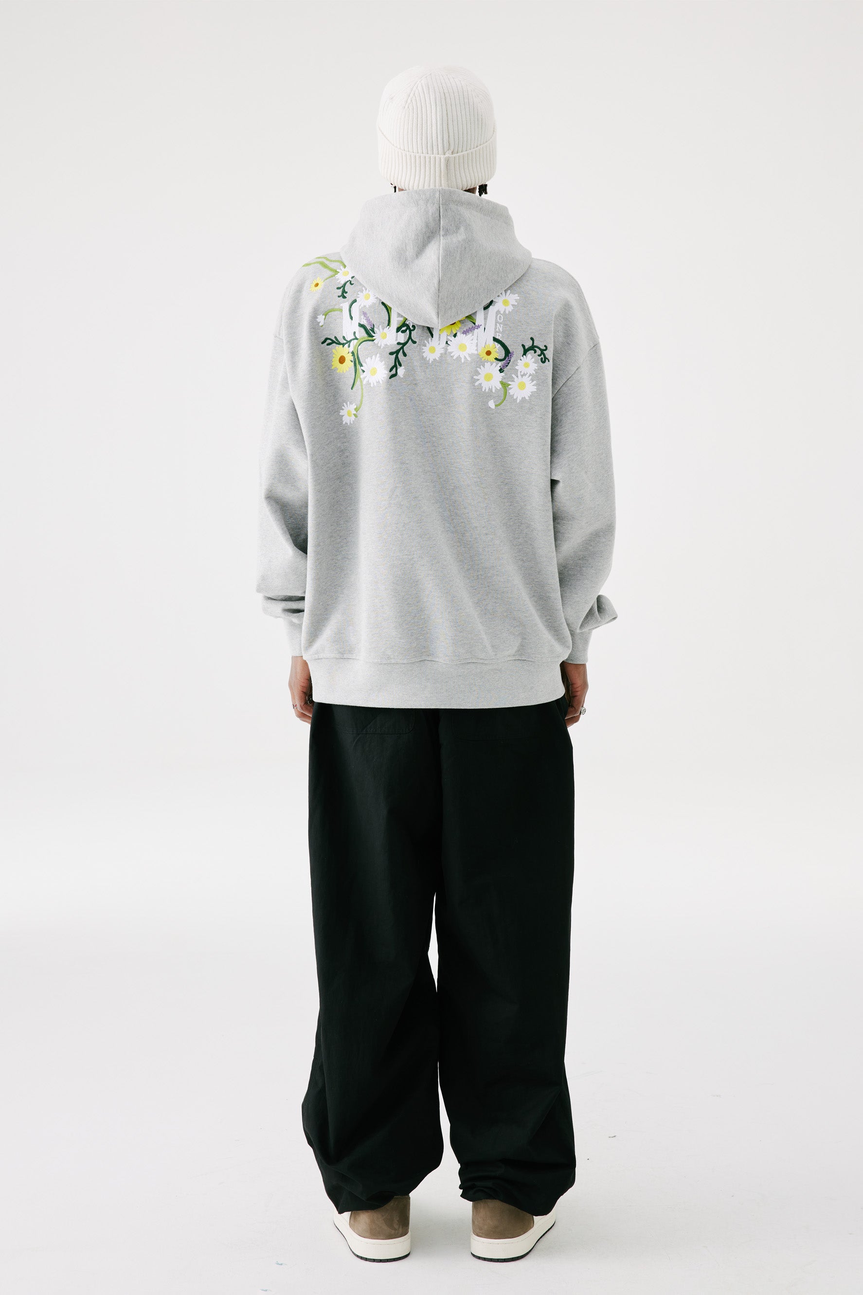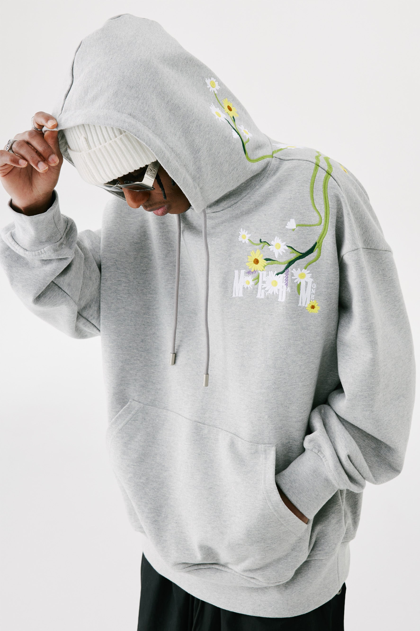 100% 유기농 면으로 제작된 이 통기성 후디는 편안한 핏으로 디자인되었으며 앞면과 뒷면에 복잡한 꽃 자수로 장식되어 있습니다. 쌀쌀한 계절에 딱!