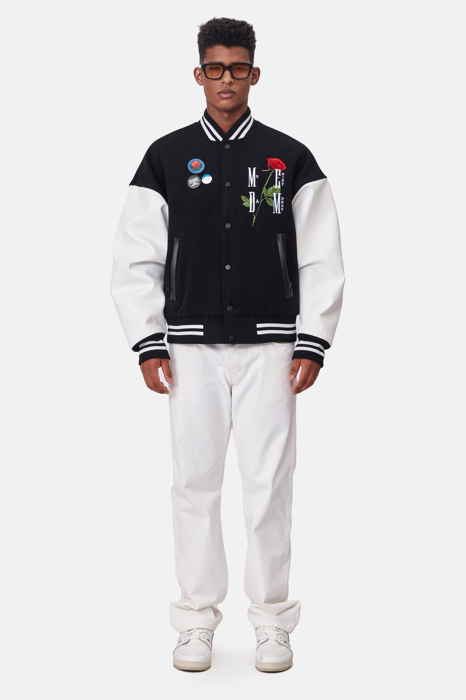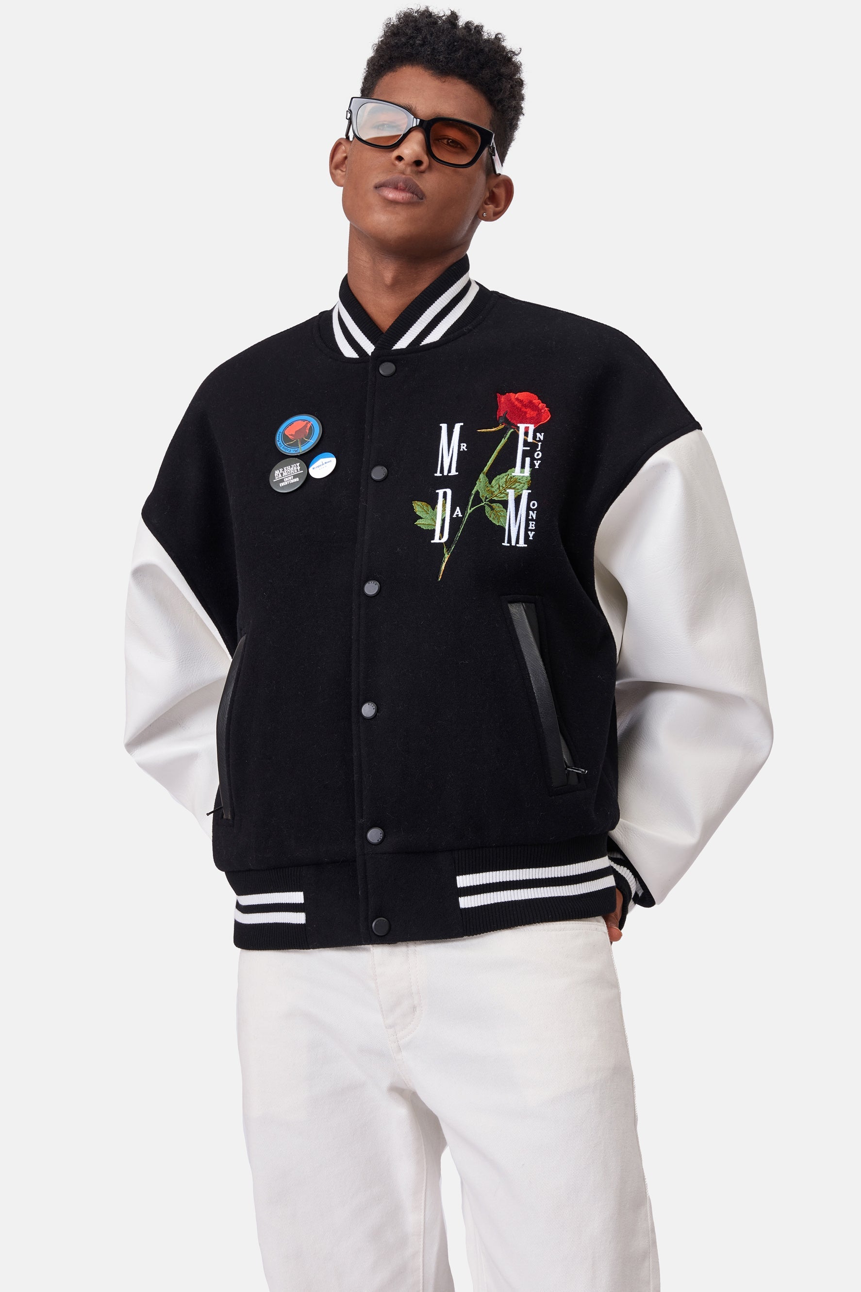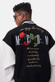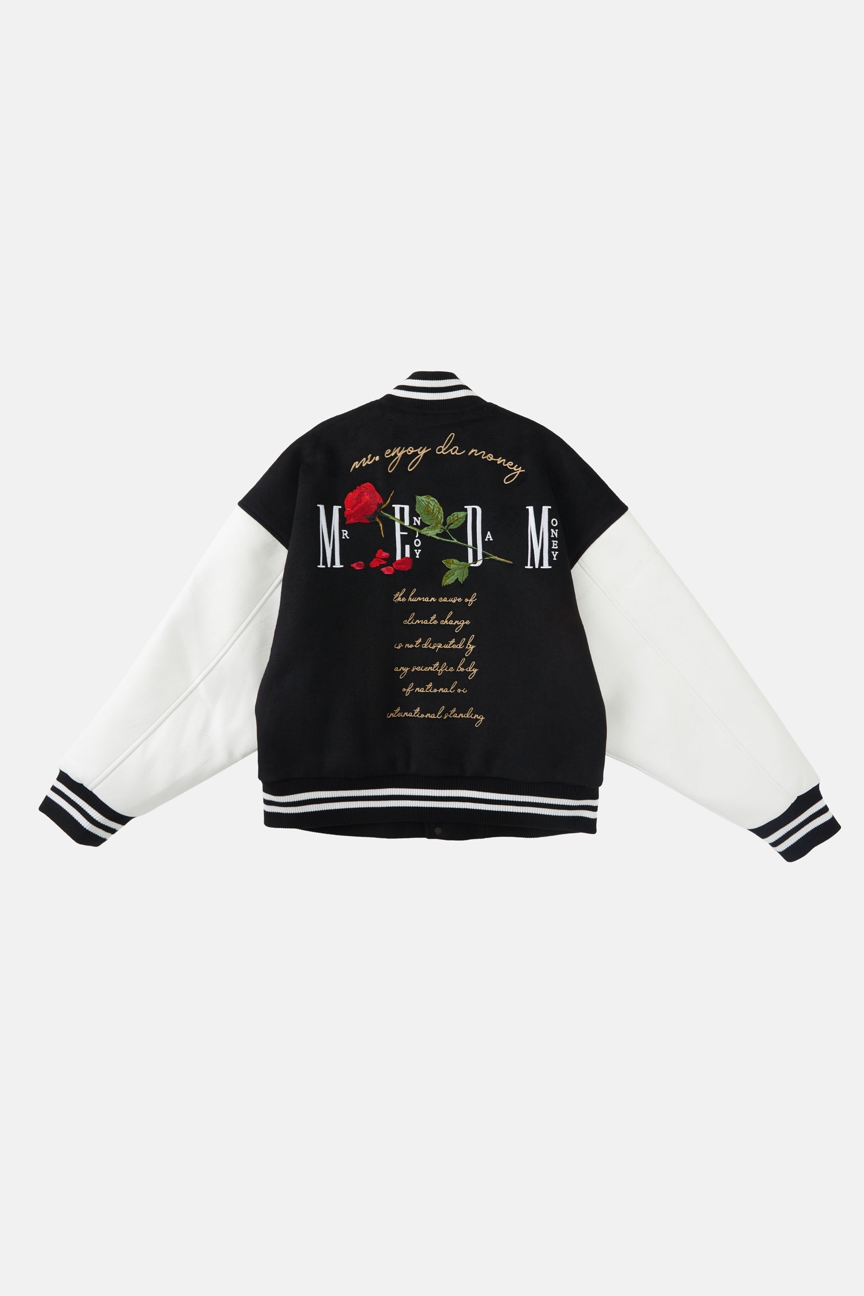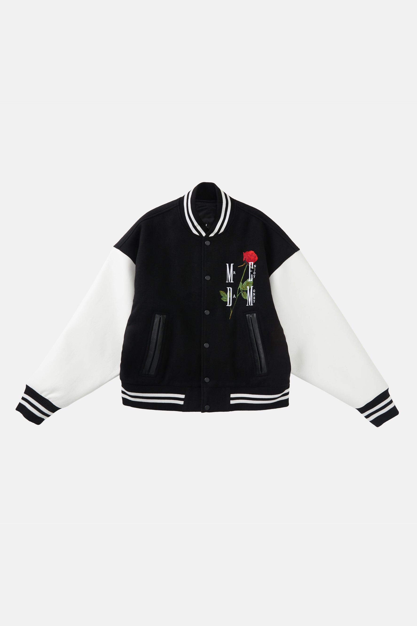 루즈한 핏으로 디자인된 자켓입니다. 앞면과 뒷면에 장미 자수가 있습니다. 버튼업 클로저.
