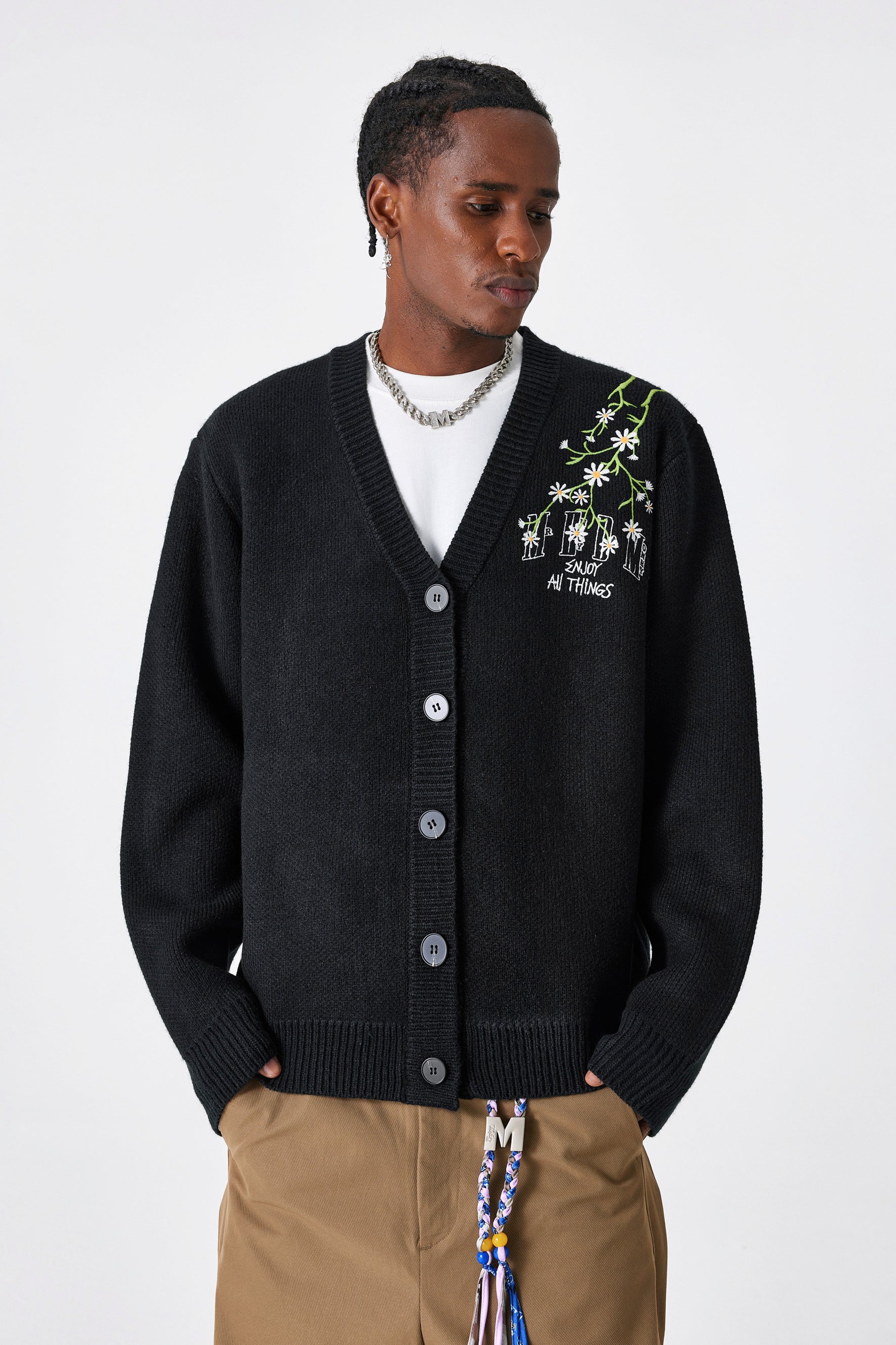 이 MEDM 자수 가디건은 개인의 스타일을 스타일리시하게 표현하는 방법입니다. 아크릴 소재로 제작되었으며 앞면 버튼업 디자인으로 앞면에 컬러풀한 자수, 뒷면에 로고 자수가 특징입니다. 캐주얼한 룩에 유니크한 느낌을 더하기 딱 좋습니다.