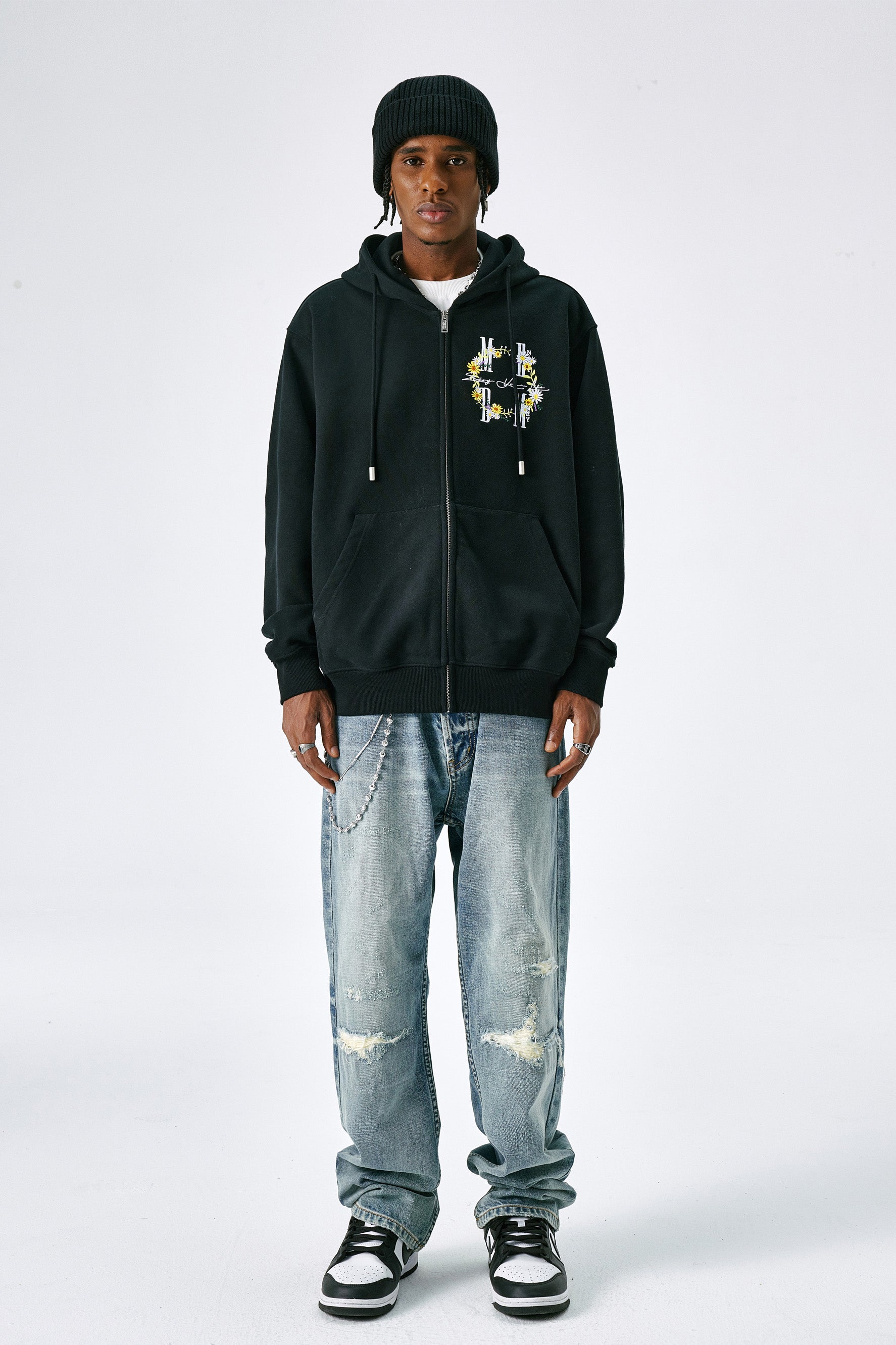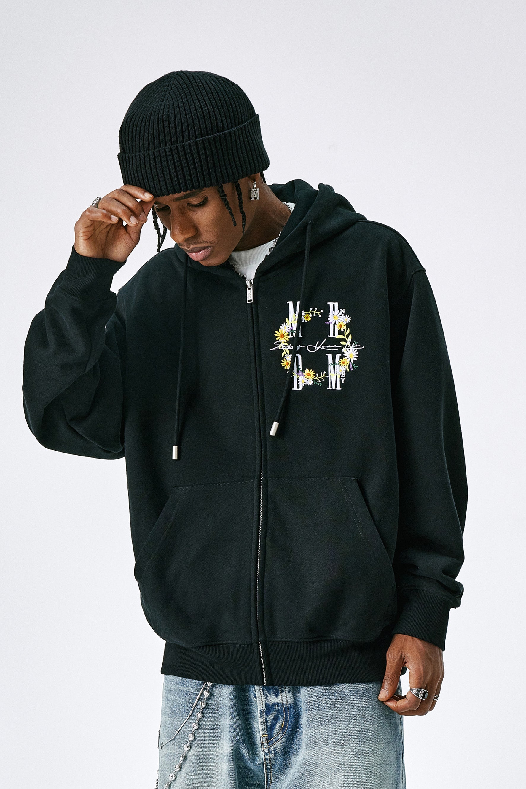 MEDM 갈랜드 시리즈 후디는 앞면에 독특한 화환 꽃 자수 디자인으로 모던한 룩을 선보입니다. 오가닉 코튼과 폴리에스터 혼방 소재로 드롭 숄더 디자인과 손목과 허리 부분의 골지 디테일이 편안하고 여유로운 핏을 선사합니다. 평상복으로 착용하기 좋은 MEDM Garland 시리즈 후디의 캐주얼하면서도 스타일리시한 룩이 마음에 드실 겁니다.