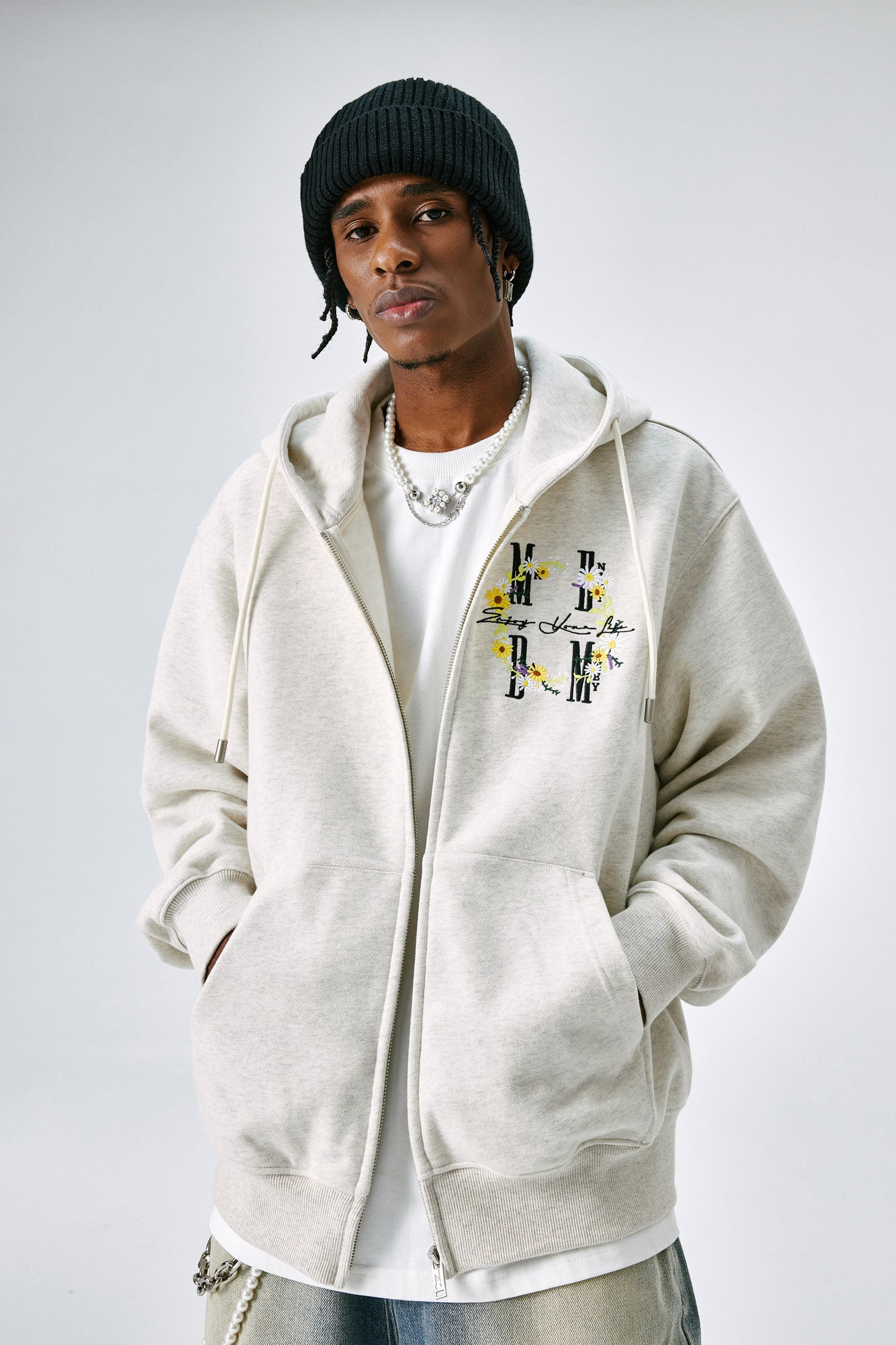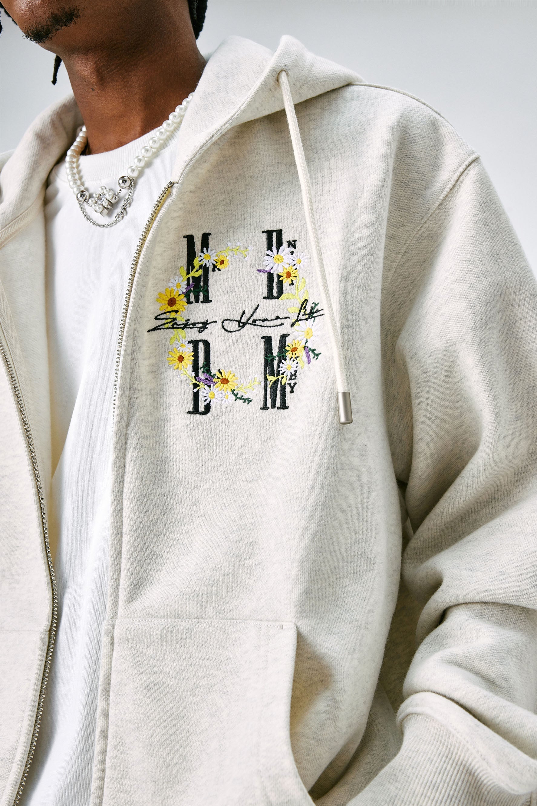 MEDM 갈랜드 시리즈 후디는 앞면에 독특한 화환 꽃 자수 디자인으로 모던한 룩을 선보입니다. 오가닉 코튼과 폴리에스터 혼방 소재로 드롭 숄더 디자인과 손목과 허리 부분의 골지 디테일이 편안하고 여유로운 핏을 선사합니다. 평상복으로 착용하기 좋은 MEDM Garland 시리즈 후디의 캐주얼하면서도 스타일리시한 룩이 마음에 드실 겁니다.