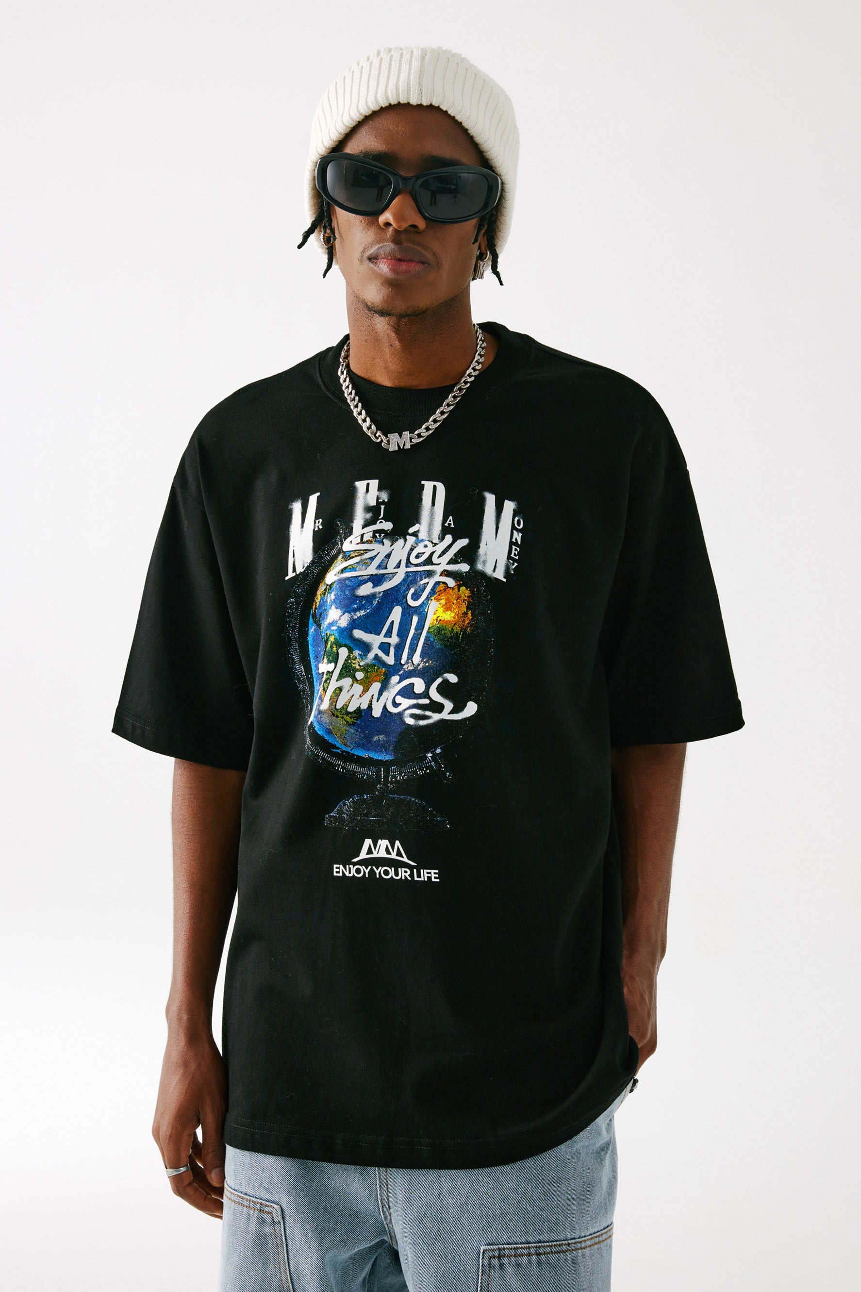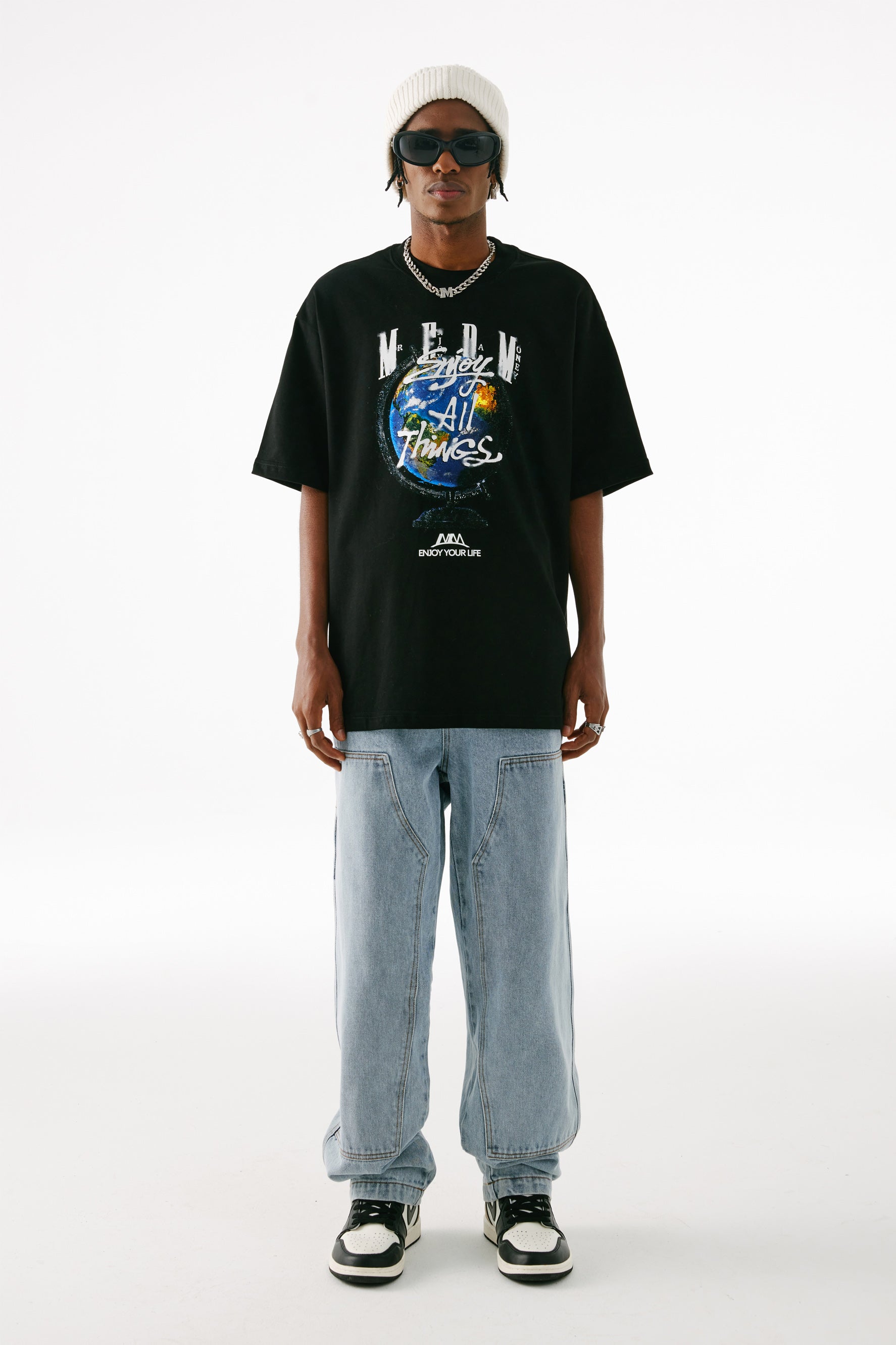 이 MEDM GLOBE 티셔츠는 100% 유기농 면으로 제작되었으며 앞면에 독특한 지구본 그래픽 프린트가 특징입니다. 여유로운 핏으로 하루 종일 편안함과 통기성을 보장합니다. 캐주얼 웨어에 완벽한 친환경 선택입니다.