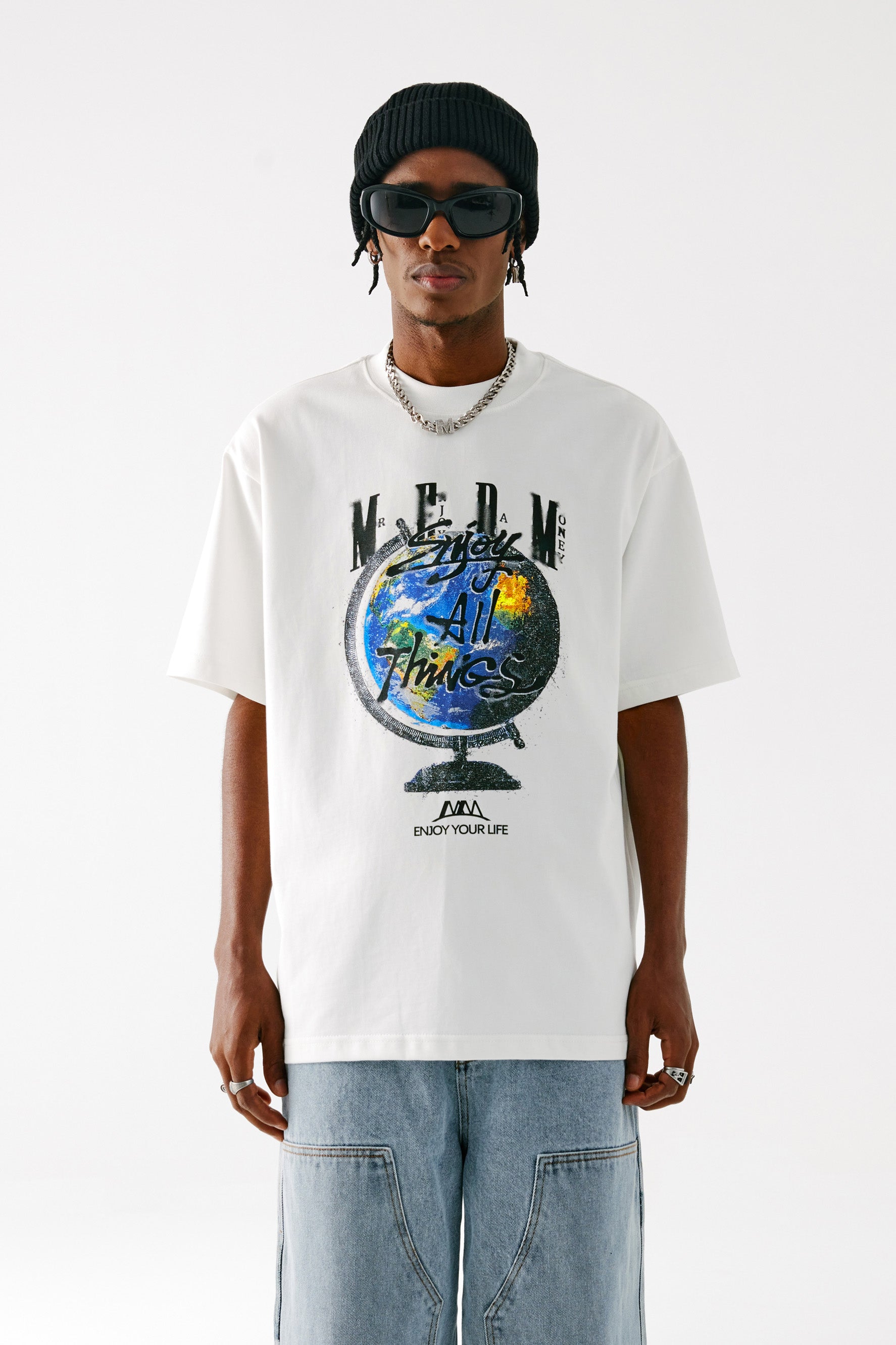 이 MEDM GLOBE 티셔츠는 100% 유기농 면으로 제작되었으며 앞면에 독특한 지구본 그래픽 프린트가 특징입니다. 여유로운 핏으로 하루 종일 편안함과 통기성을 보장합니다. 캐주얼 웨어에 완벽한 친환경 선택입니다.