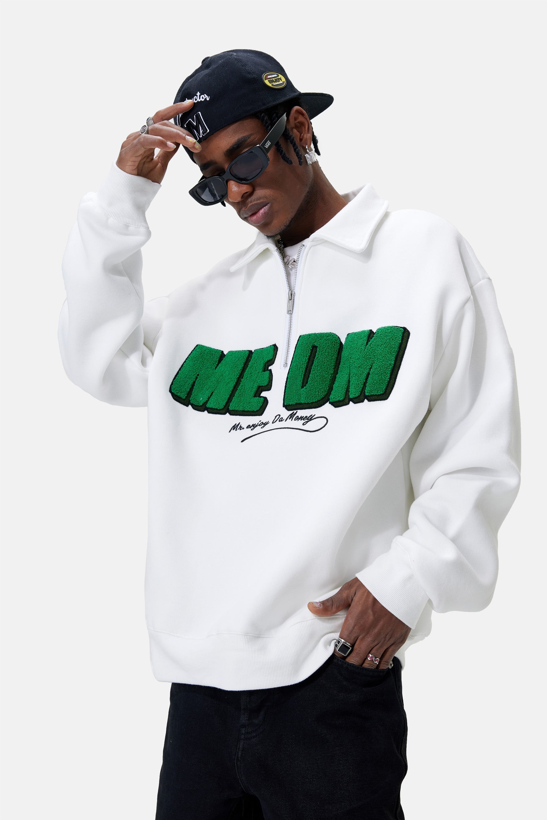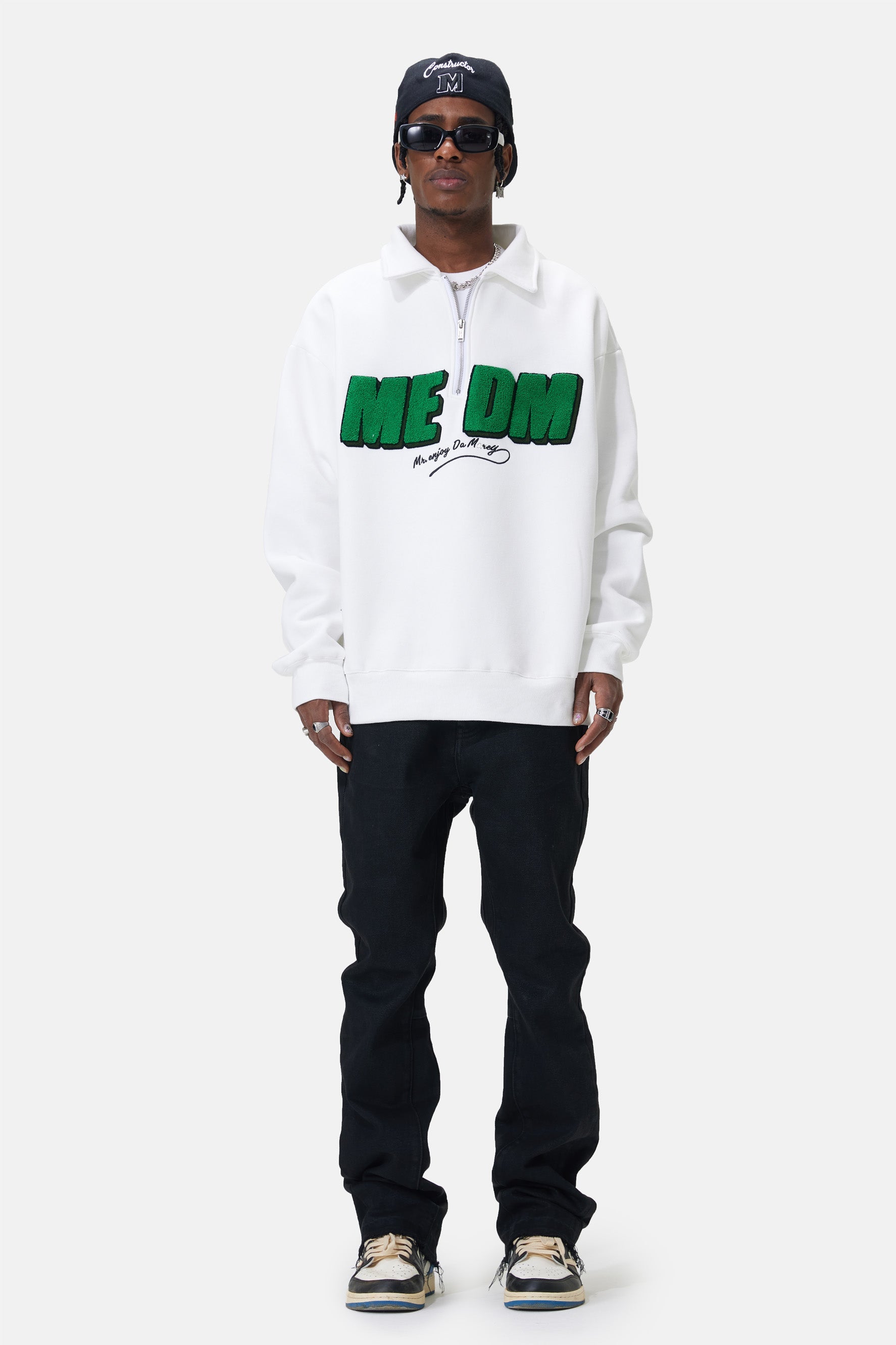 포인티드 칼라와 루즈한 핏이 특징인 폴로 셔츠입니다. 전면에 Medm 로고가 있습니다. 세부 사항에는 반 지퍼 잠금 장치가 포함됩니다. 면 소재로 제작되어 내구성이 매우 뛰어납니다.