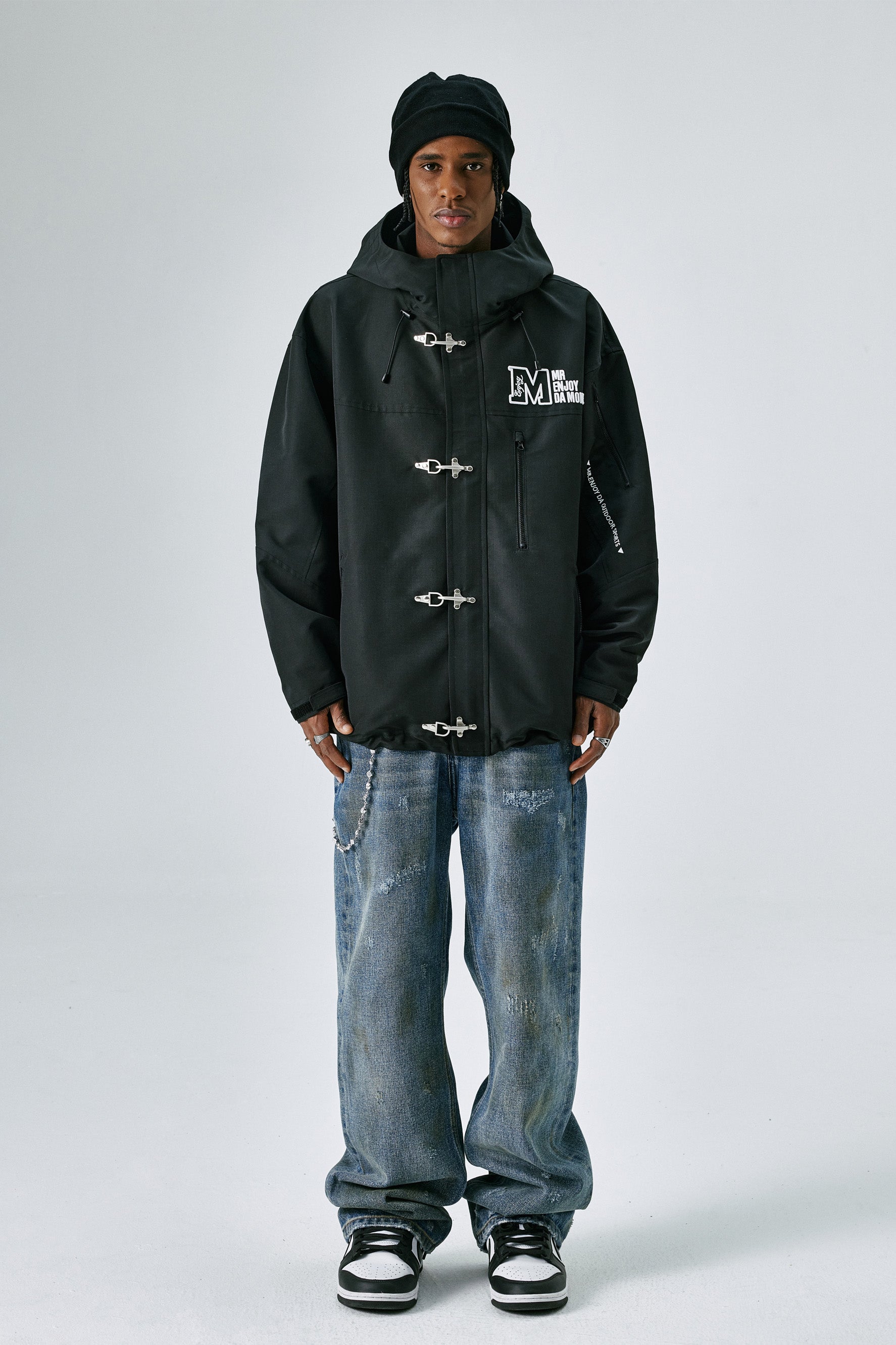 MEDM HOODED BUCKLE JACKET은 가벼운 폴리에스터 구조와 스타일리시한 후드 디자인이 특징으로 궁극의 편안함을 제공하도록 디자인되었습니다. 재킷은 스타일을 타협하지 않는 안전한 핏을 위해 버클 잠금장치와 앞면에 자수 로고를 자랑합니다. 어떤 옷장에도 완벽하게 추가됩니다.