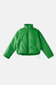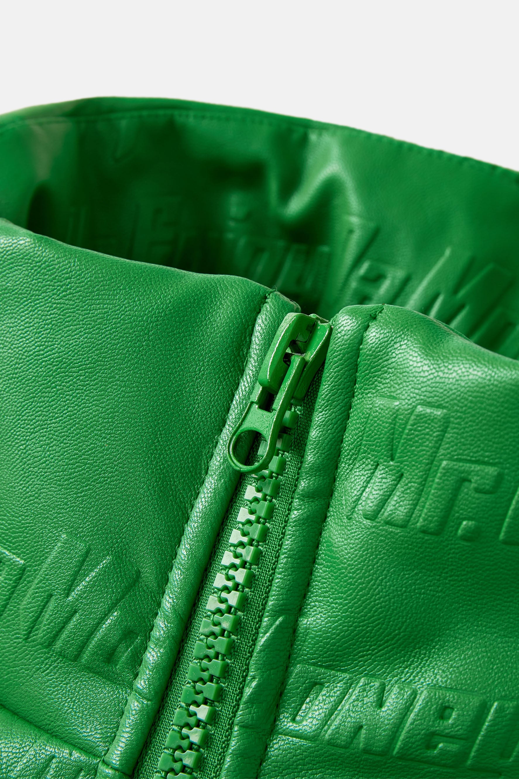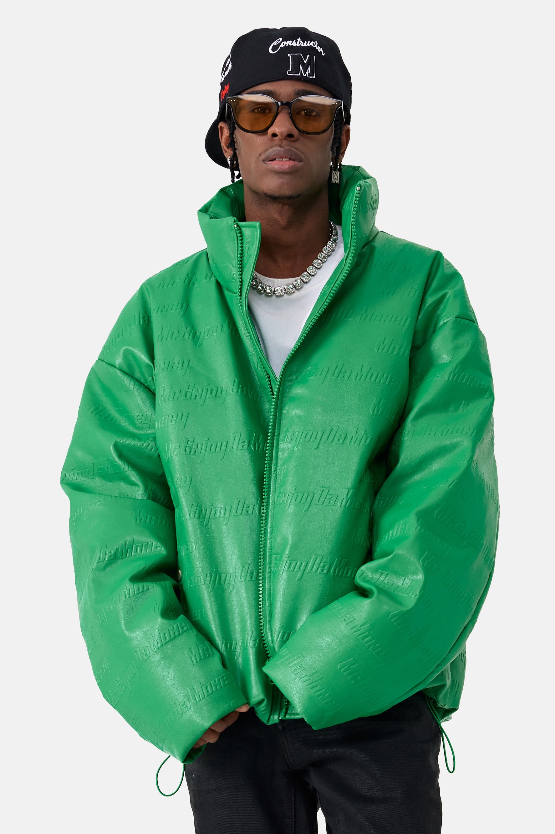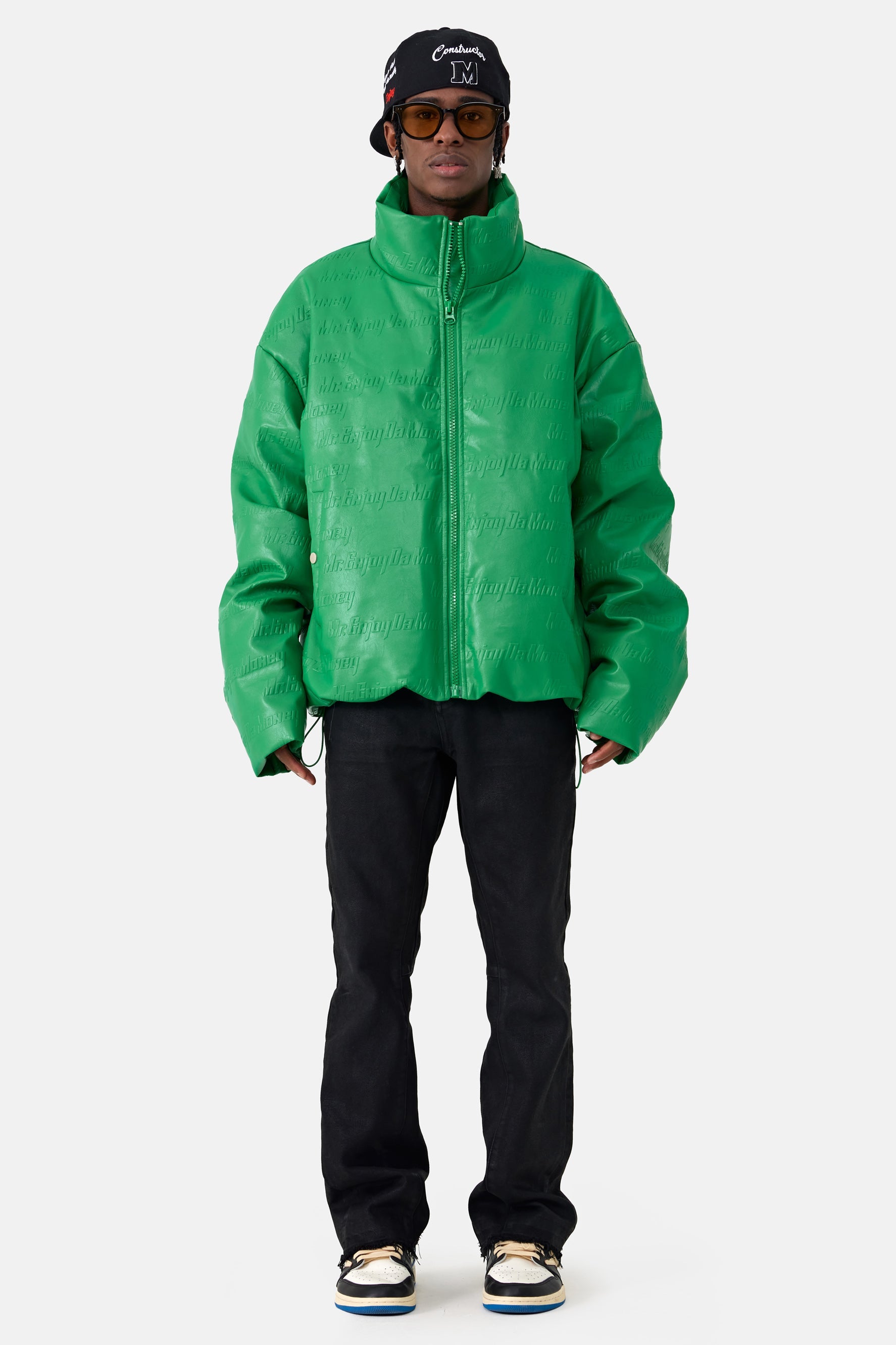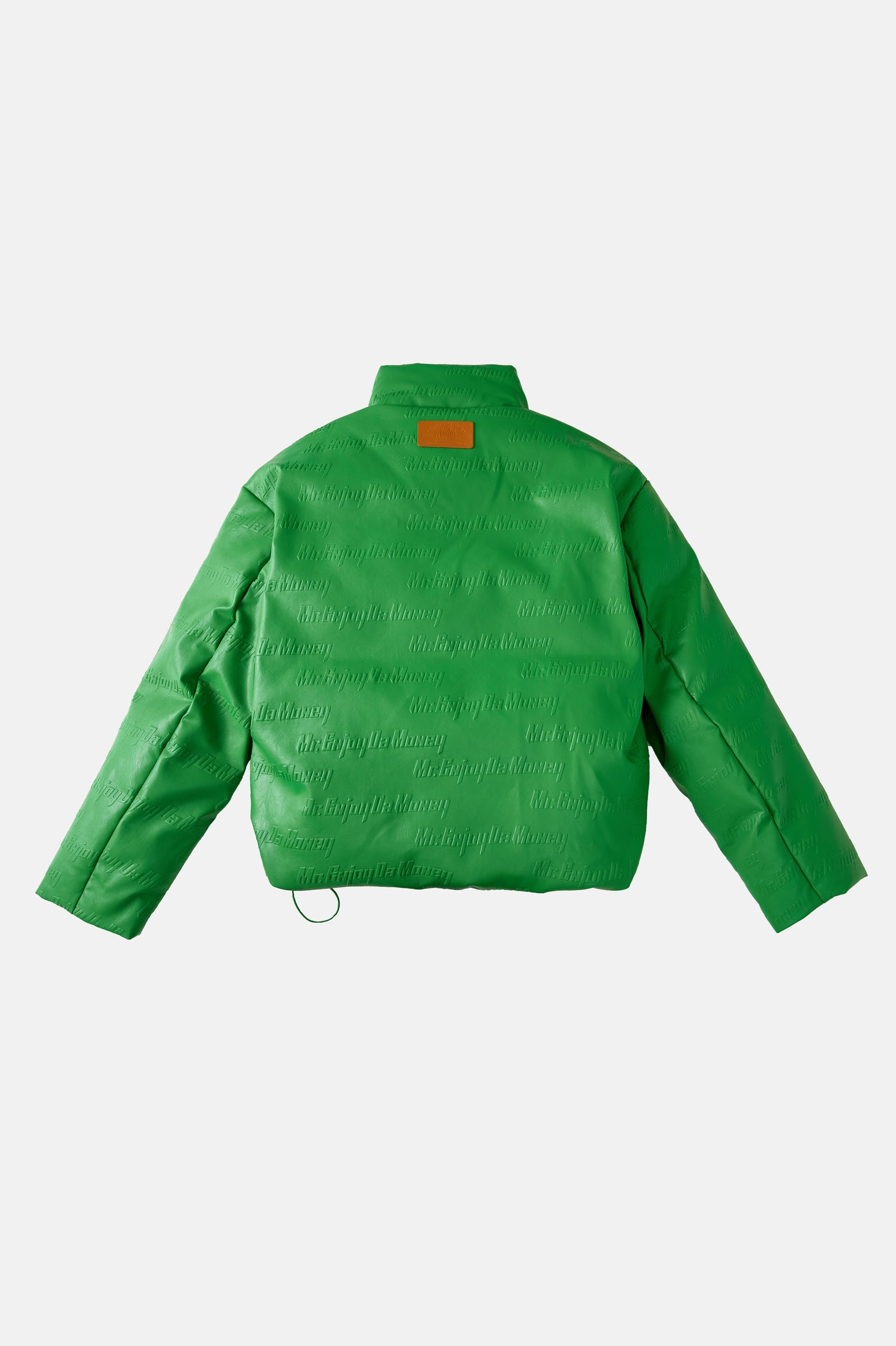 이 패딩 재킷은 전체적으로 Medm 로고, 스탠드 칼라, 전면 지퍼 잠금 장치가 있는 2개의 핸드 사이드 포켓이 특징입니다.