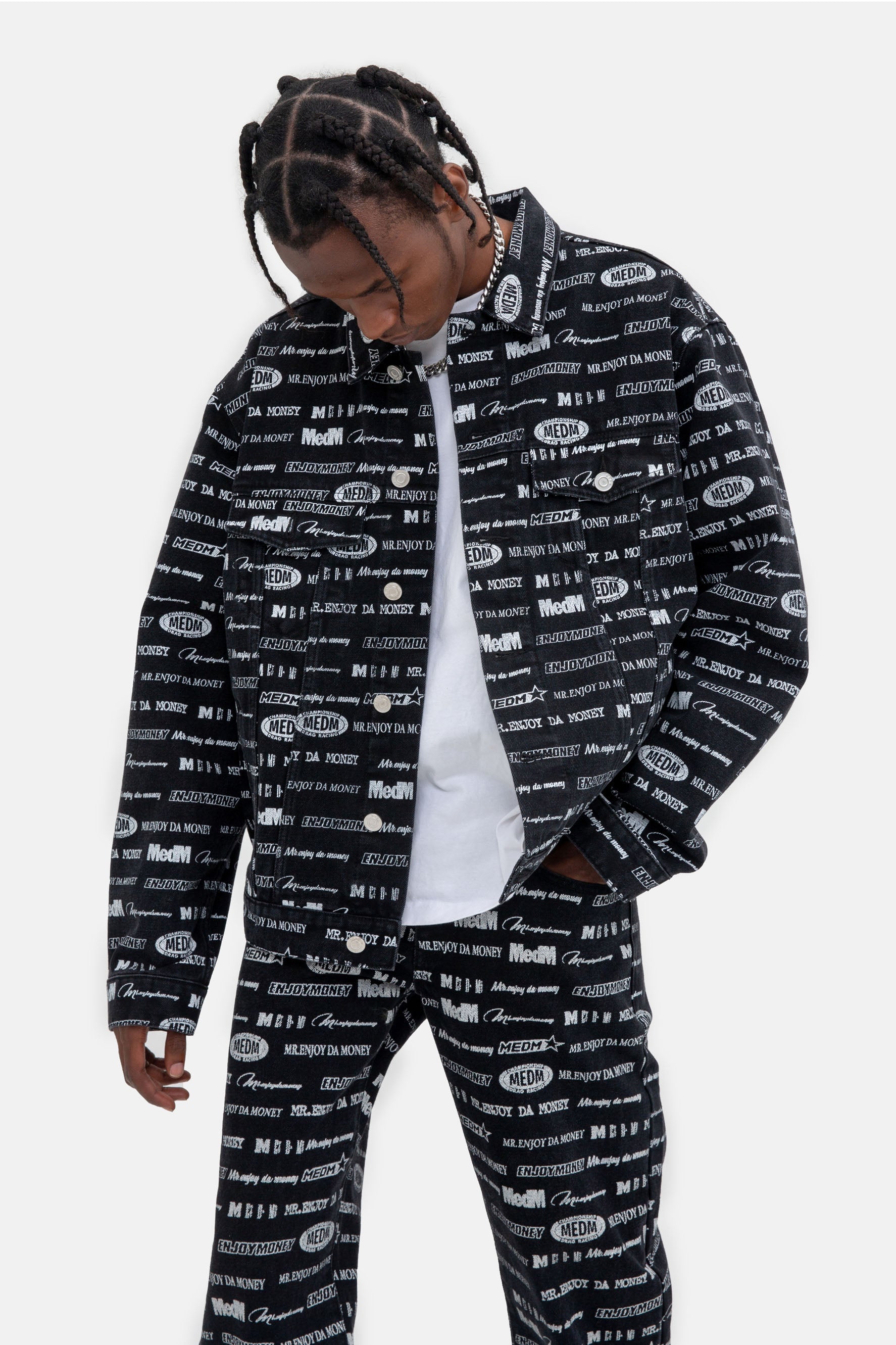 MEDM 로고 패턴 프린트 블랙 데님 재킷