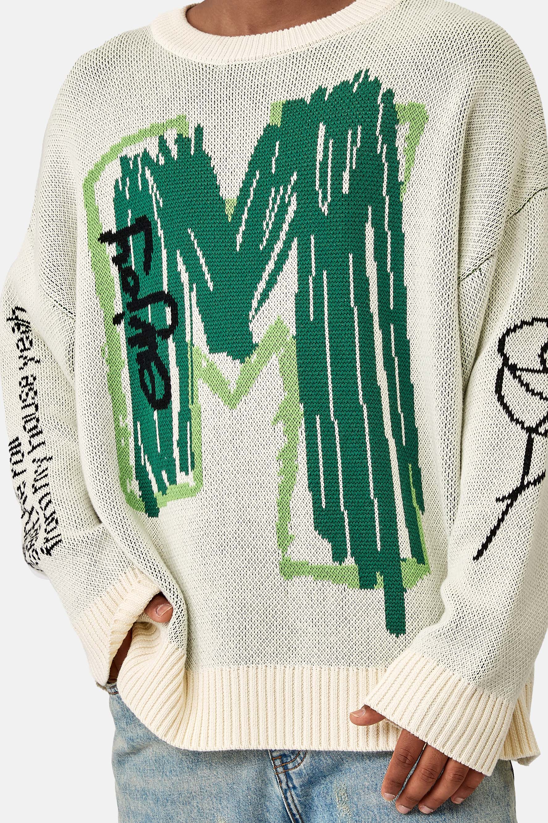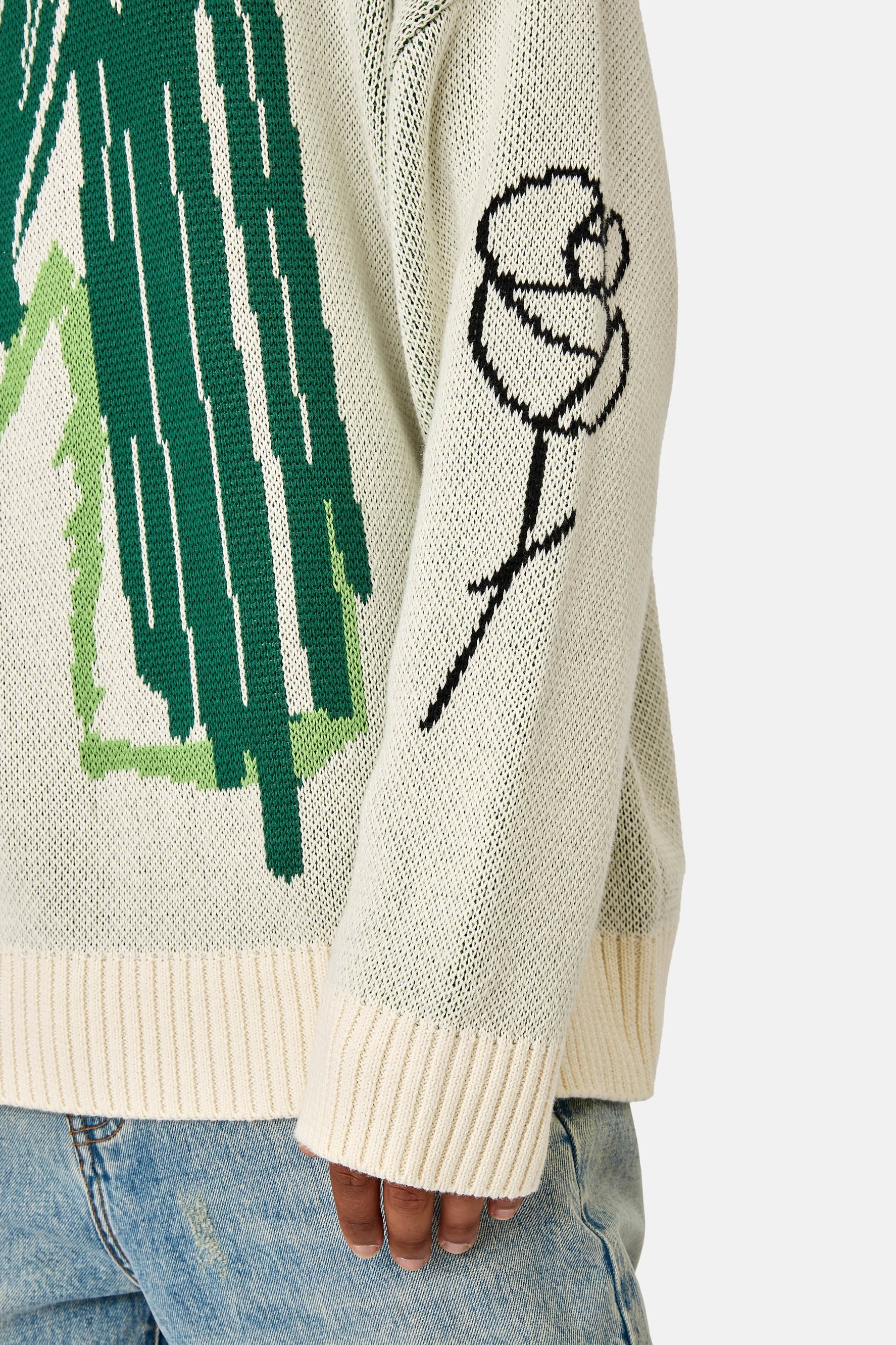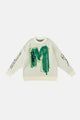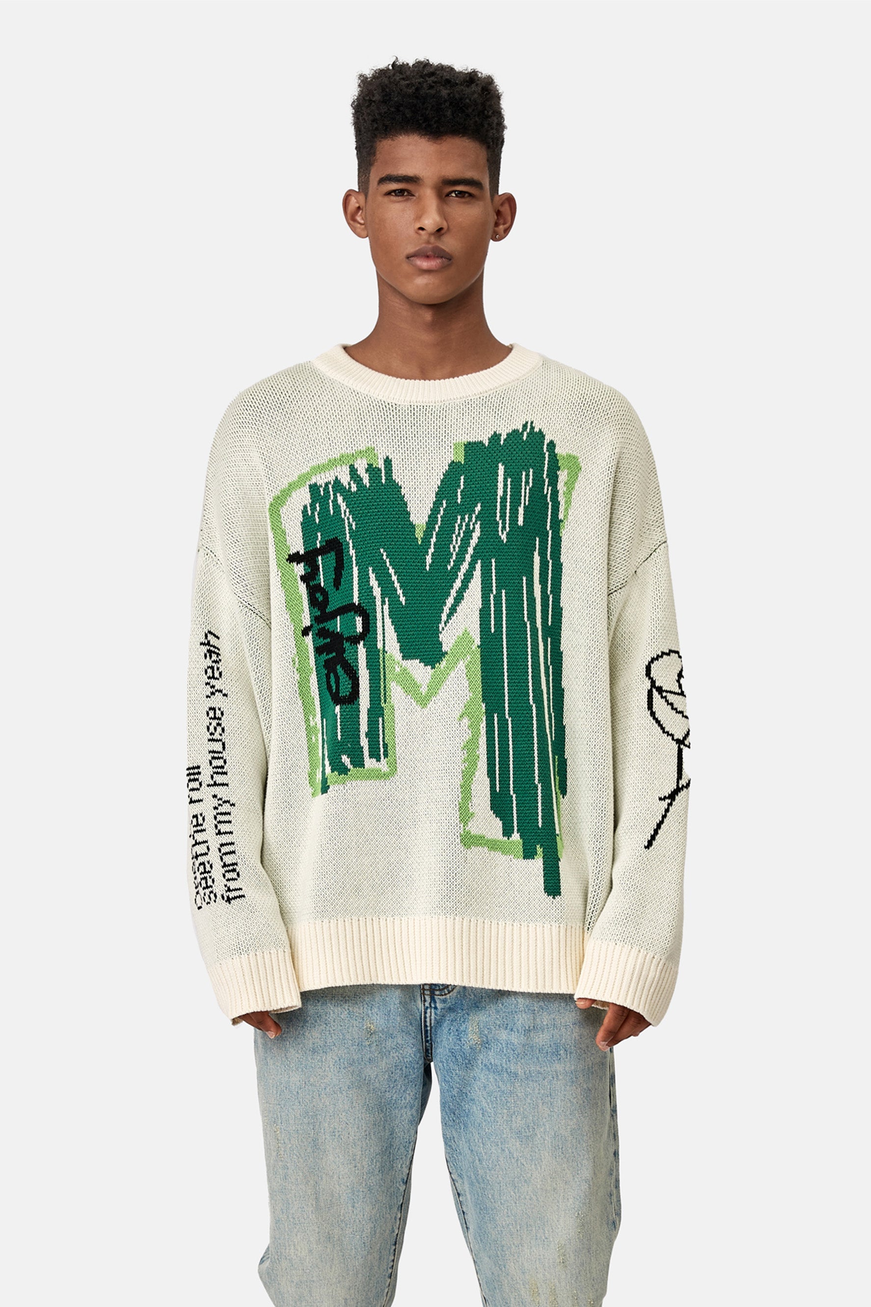 이 스웨터는 드롭 숄더 디자인, 손목과 허리 부분의 골지 디테일로 여유로운 핏이 특징입니다.