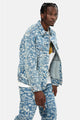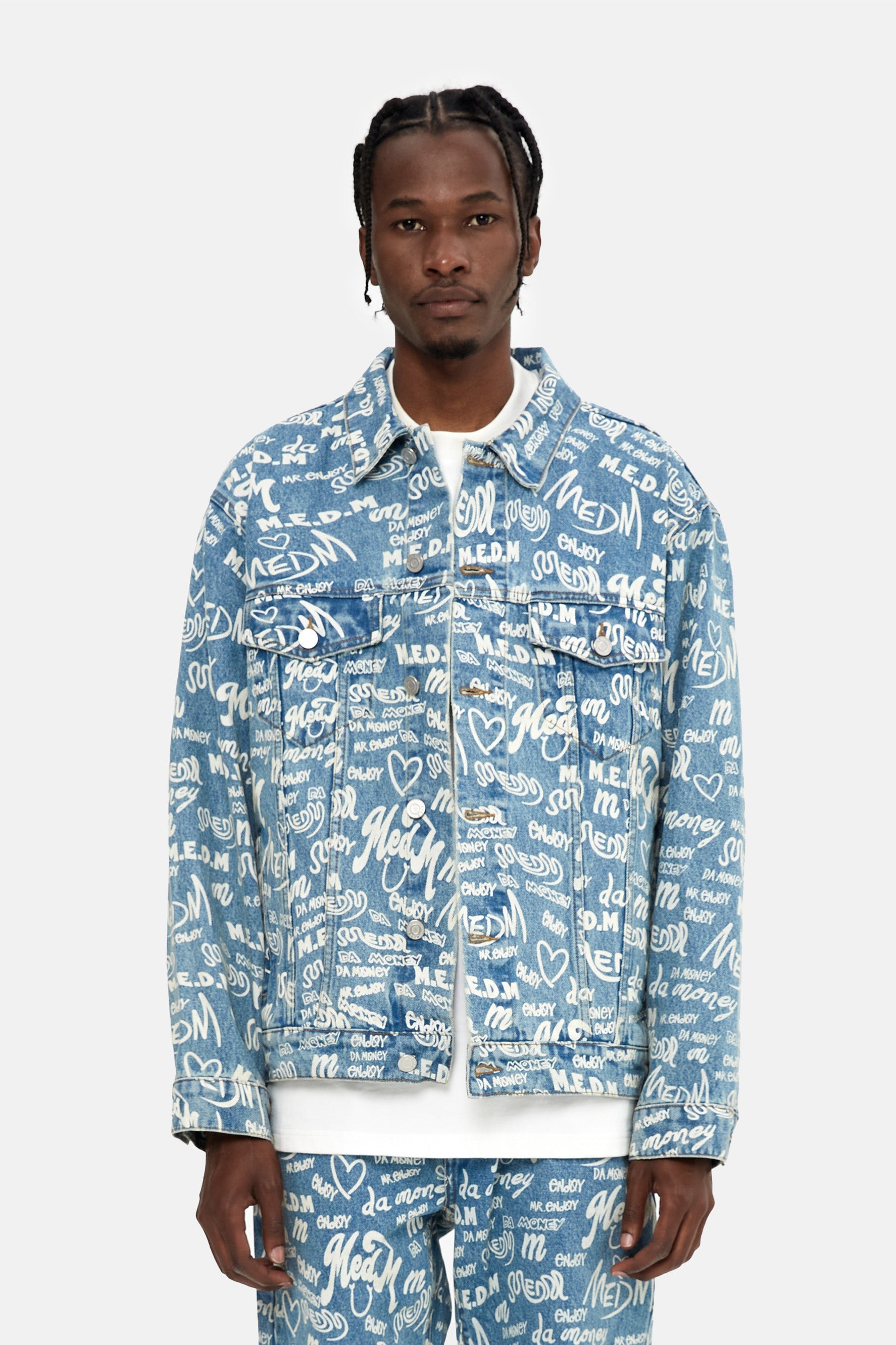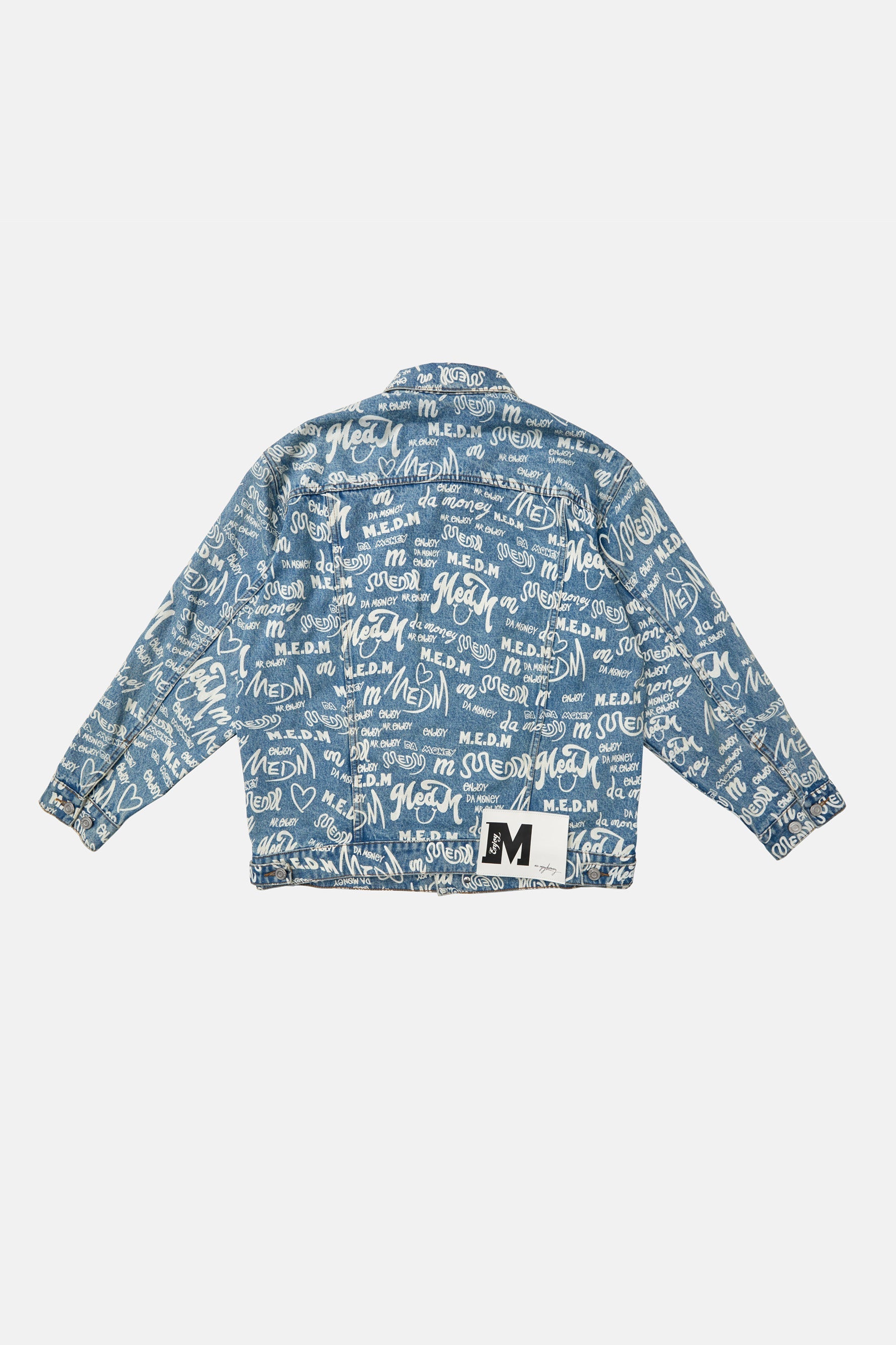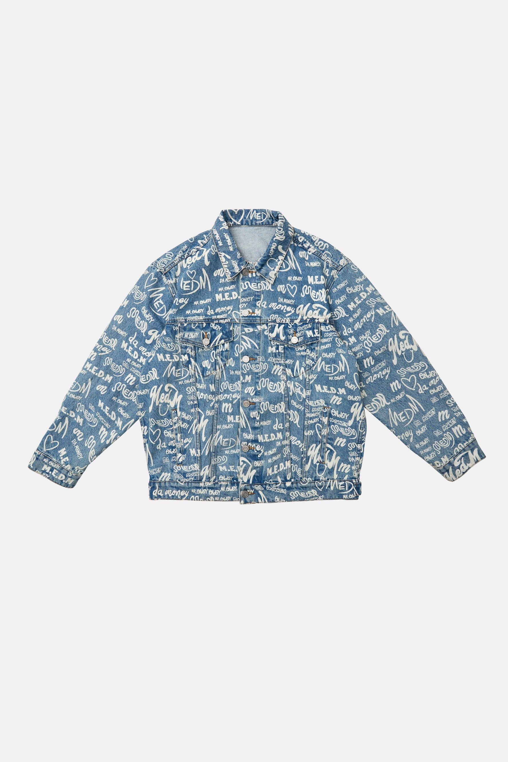 이 재킷은 전체적으로 로고 패턴 프린트가 특징입니다. 버튼 업 클로저. 데님 코튼 소재로 제작되어 내구성이 더욱 뛰어납니다.