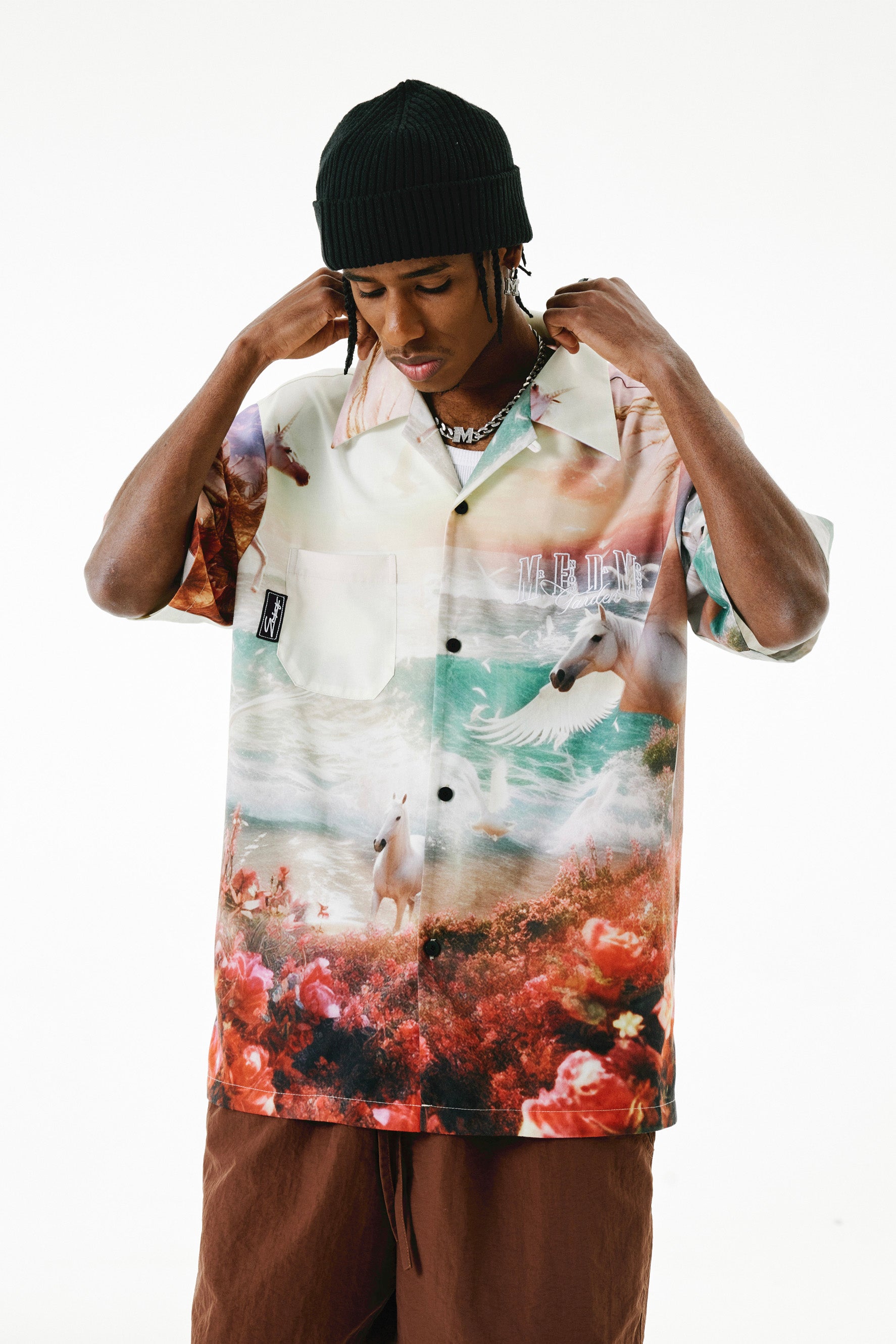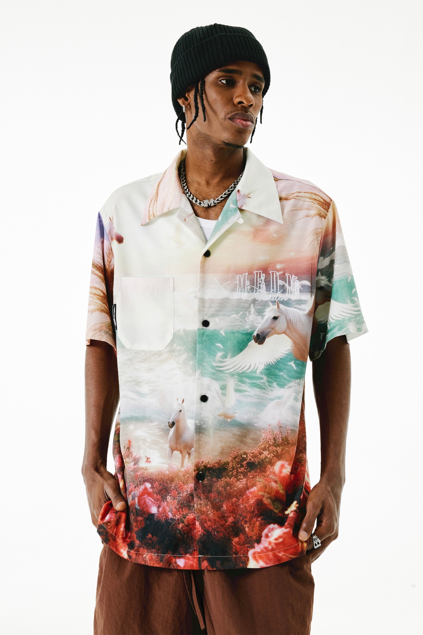 이 MEDM PEGASUS 셔츠는 스타일과 편안함이 완벽하게 조화를 이루도록 디자인되었습니다. 고급스러운 비스코스 원단으로 제작된 이 제품은 페가수스 패턴 프린트, 쿠반 칼라, 버튼업 잠금장치가 특징입니다. 가벼우면서도 따뜻한 이 셔츠를 벗고 싶지 않을 것입니다.