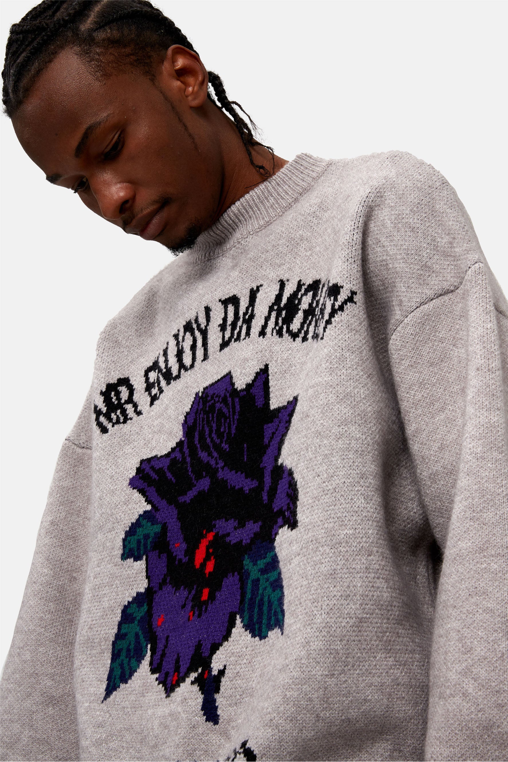 이것 니트 스웨터는 드롭 숄더 디자인, 손목과 허리 부분의 골지 디테일로 여유로운 핏을 제공합니다.