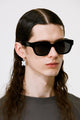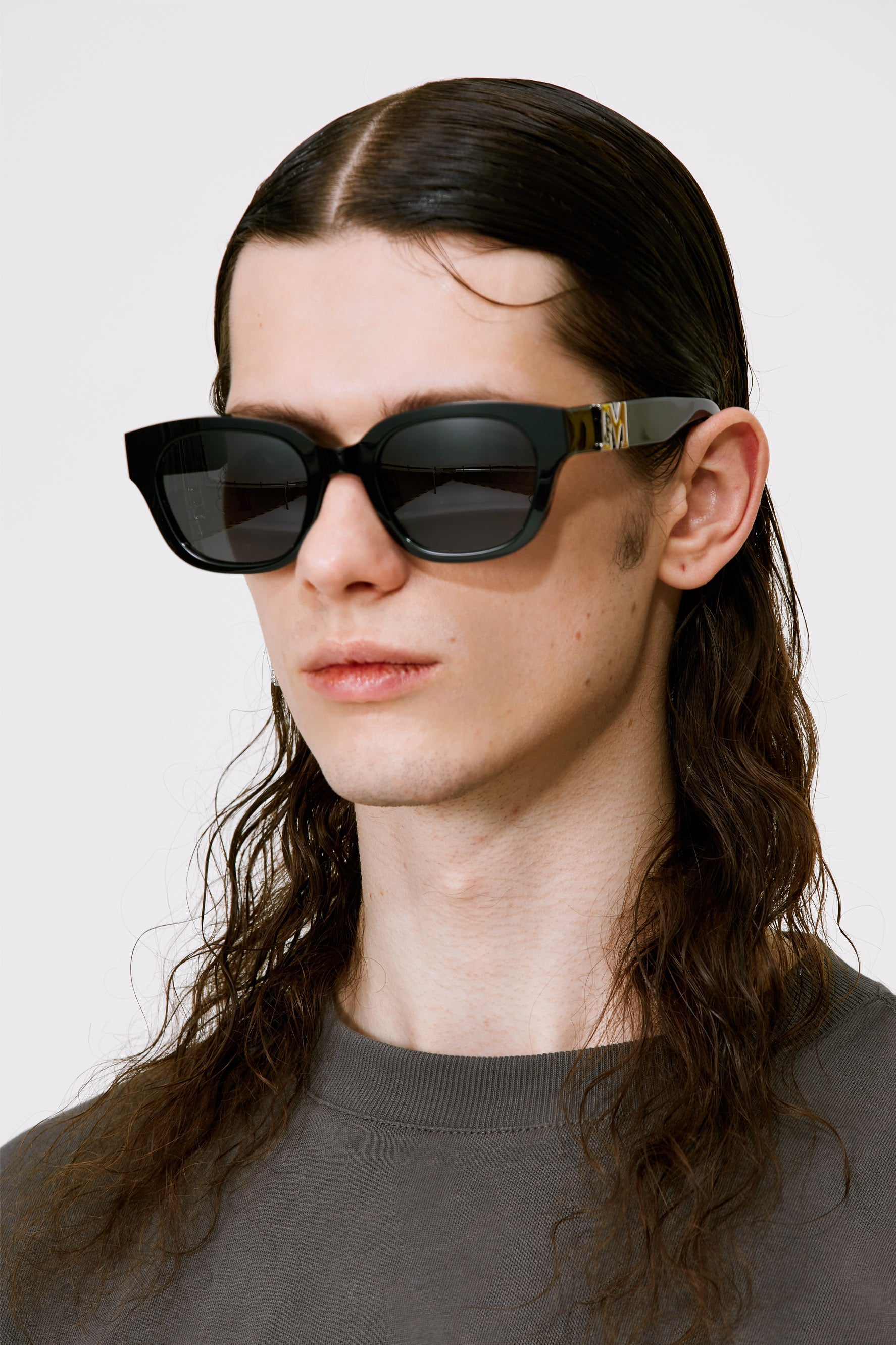 이 둥근 검정색 프레임은 착색 렌즈가 특징입니다. 미세한 디테일에는 경첩에 Medm 로고가 포함되어 있습니다. 깊은 베벨 디자인과 블랙 프레임이 모던한 느낌을 더해줍니다.