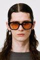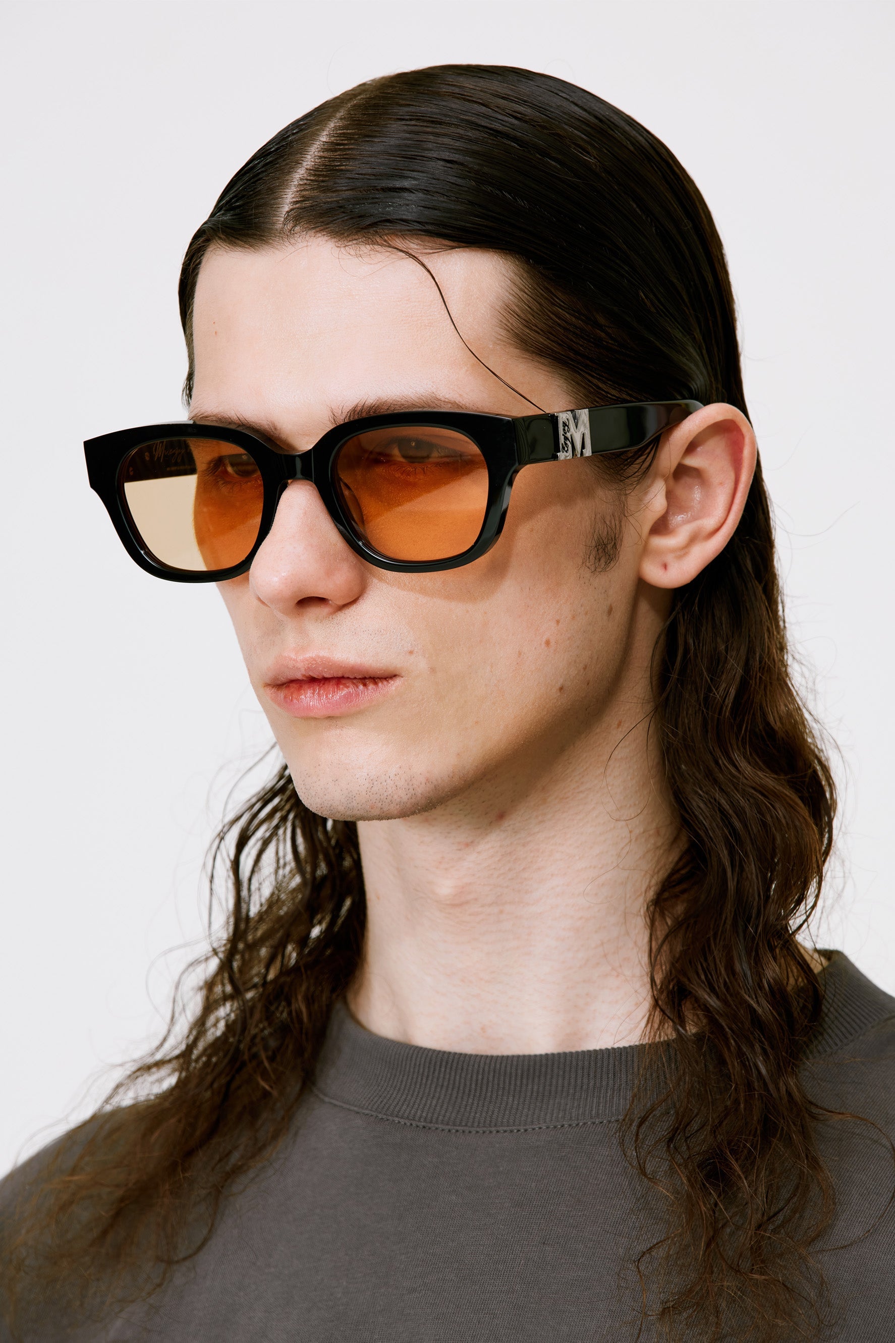 이 둥근 검정색 프레임은 착색 렌즈가 특징입니다. 미세한 디테일에는 경첩에 Medm 로고가 포함되어 있습니다. 깊은 베벨 디자인과 블랙 프레임이 모던한 느낌을 더해줍니다.