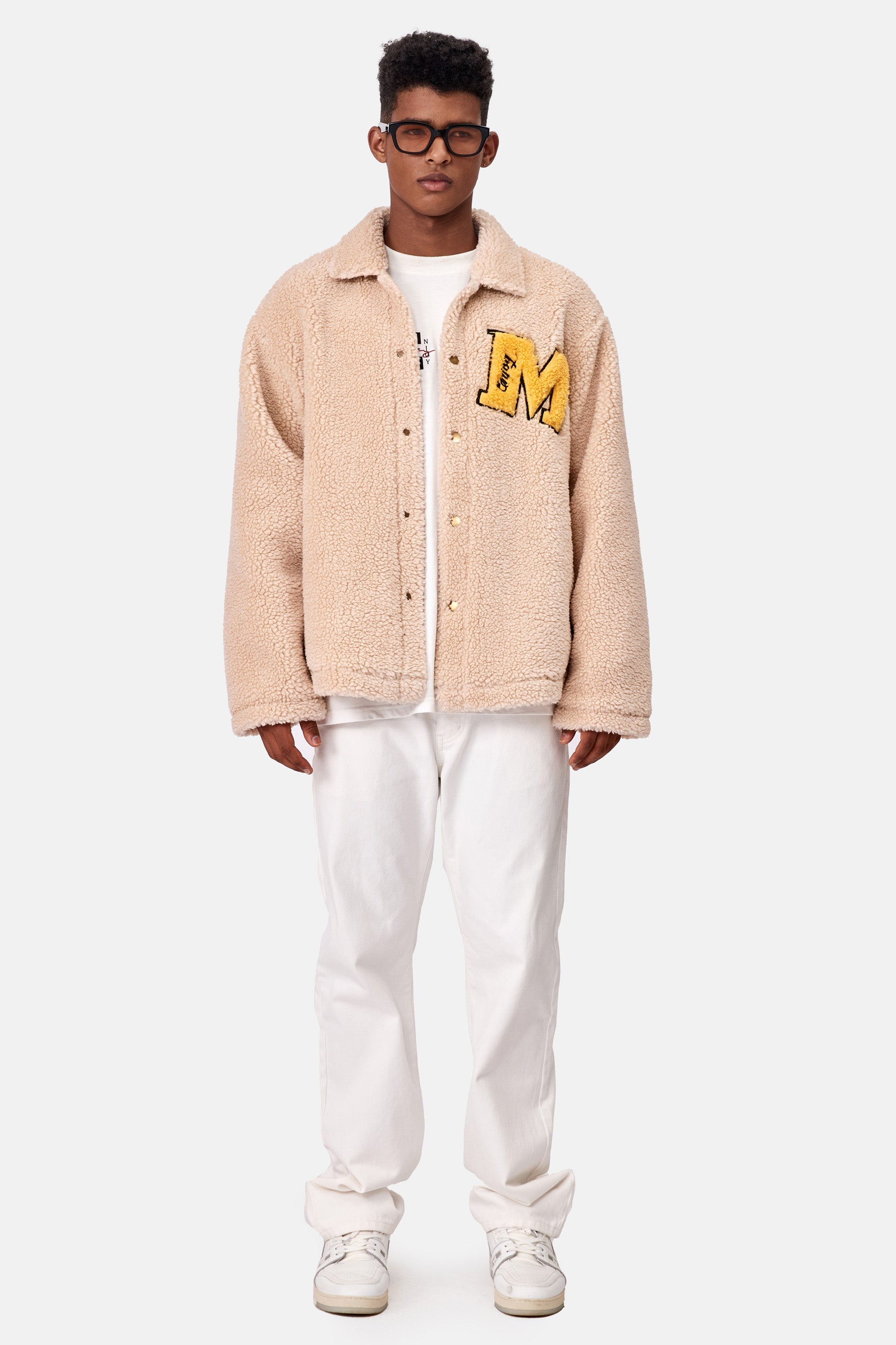가슴 부분에 MDM 로고 자수가 들어가 여유로운 핏이 특징인 재킷 입니다. 버튼 업 클로저