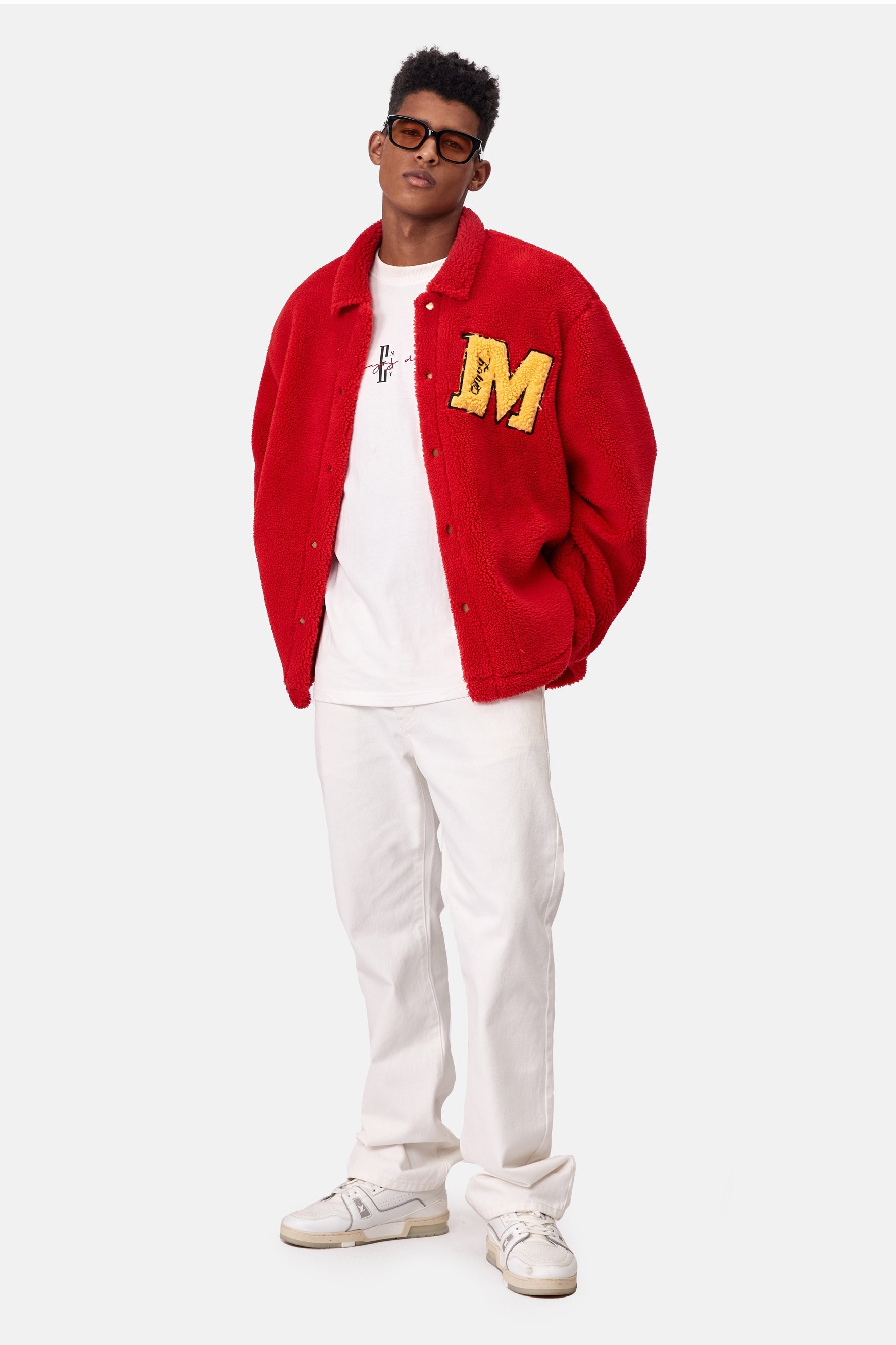 가슴 부분에 MDM 로고 자수가 들어가 여유로운 핏이 특징인 재킷 입니다. 버튼 업 클로저