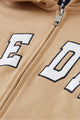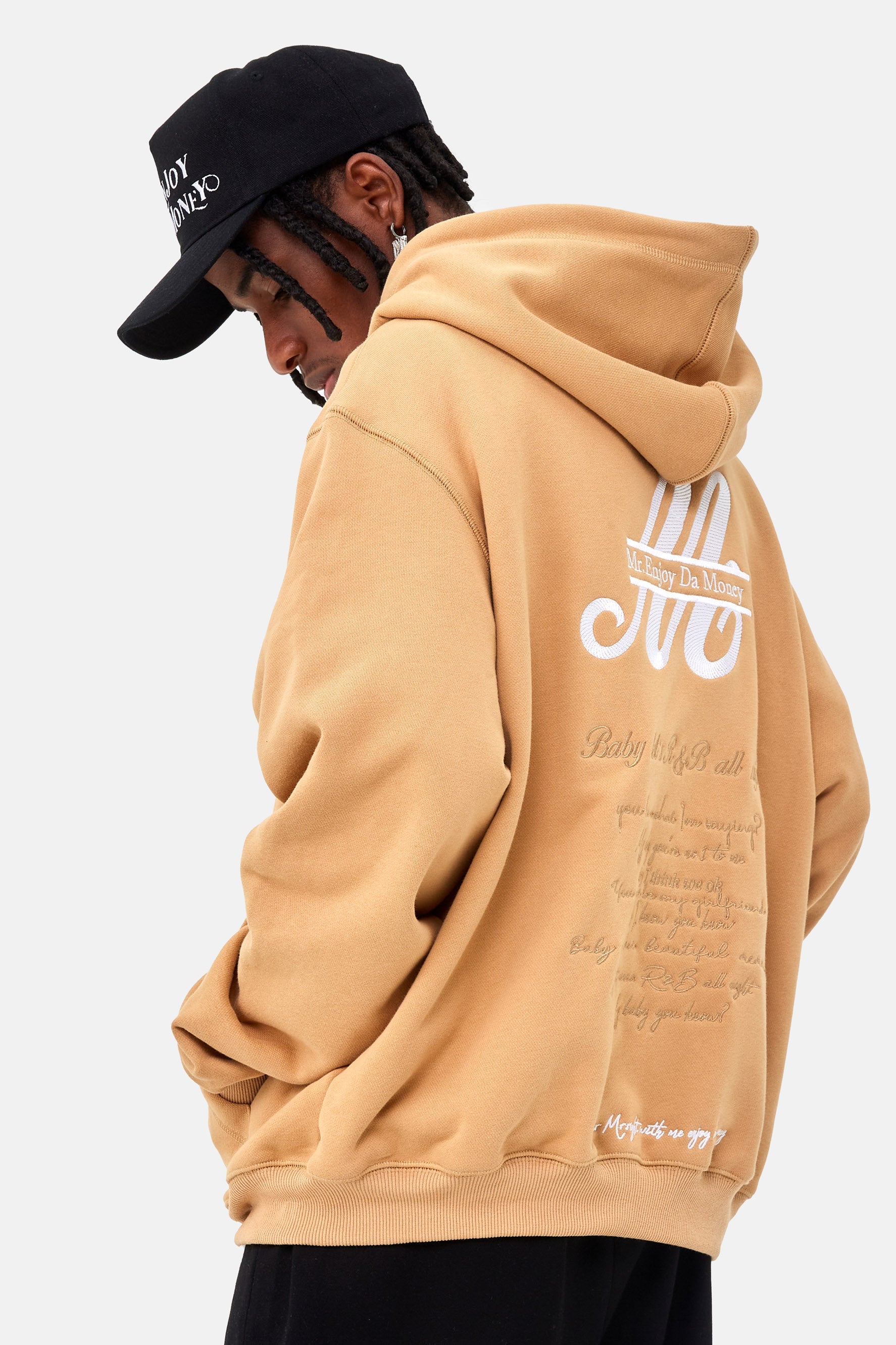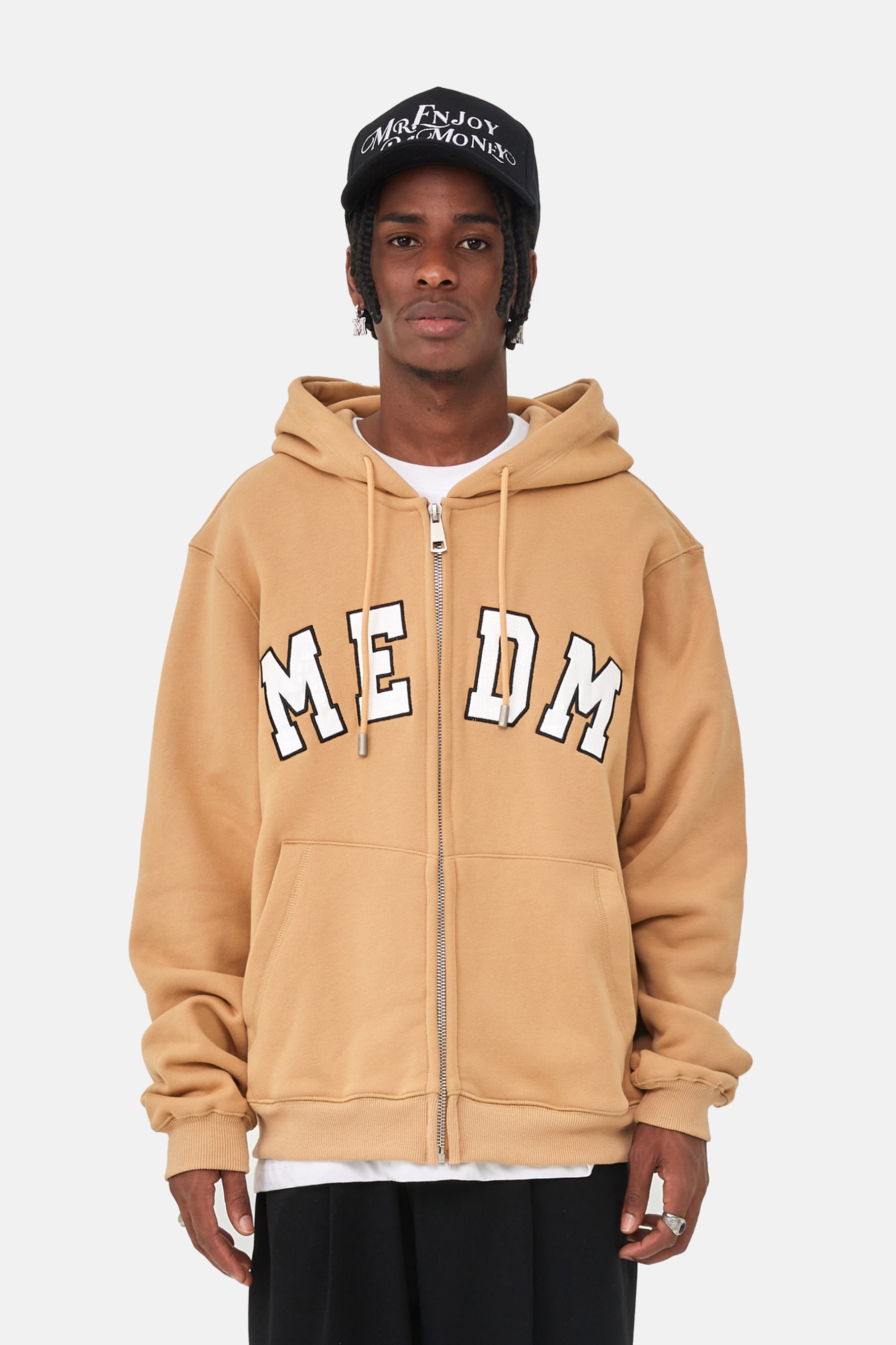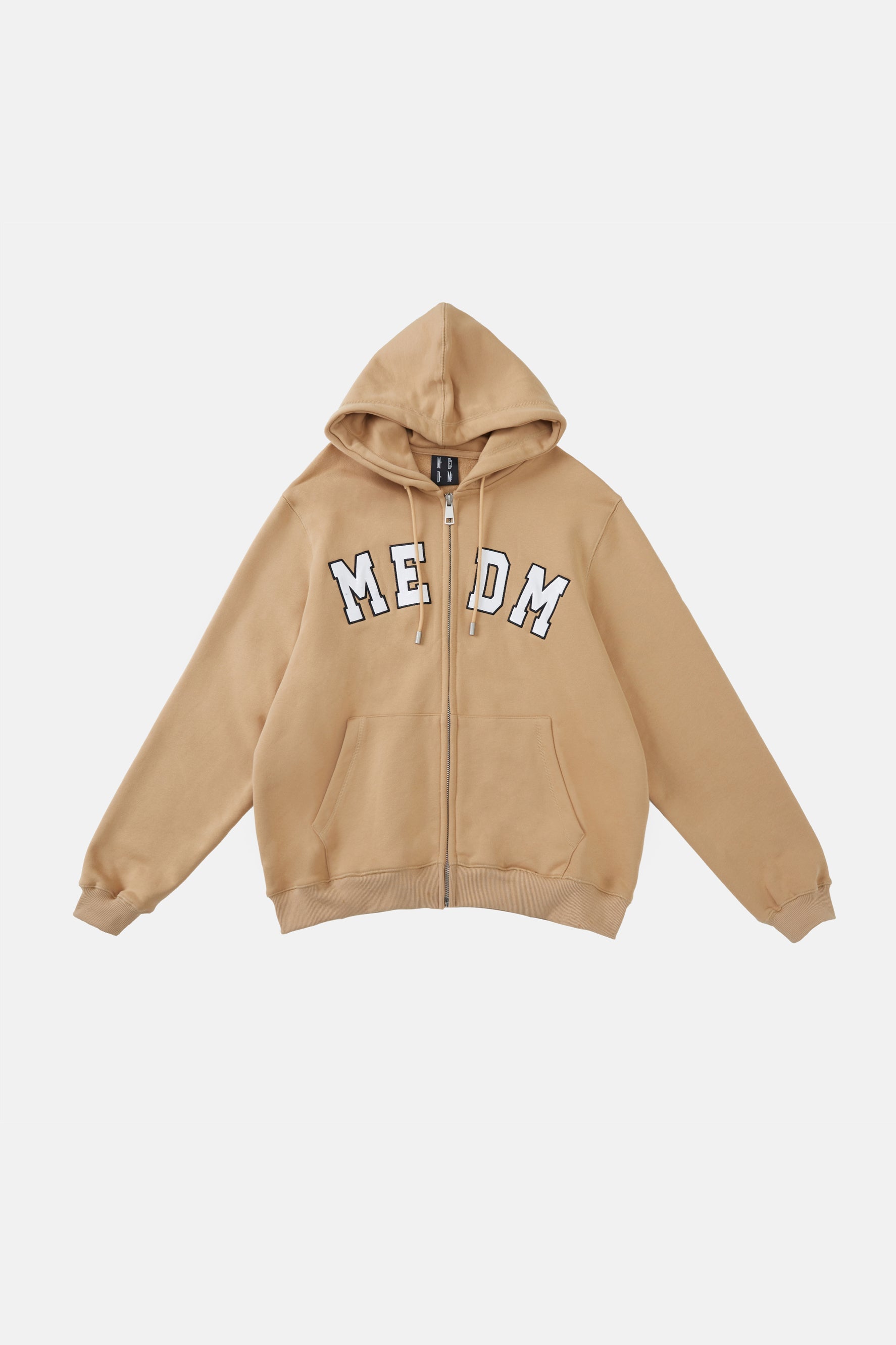이 후디는 드롭 숄더 디자인, 손목과 허리 부분에 골지 디테일이 있어 여유로운 핏이 특징입니다. 지퍼 클로저