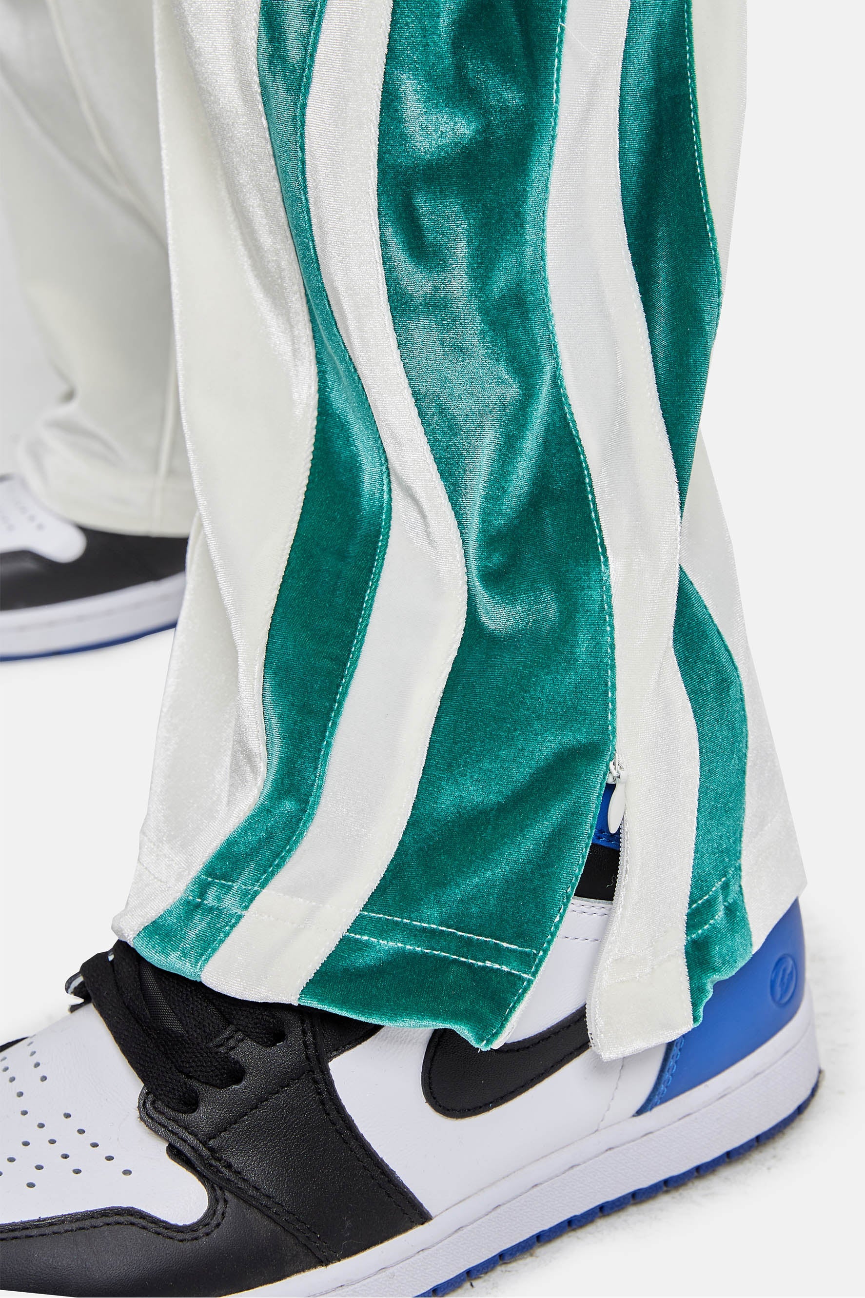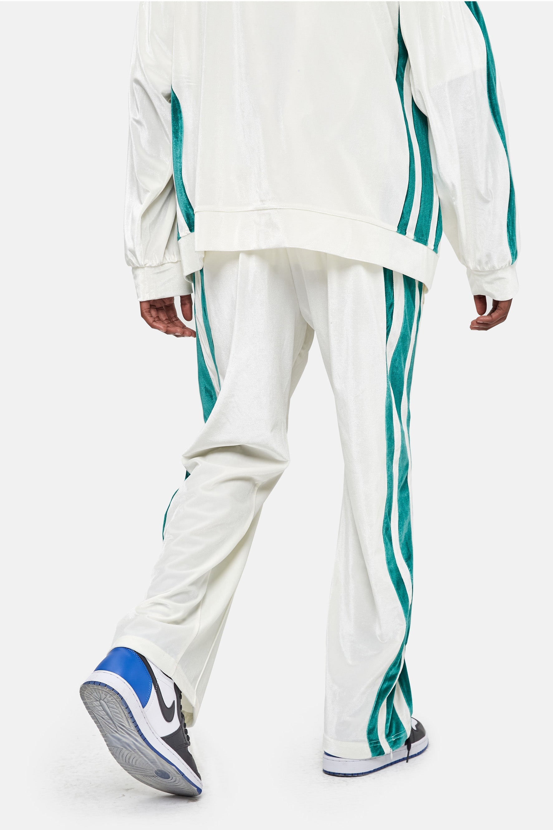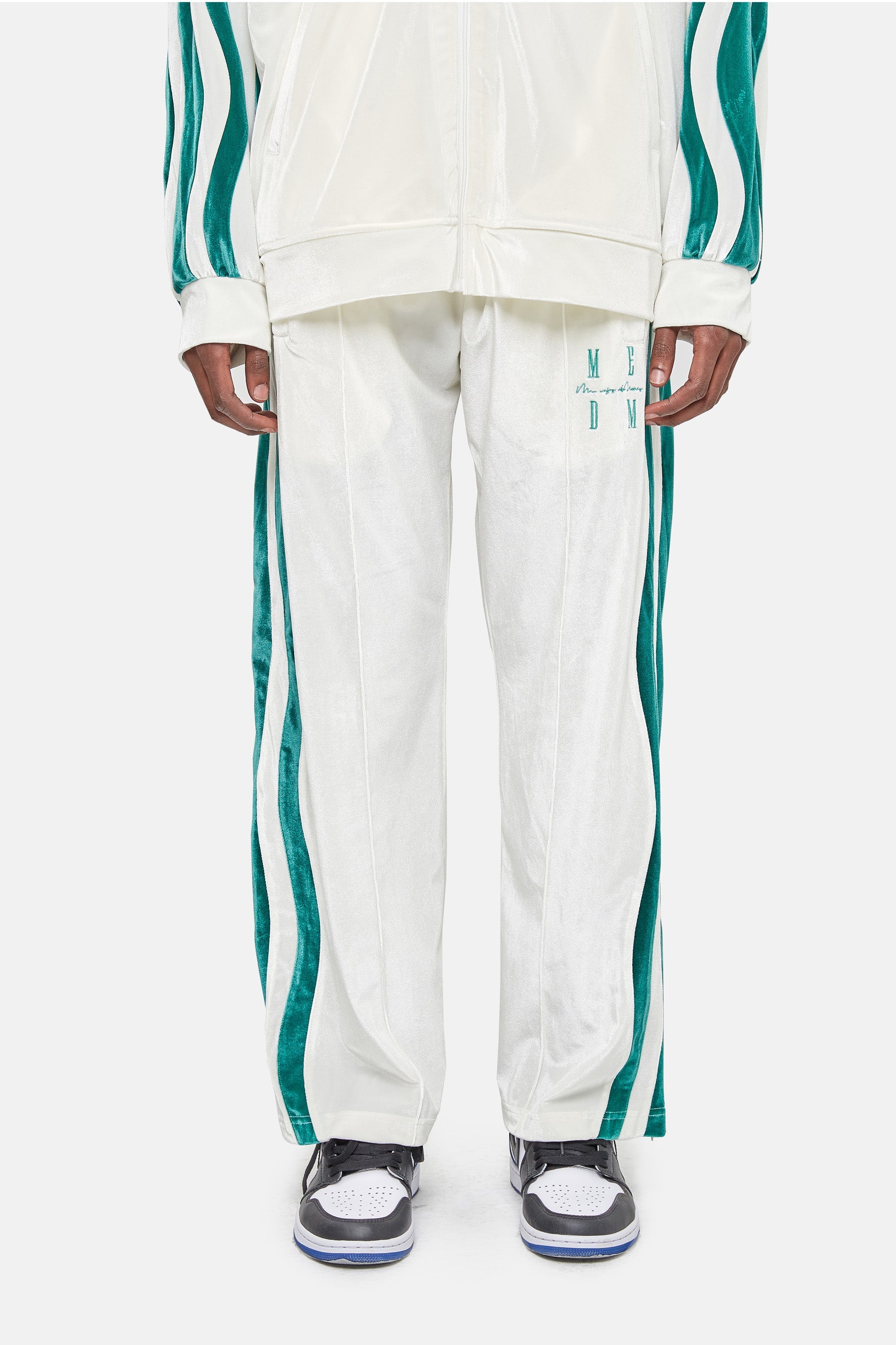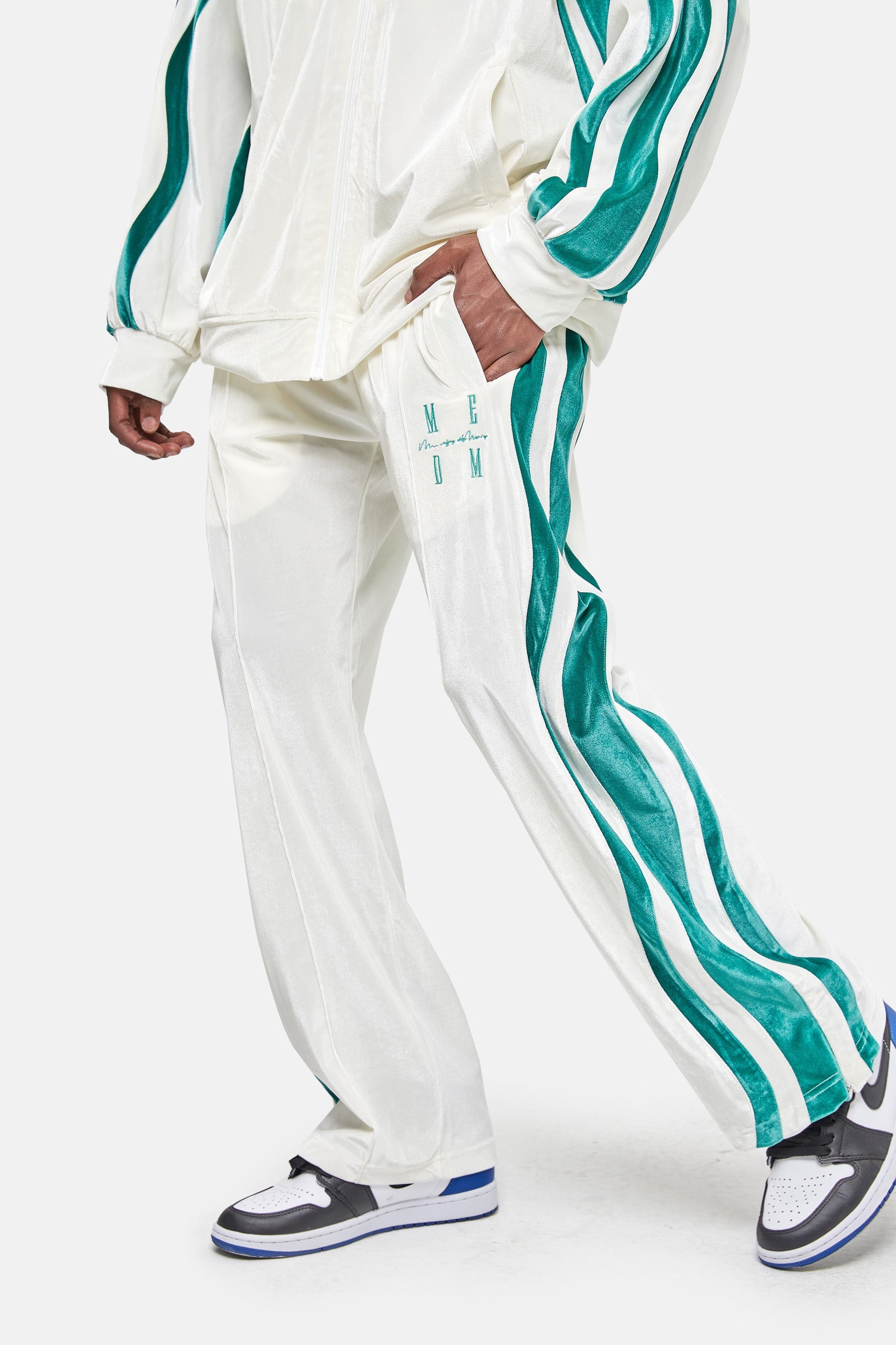 이 편안한 벨벳 트랙 팬츠는 신축성 있는 허리 밴드와 두 개의 측면 포켓이 특징입니다.