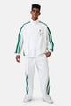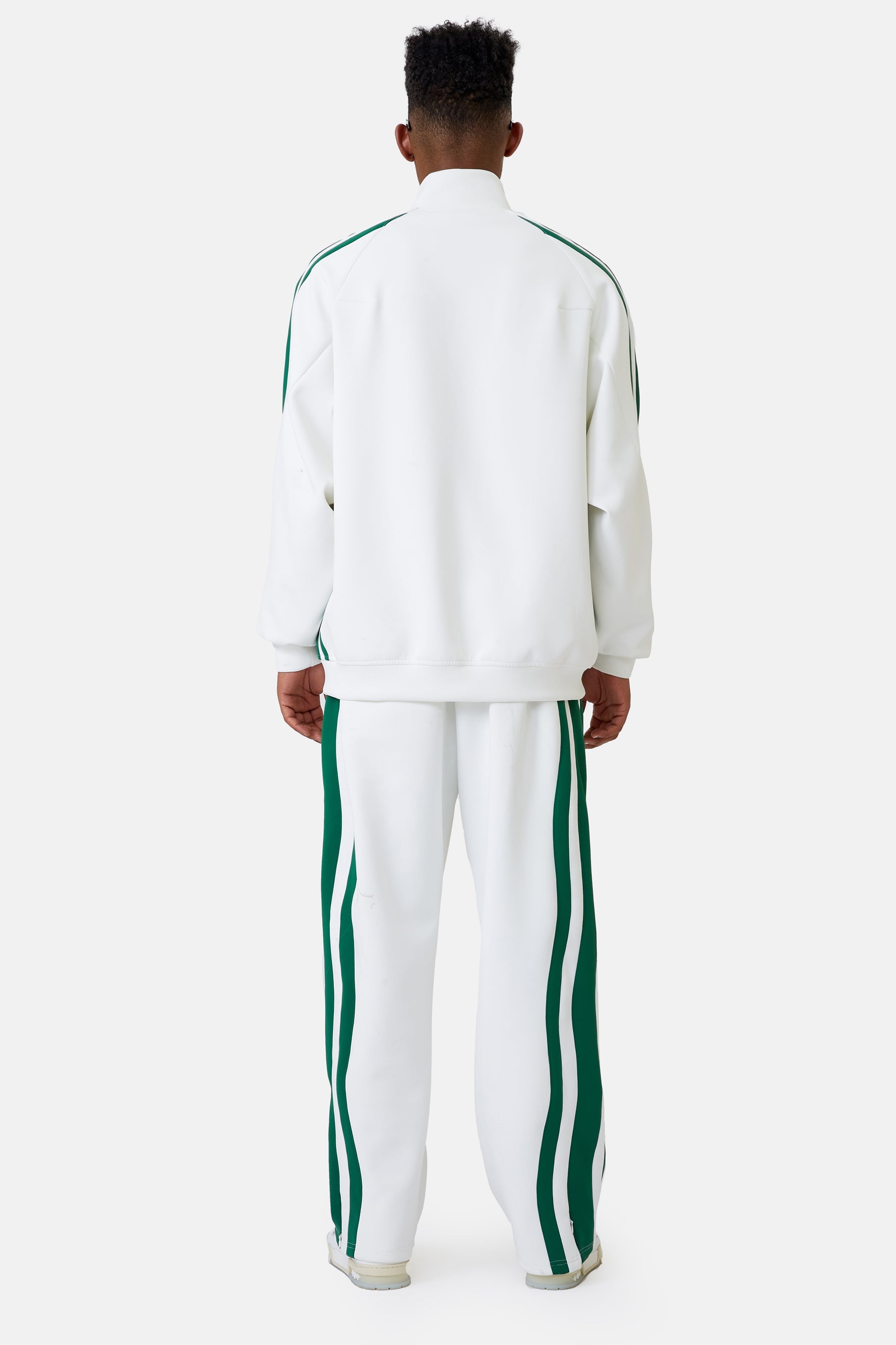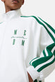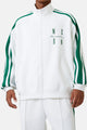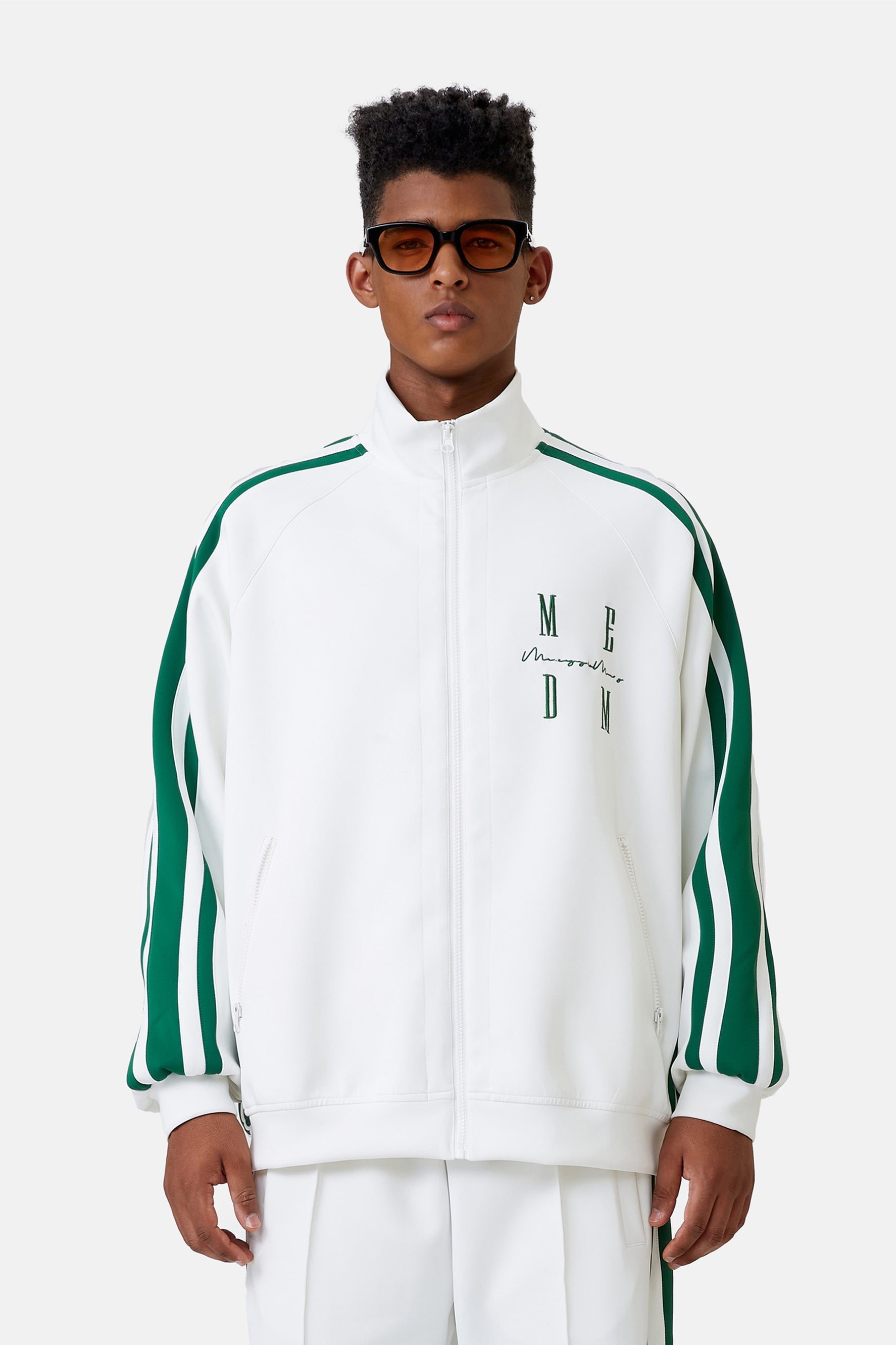 이 트랙 재킷은 양쪽 측면과 소매를 따라 흐르는 대담한 스트라이프가 있는 여유로운 핏이 특징입니다. 가슴 자수 로고, 앞면 지퍼 잠금장치, 지퍼 포켓 2개.