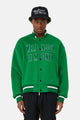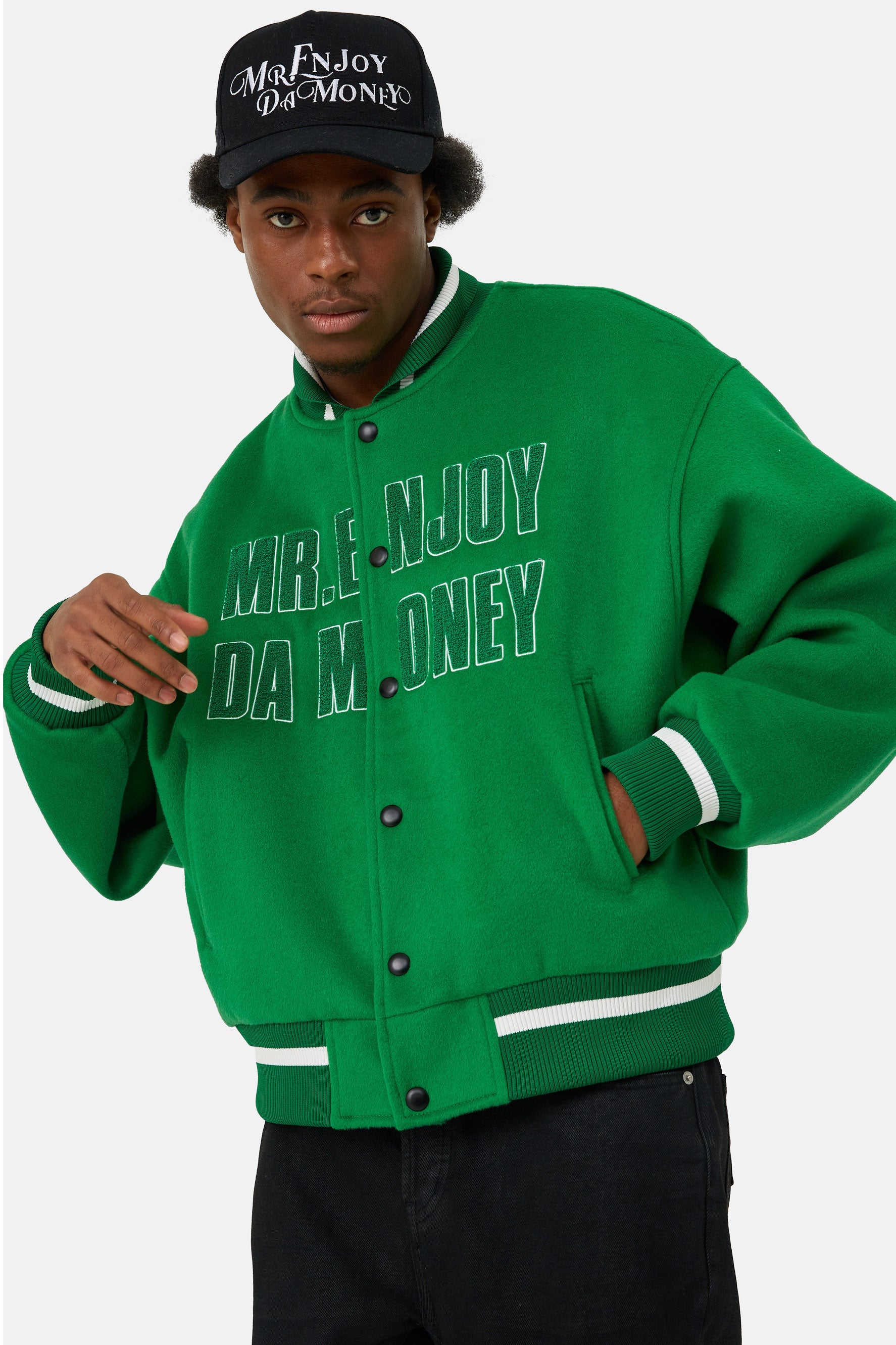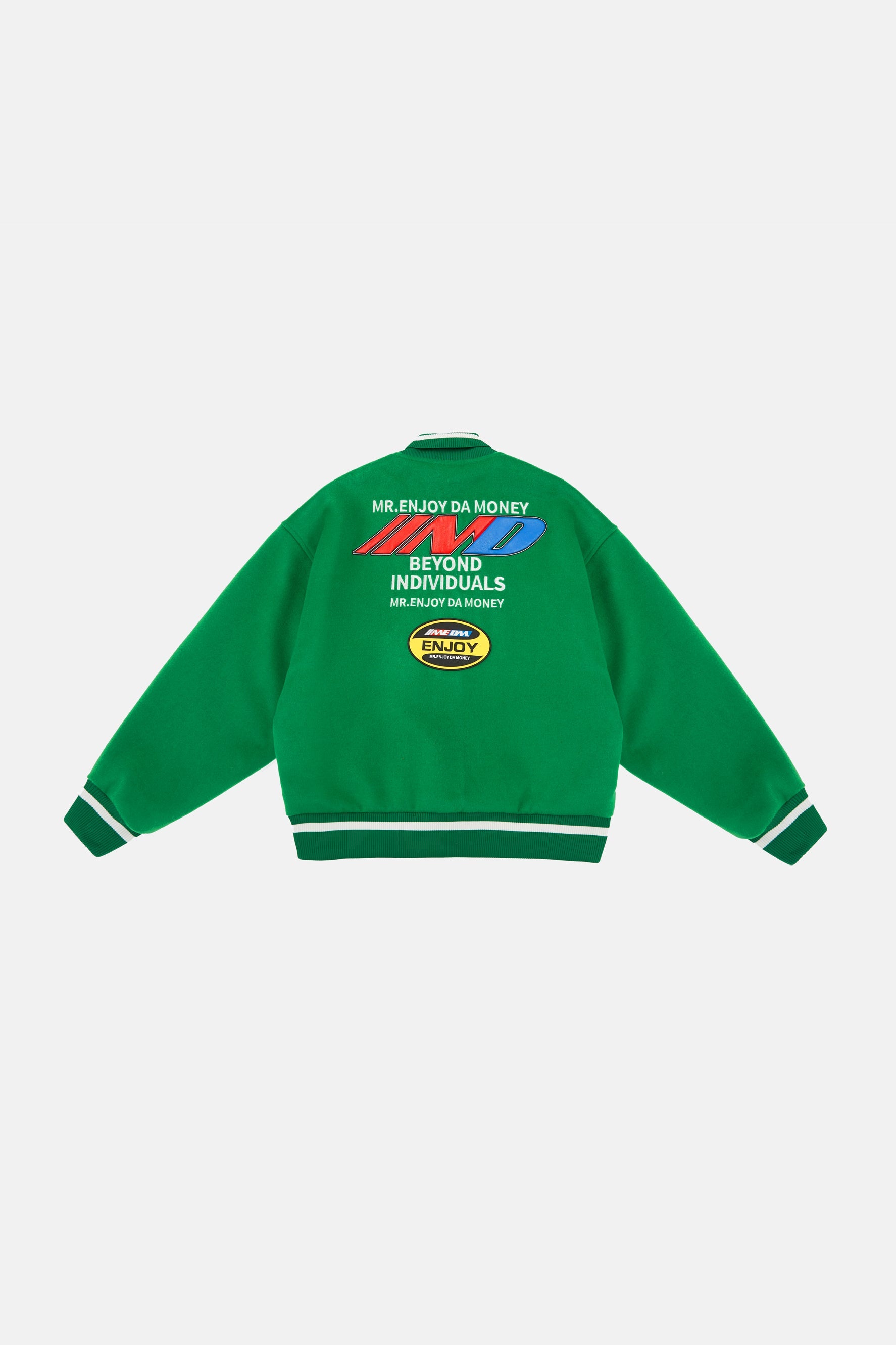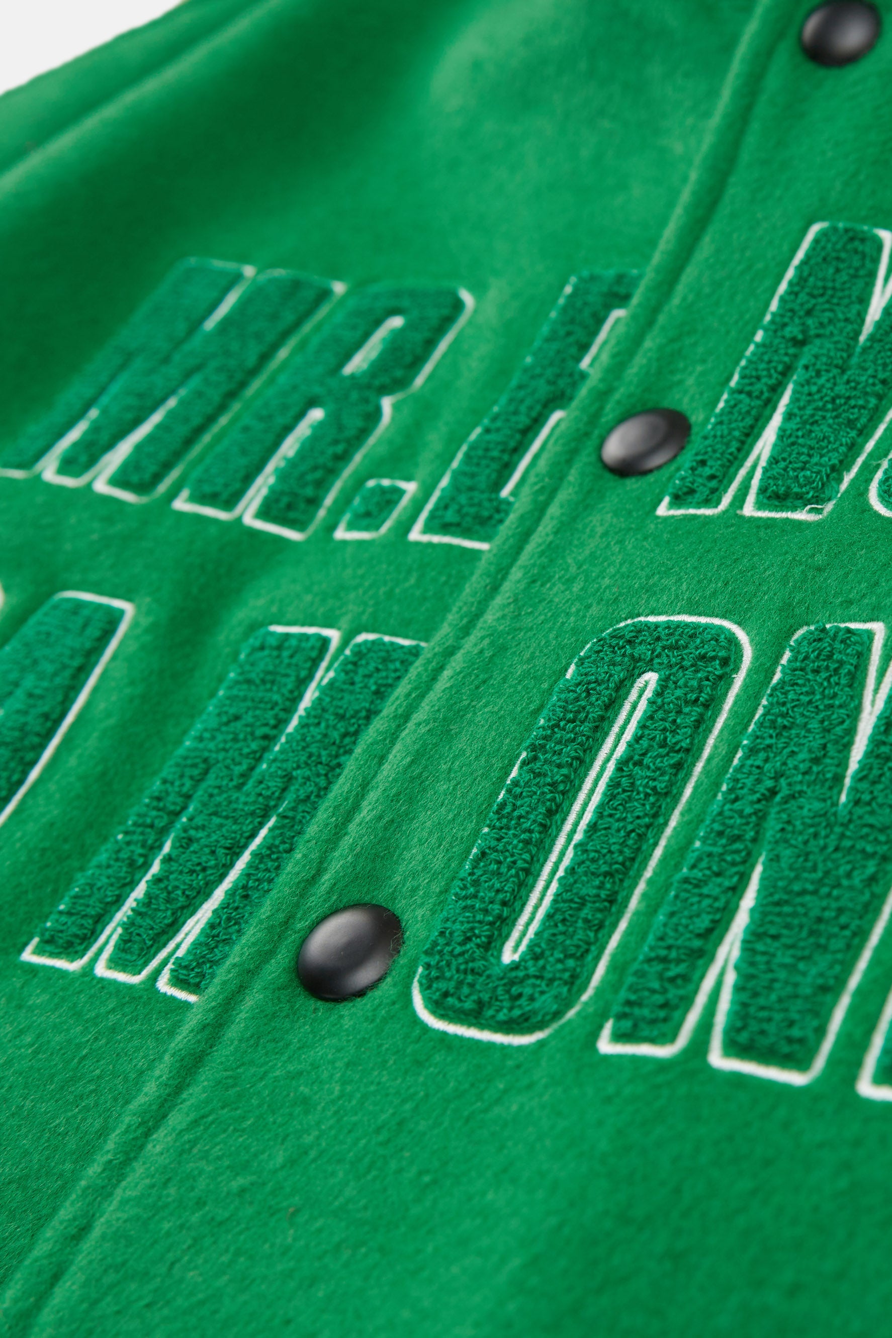 이 재킷은 앞면에 MDM 자수 로고가 있고 뒷면에 자수 그래픽이 있습니다. 버튼업 클로저.