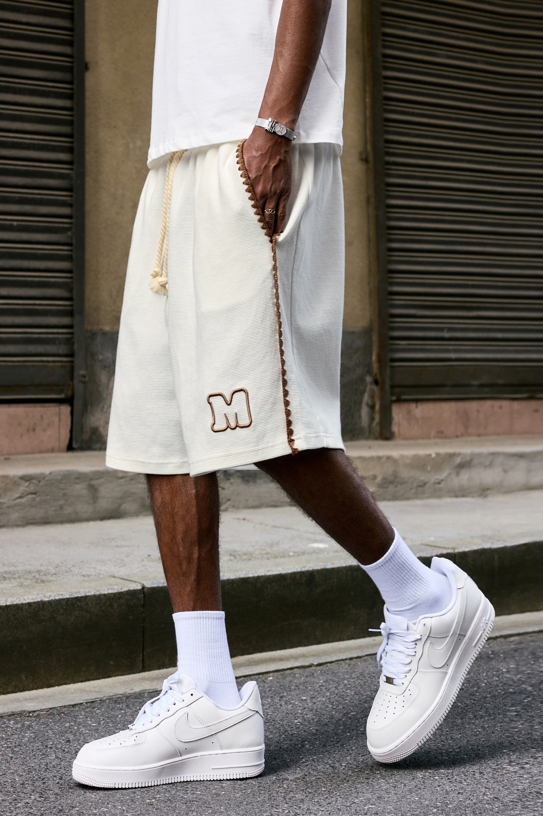 이 MEDM 와플 드로스트링 반바지는 유기농 면과 폴리에스테르를 혼합하여 전문적으로 제작되어 편안함과 내구성을 모두 보장합니다. 앞면에 M 자수가 장식되어 있으며 편리한 허리 조임끈과 편리한 측면 포켓 2개가 있습니다. 캐주얼하면서도 스타일리시한 여름 룩에 잘 어울립니다.