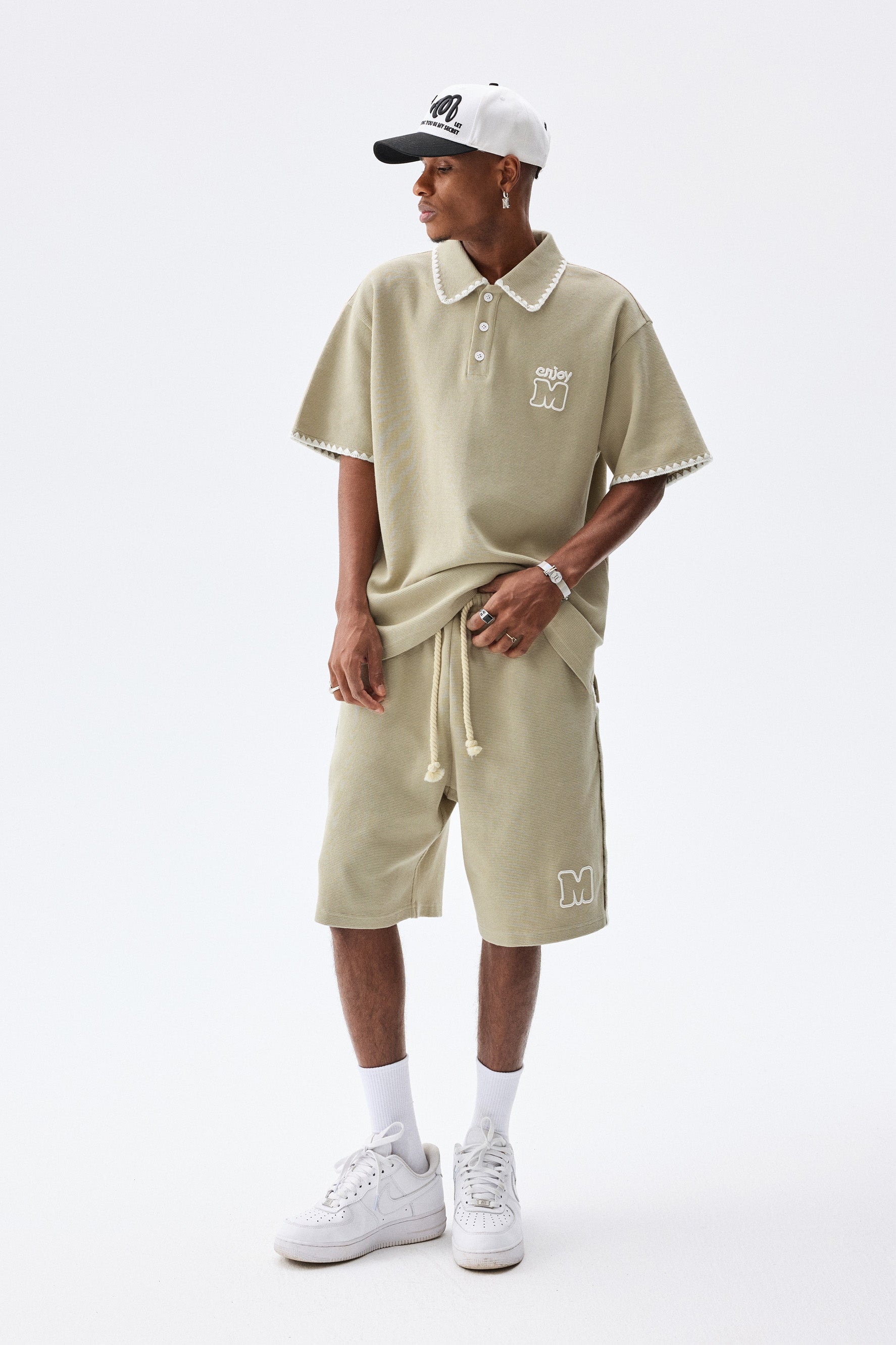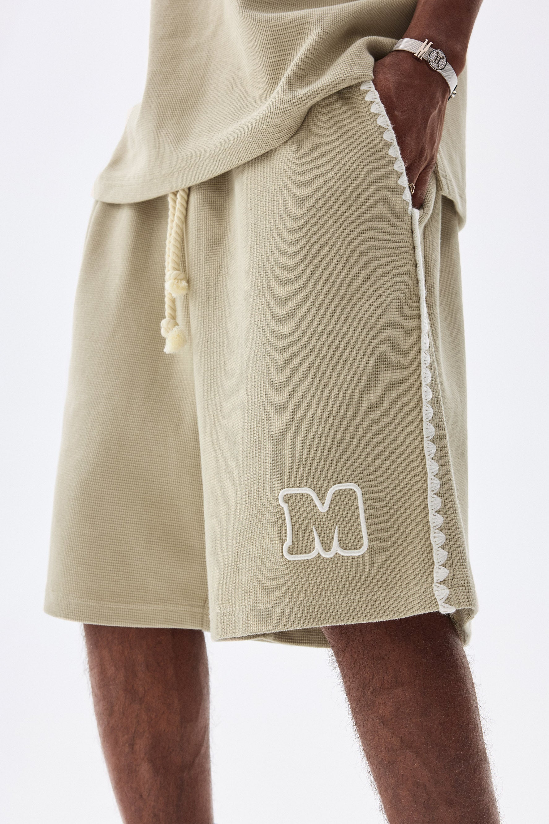 이 MEDM 와플 드로스트링 반바지는 유기농 면과 폴리에스테르를 혼합하여 전문적으로 제작되어 편안함과 내구성을 모두 보장합니다. 앞면에 M 자수가 장식되어 있으며 편리한 허리 조임끈과 편리한 측면 포켓 2개가 있습니다. 캐주얼하면서도 스타일리시한 여름 룩에 잘 어울립니다.