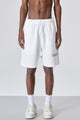 여유로운 핏이 특징인 반바지입니다.   편안함과 조절성을 위해 허리를 늘리고 고정할 수 있는 조임끈이 있는 신축성 있는 허리밴드. 두 개의 측면 포켓은 작은 물건을 운반하는 데 도움이 될 수 있습니다.