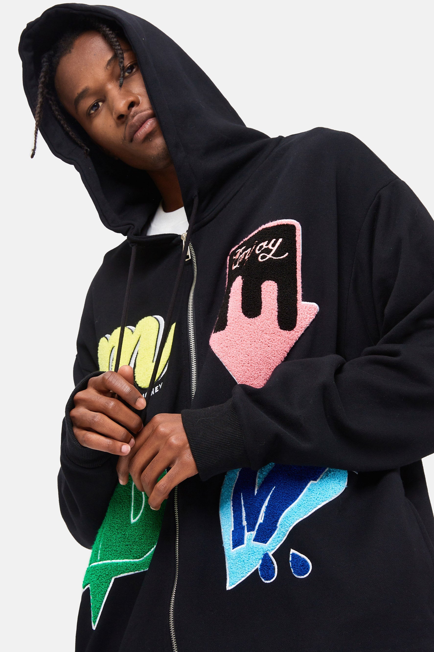 이 후디는 드롭 숄더 디자인, 손목 골지 디테일, 허리 지퍼 후디로 여유로운 핏을 선사합니다.