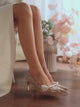 Add a touch of enchantment to your special day with these mermaid-inspired gold crystal heels. Featuring a sleek stiletto heel and delicate pearl embellishments, these high heels offer elegance and sophistication. Perfect for weddings or formal events, they ensure you’ll stand out with their shimmering design and graceful silhouette.