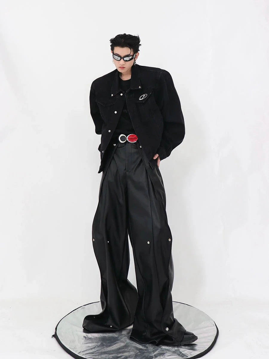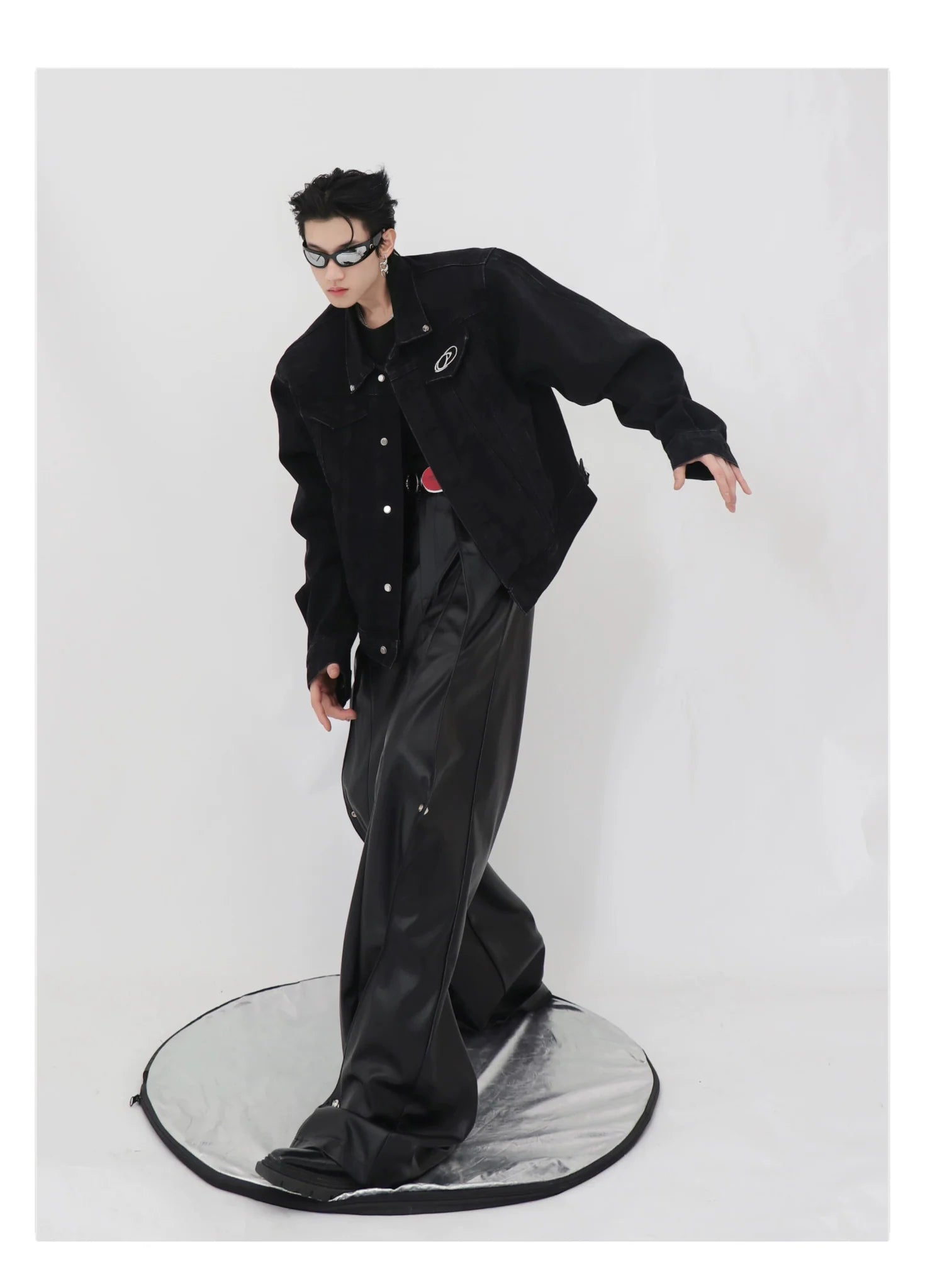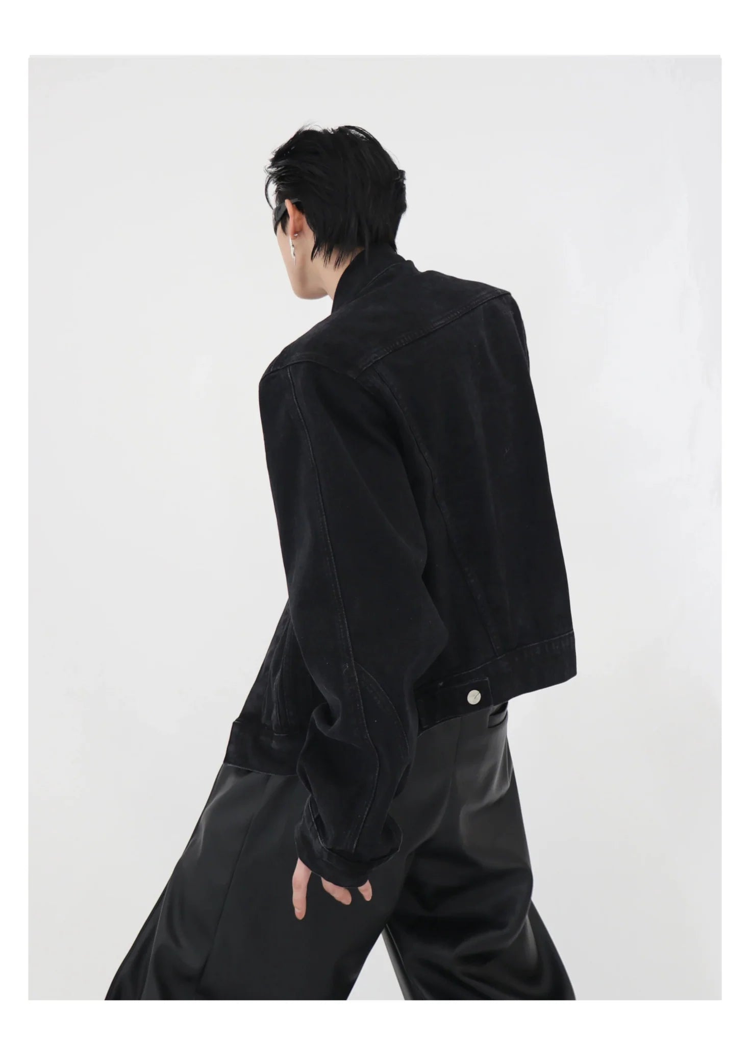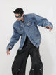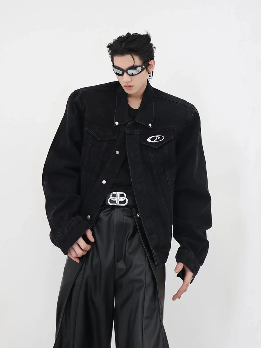 Metallic Patchwork Padded Shoulder Denim Jacket | Casual Loose-Fit Premium Coat