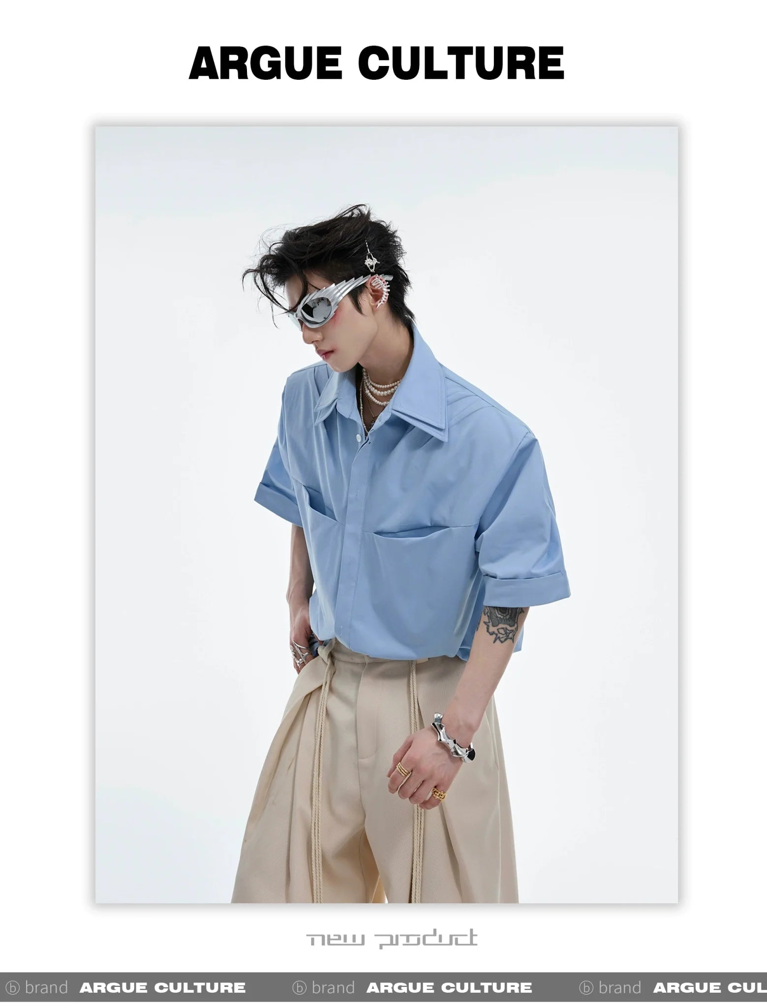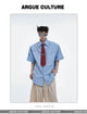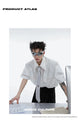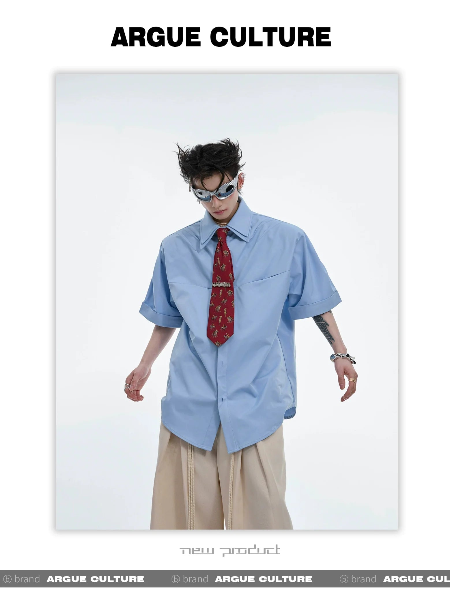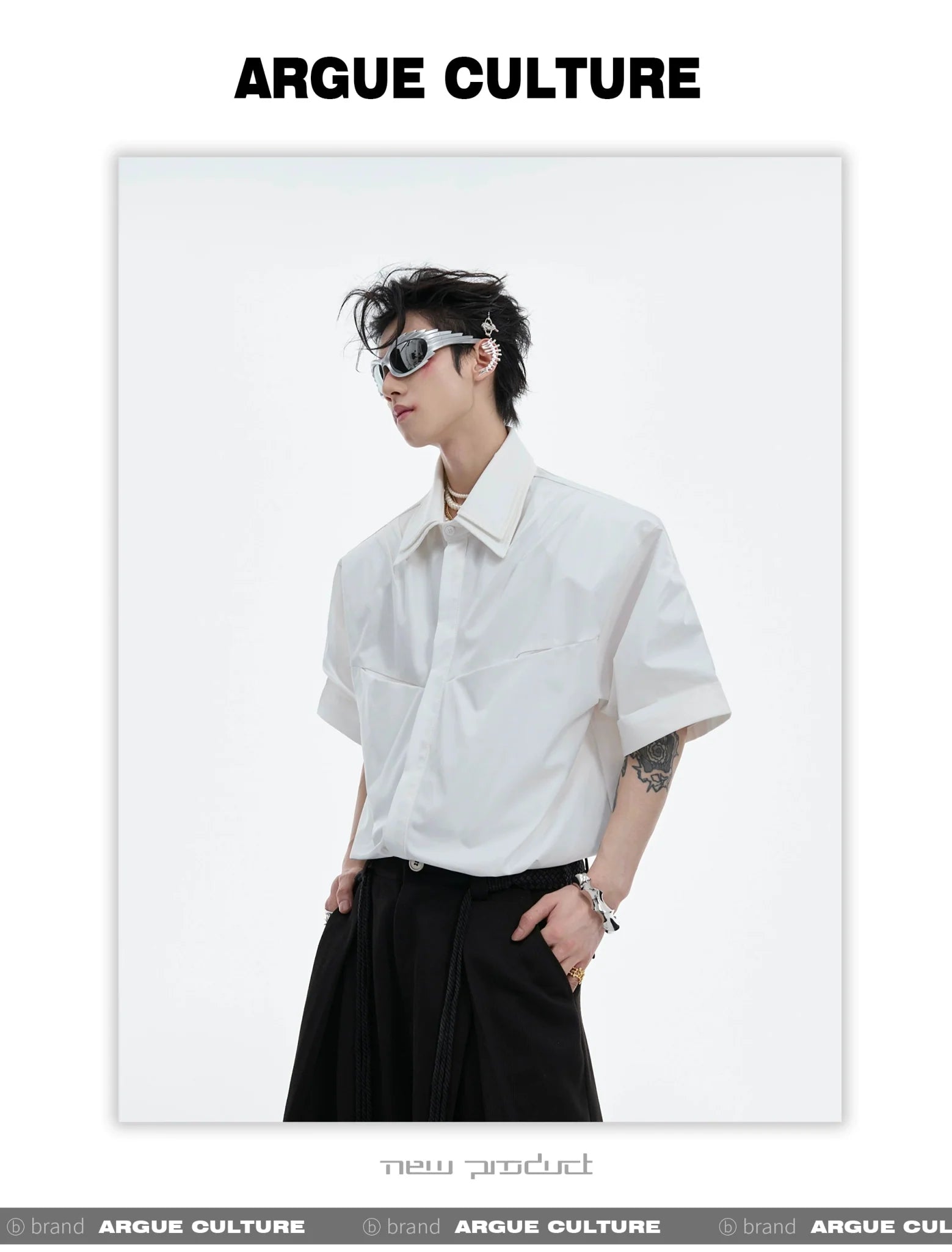 Minimalist Double Layer Collar Short Sleeve Shirt Loose Fit Metal Accents