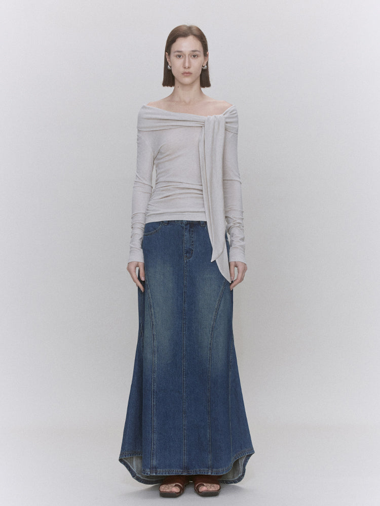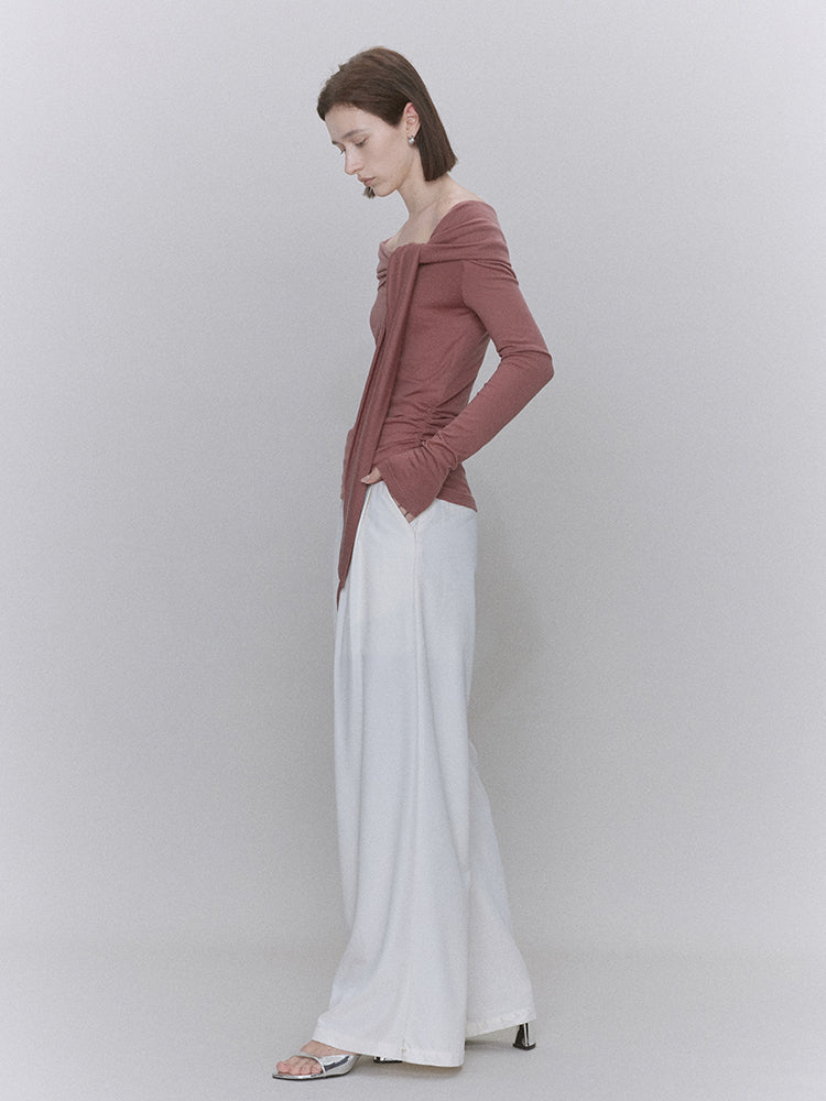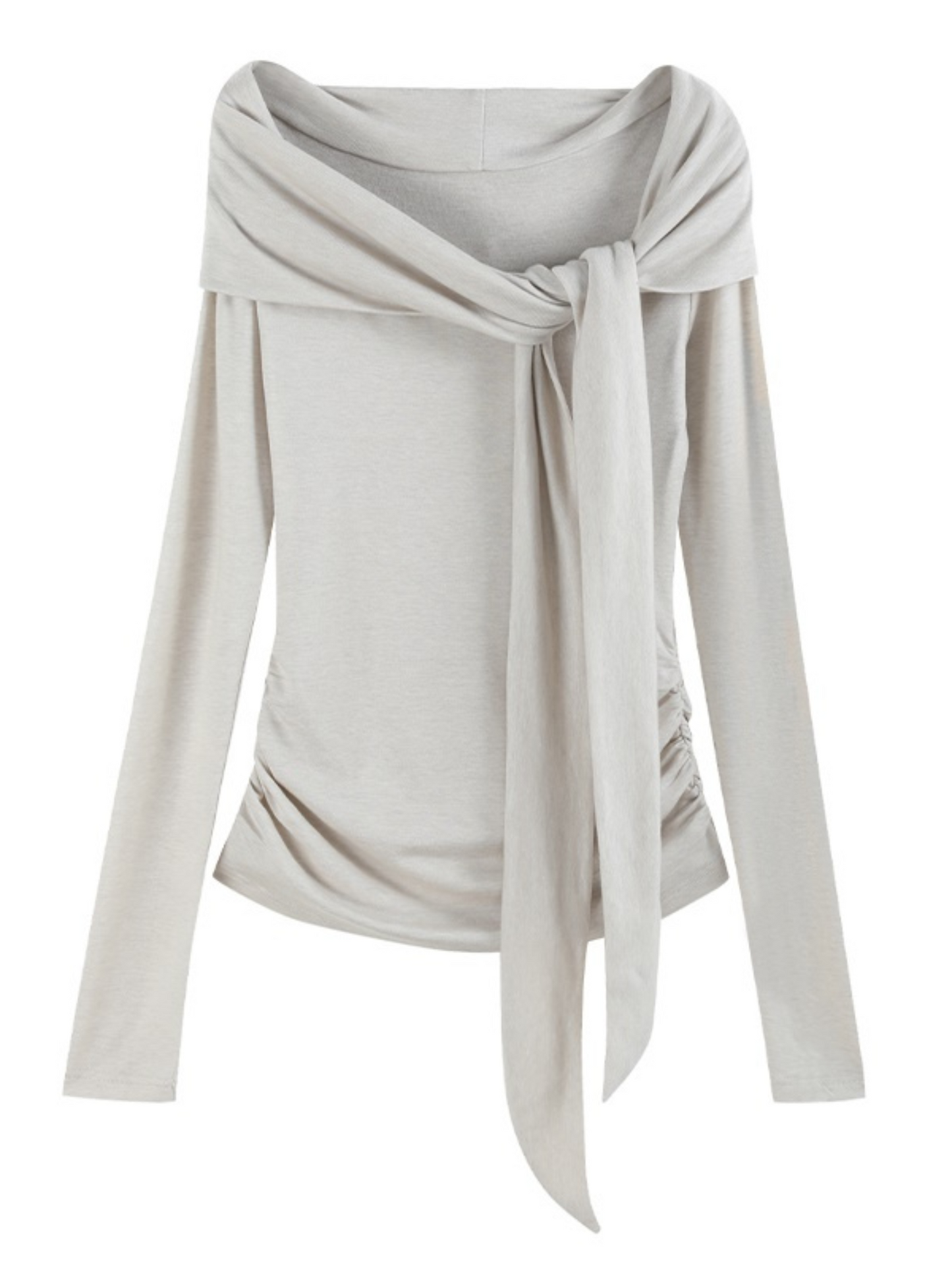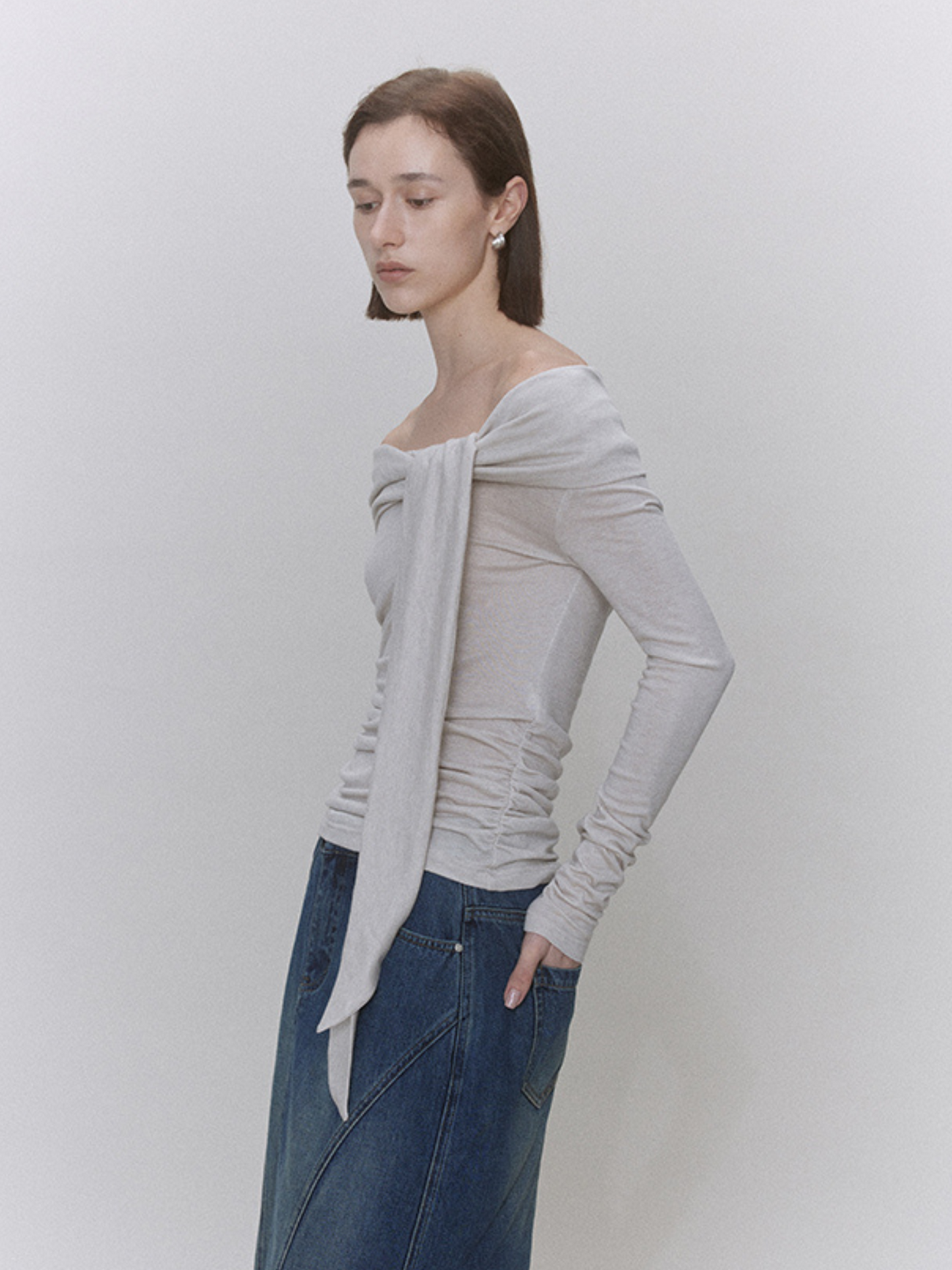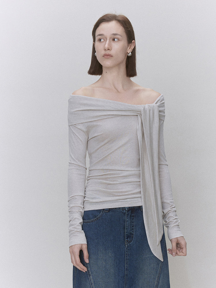 Soft Tencel Wool Off-Shoulder Tie-Front Knit Top