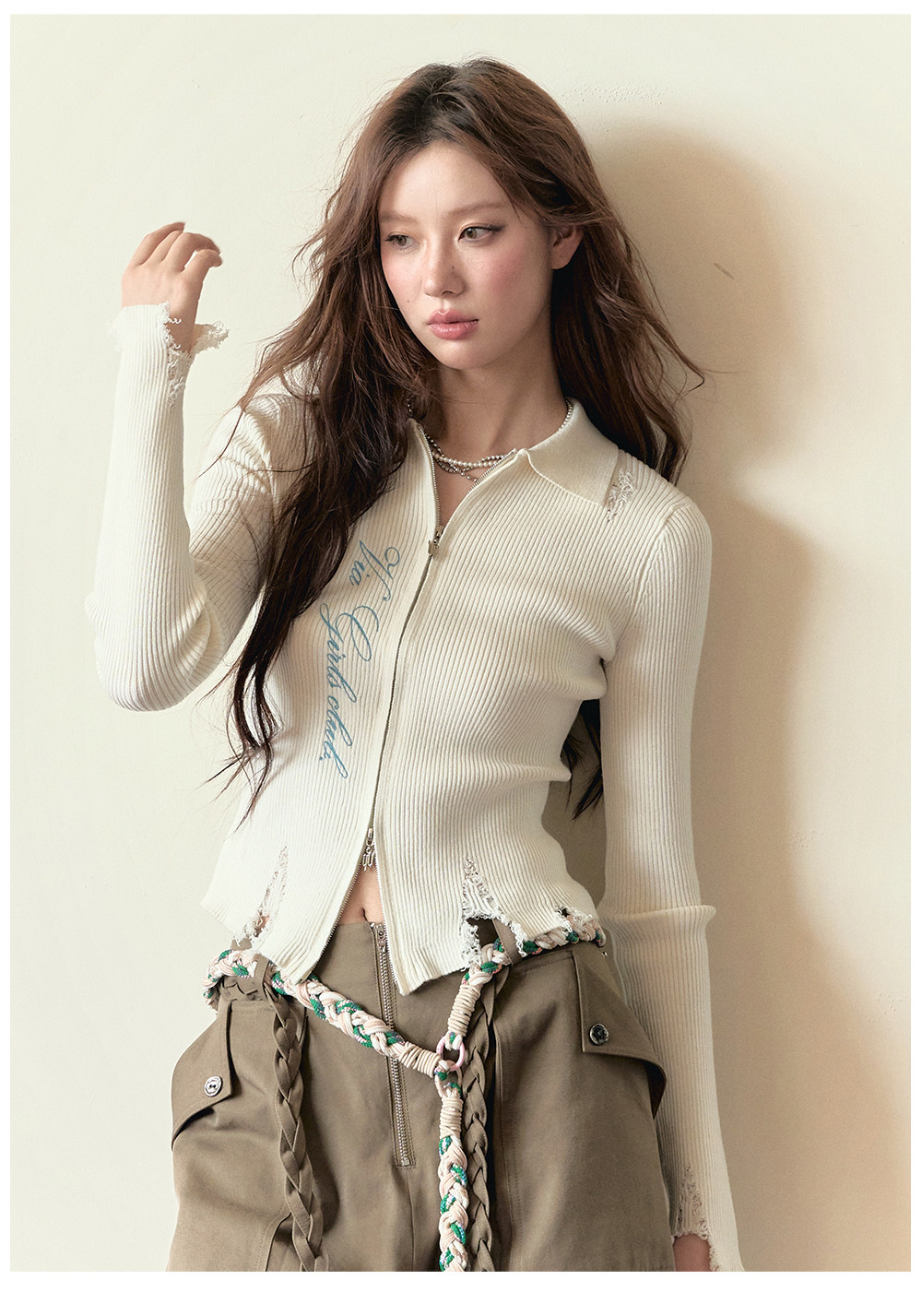 Beige Fringe Knitted Cardigan
