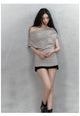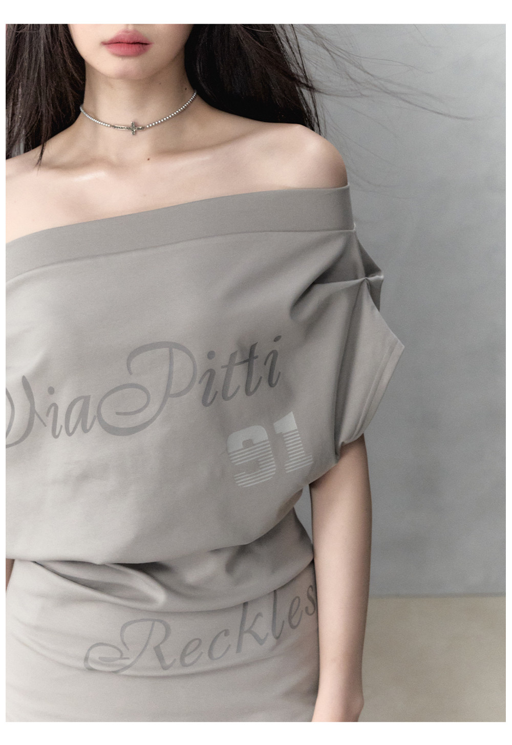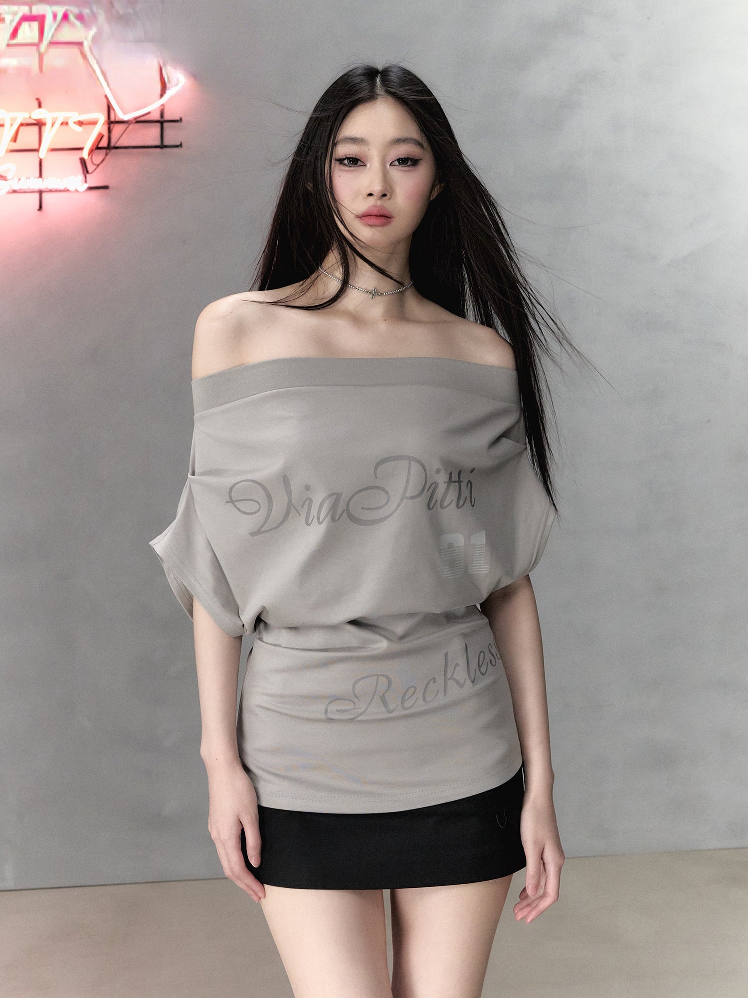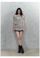 Champagne Grey One-shoulder Letter Printed Blouse