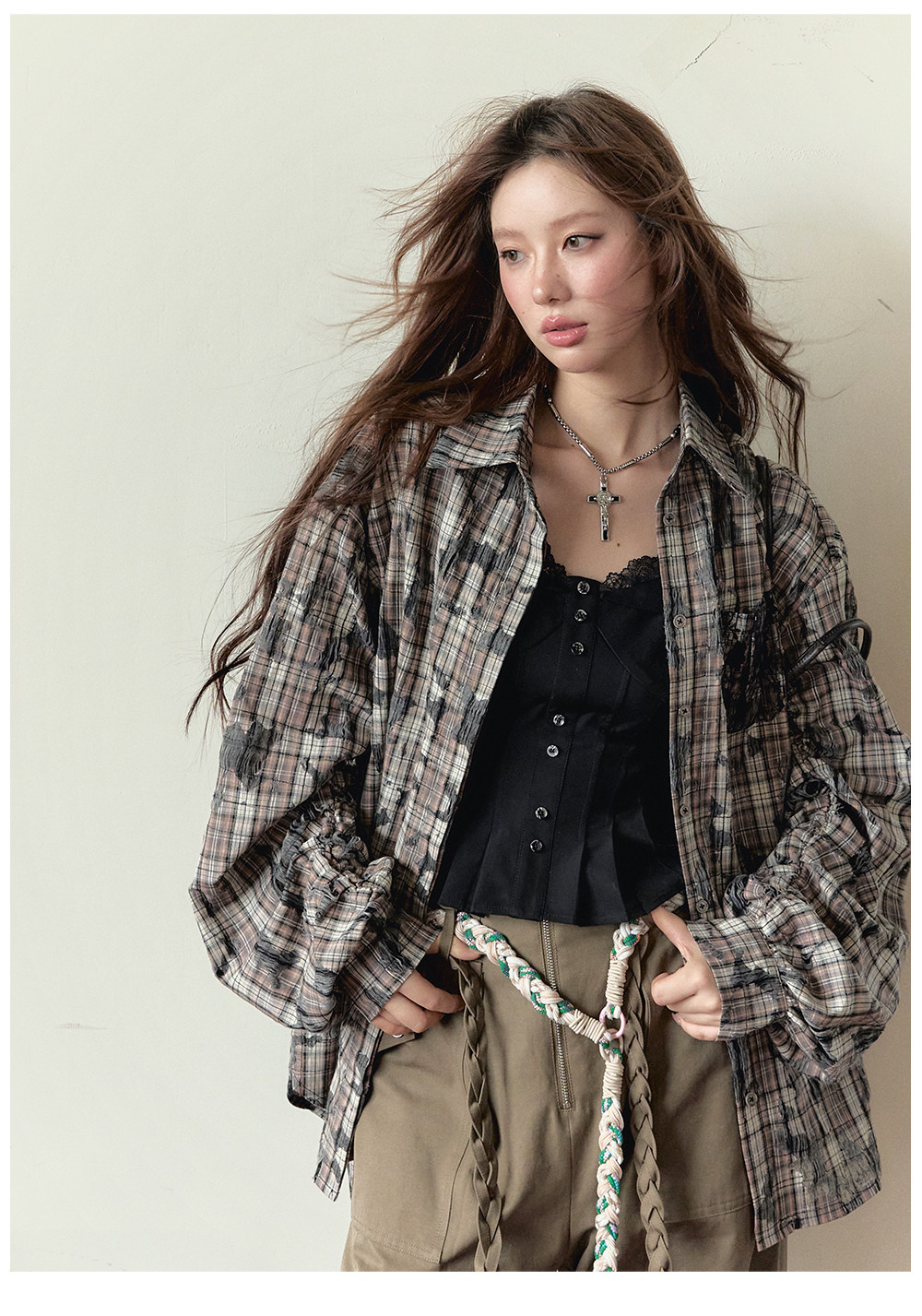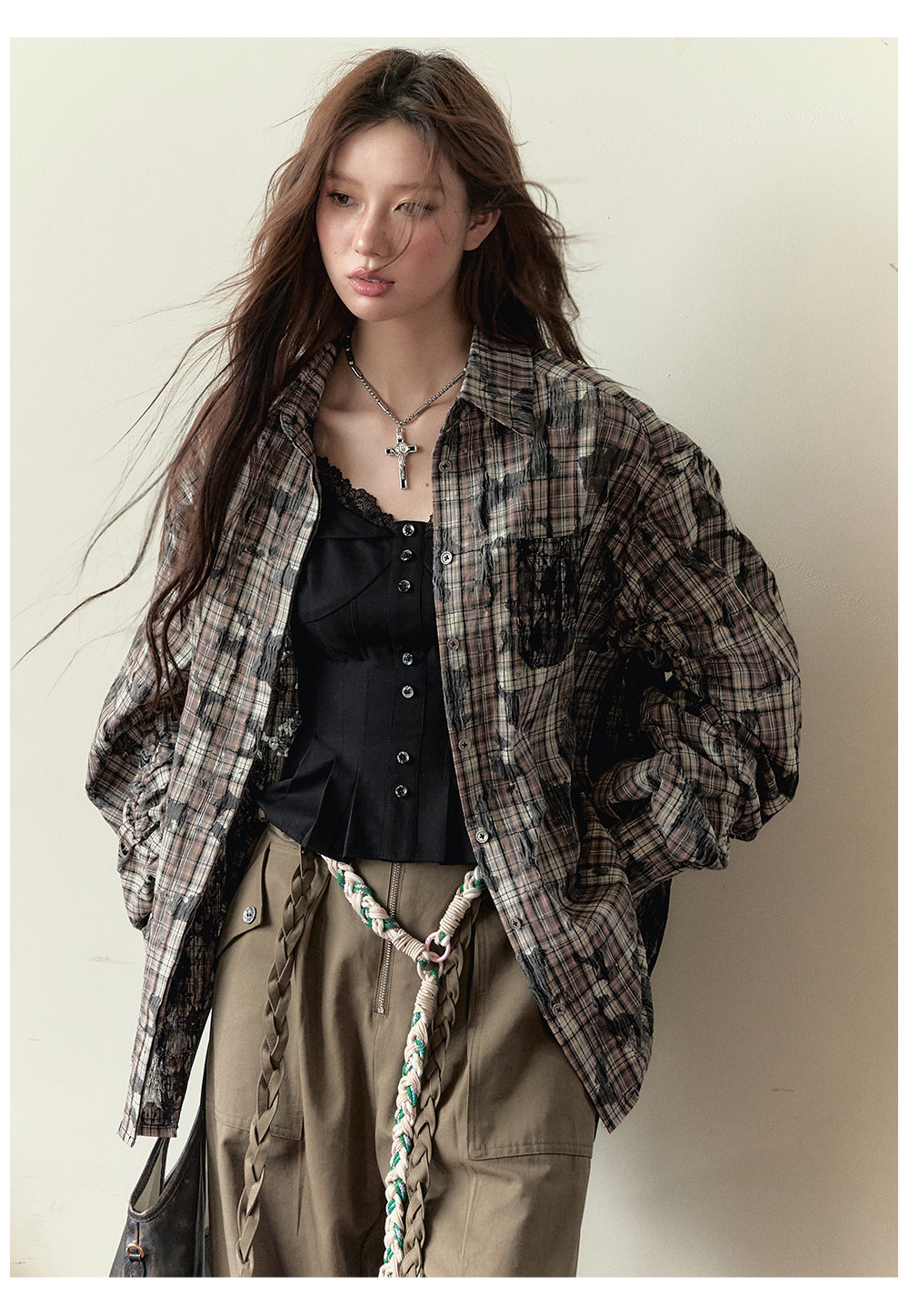 Color-blocked Plaid Long-sleeve Shirt Jacket