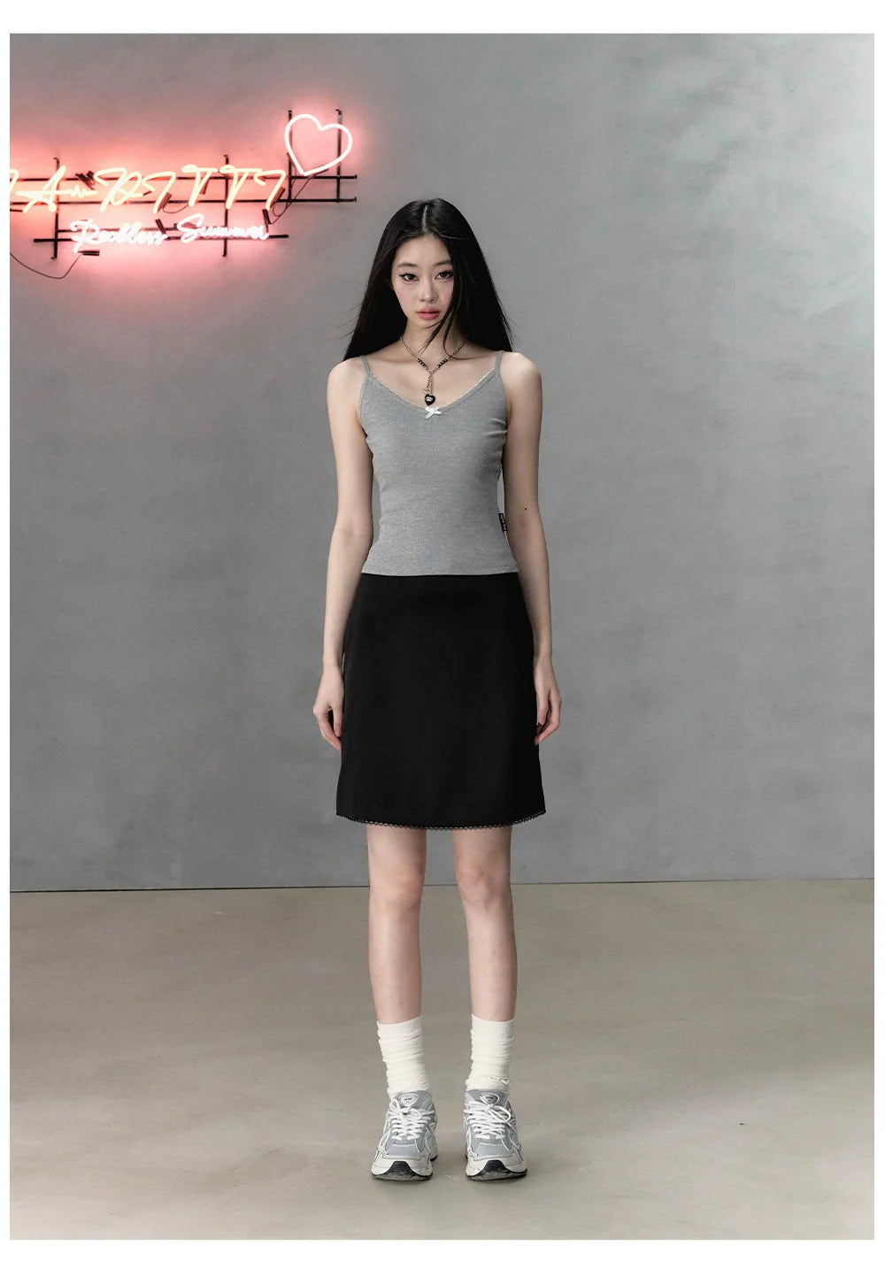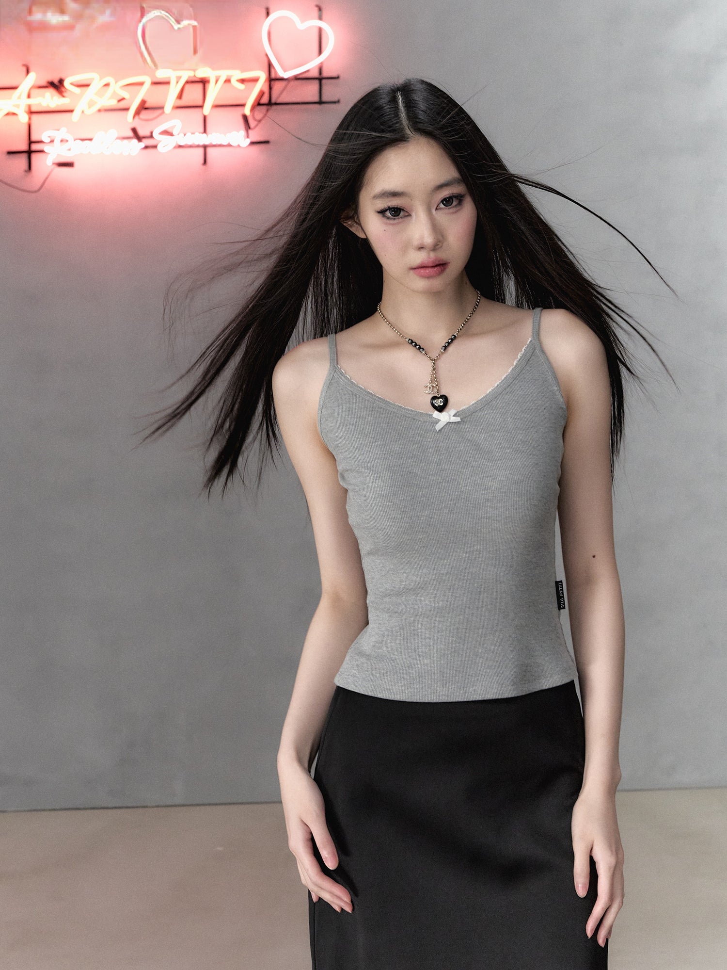 Lace Butterfly Bow Strap Tank Top & Short-sleeve