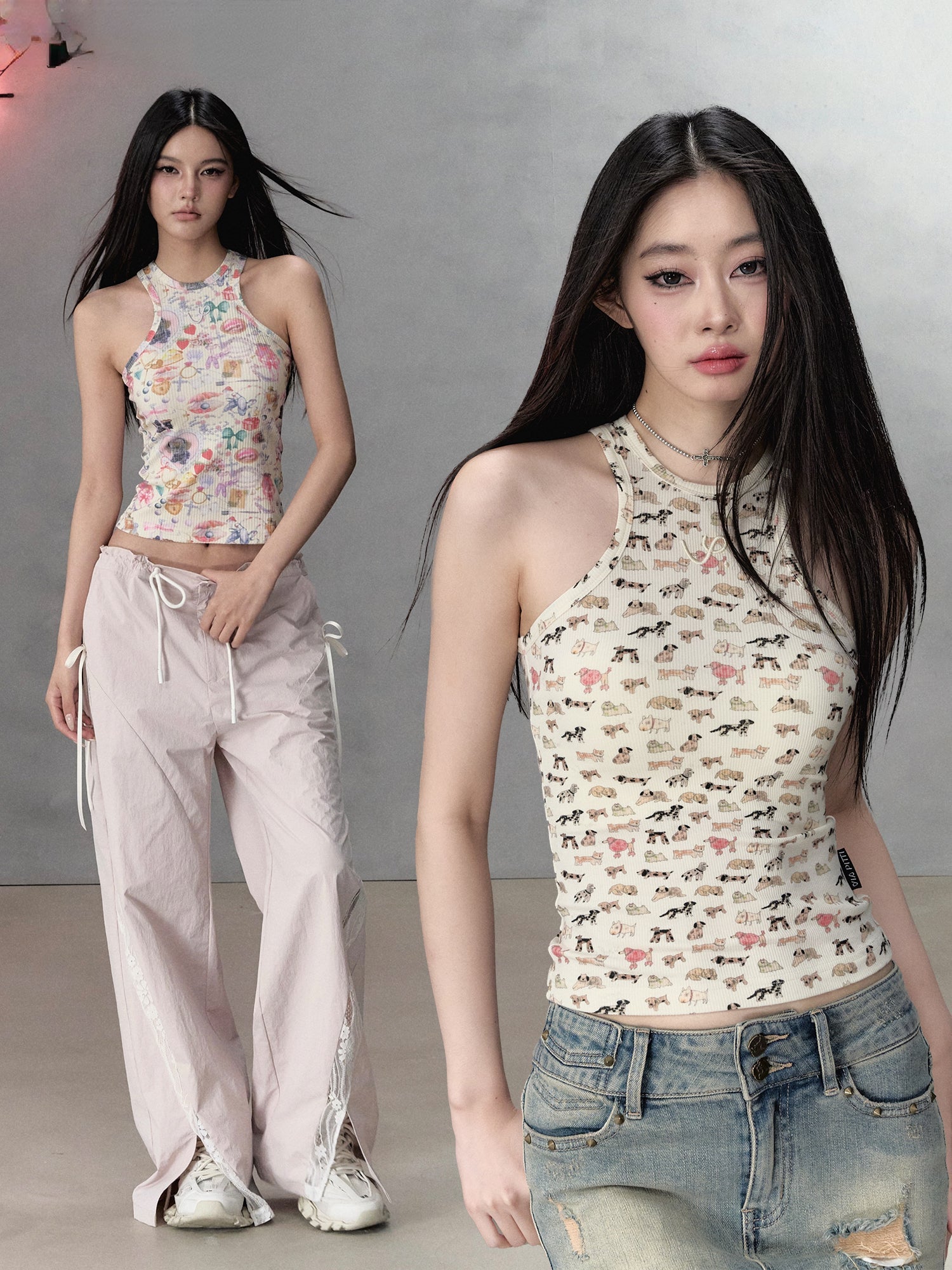 Miscellaneous Items Print & Puppy Print Slim-fit Camisole